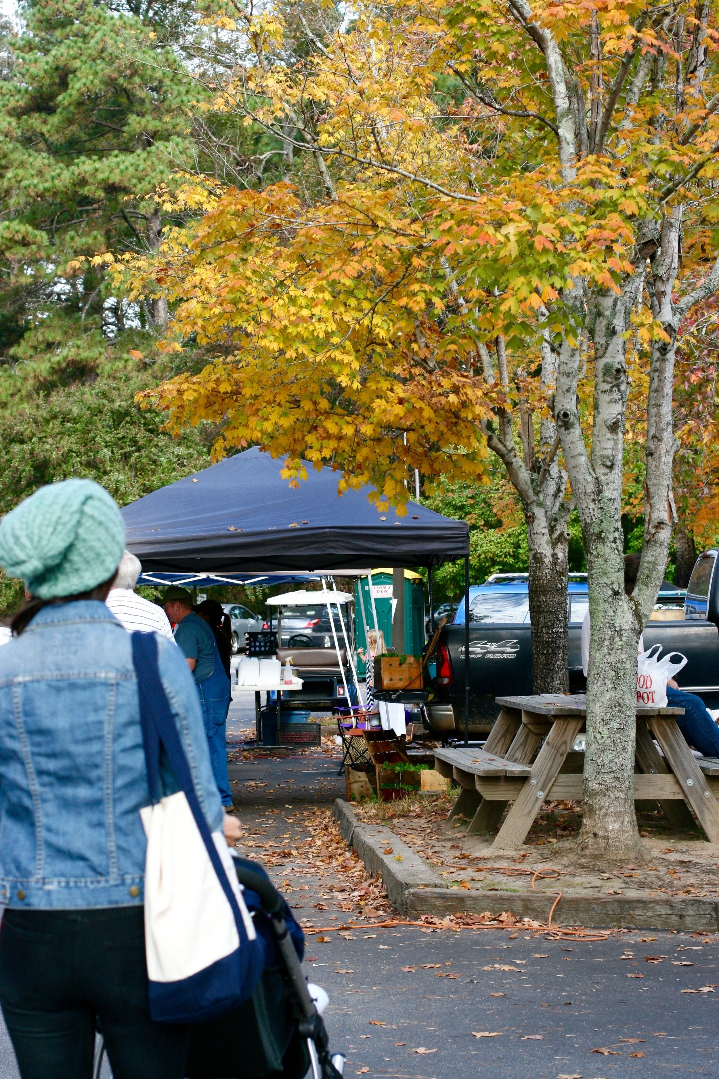 Last weekend we hit the Farmers's Market in my town. And we went via golf cart! Have I told you that we drive golf carts around like cars? Well in my town there is more golf cart mileage than actual road mileage, which makes it ridiculously easy to get almost everywhere on the golf cart. So on top of the alfresco ride, we enjoyed the quaint fall activity of trolling the farmers market in search of everything home grown and specialty. And I got to soak up sister time and taste test peppers and goat cheese and preserves and it was pretty much perfect.