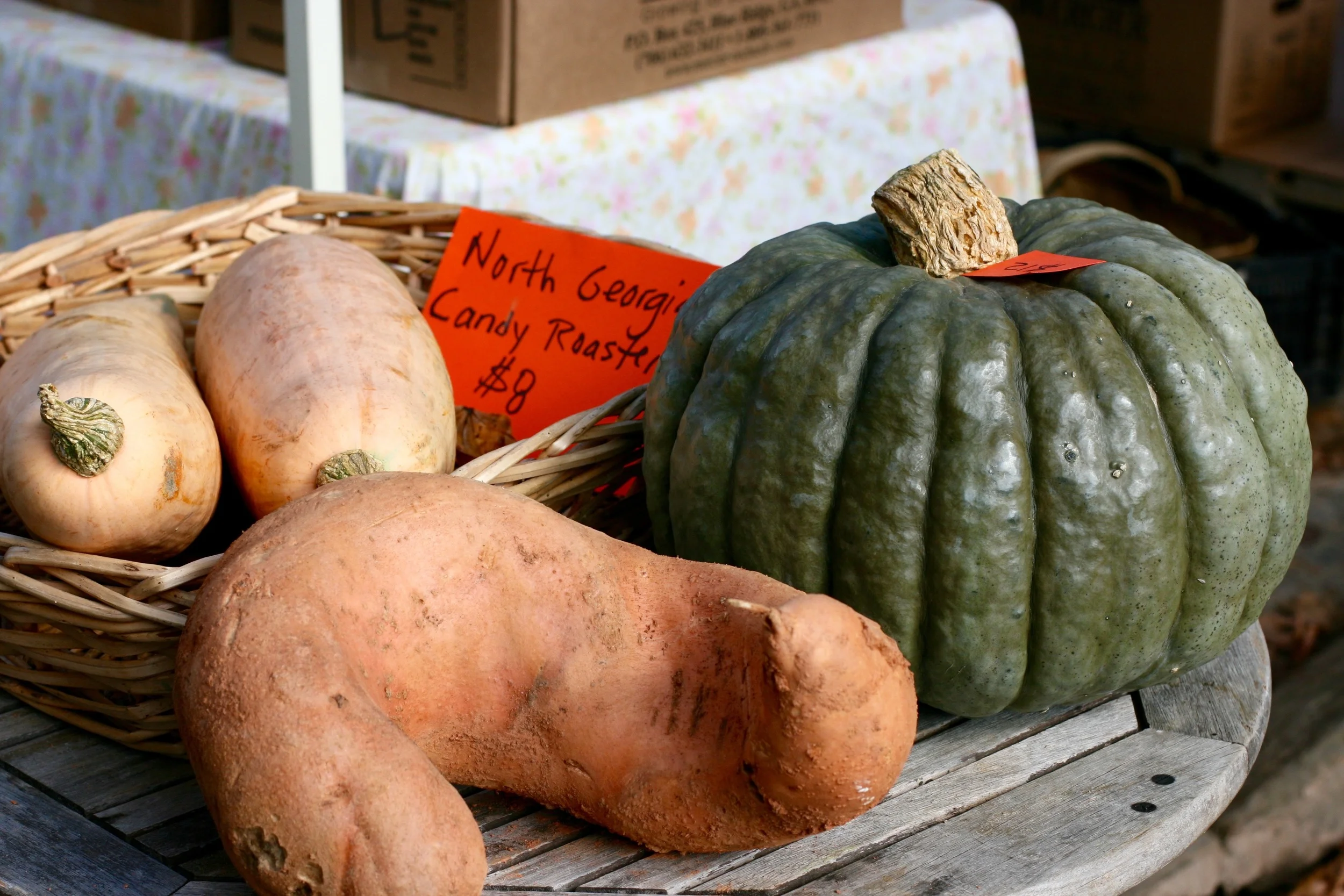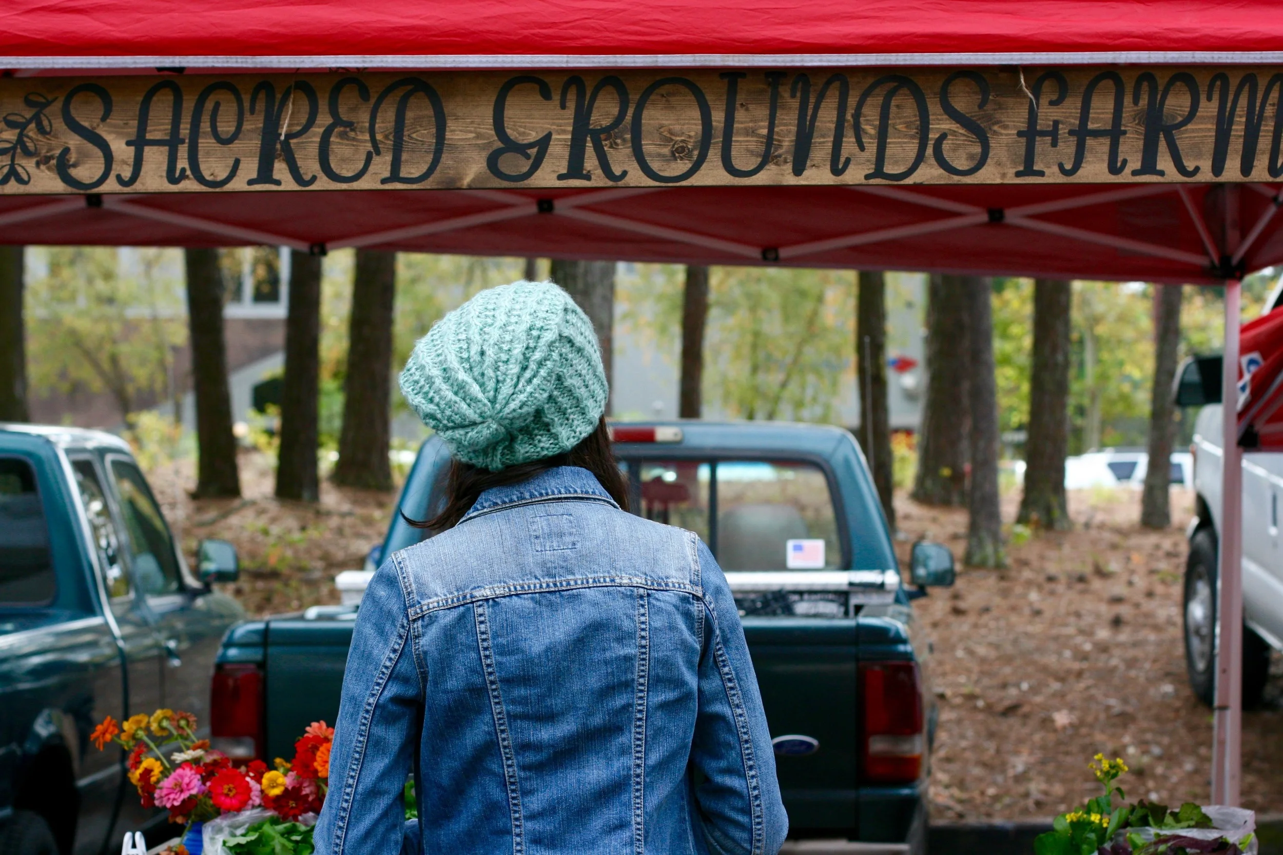 AND I found out that my friend Tim's family has a farm, and they were selling at the market! So if you're in the PTC area, you should totally check out the Sacred Grounds Farm booth. And get the okra. And maybe some zinnias, just for fun.