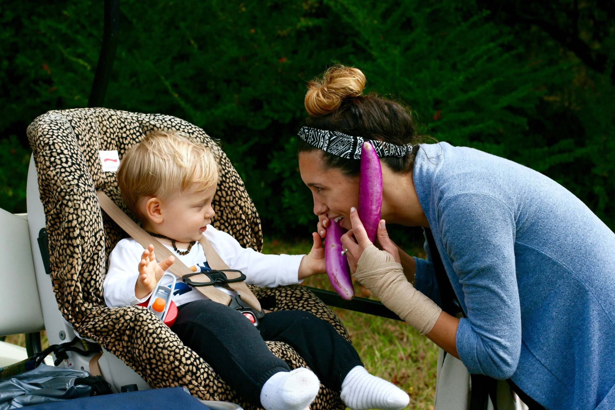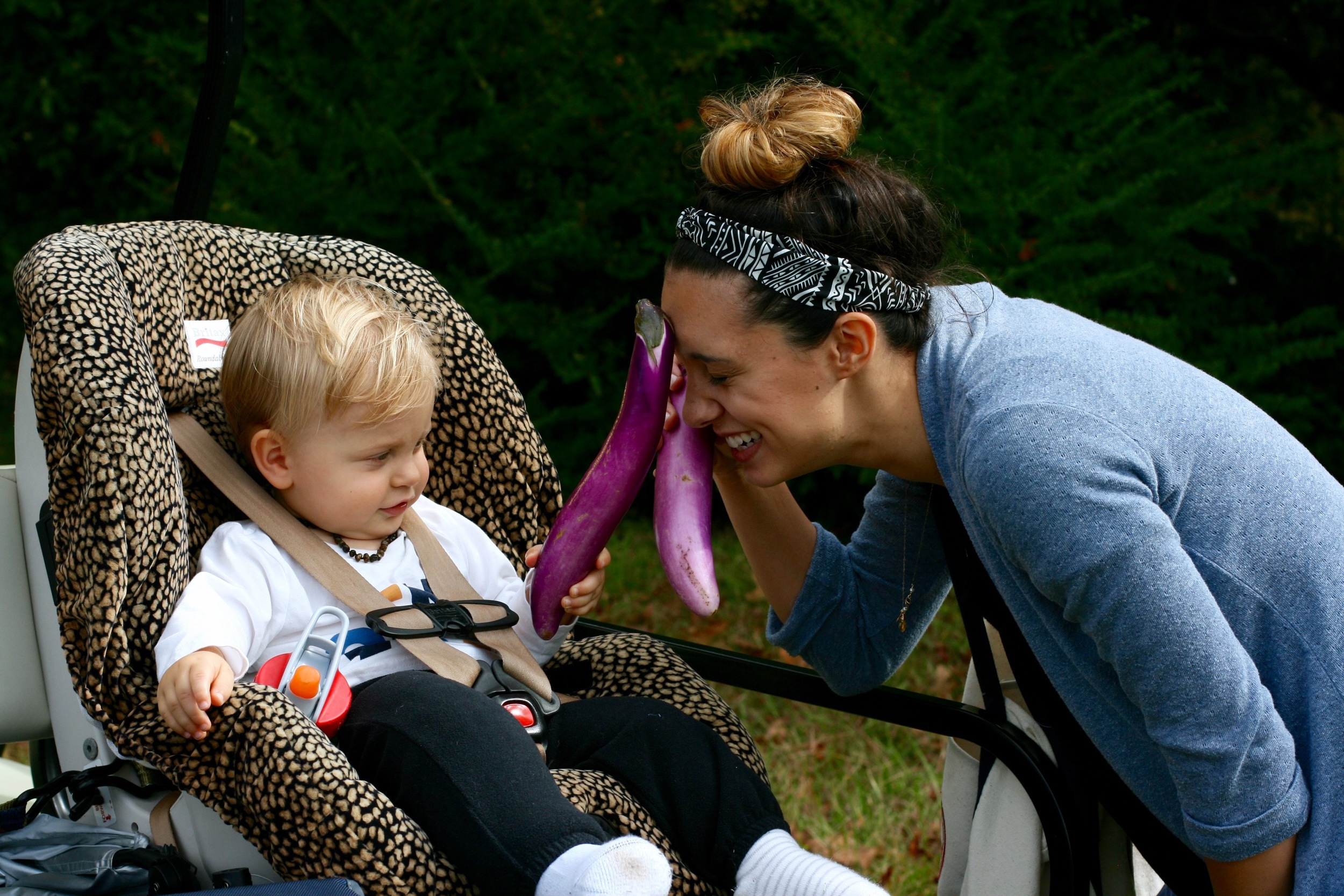 So, we often play telephone with bananas, and when I got some of this eggplant, we couldn't really resist. Usually Elmo calls me. I don't know who calls Everett, he's already pretty private about his phone conversations.