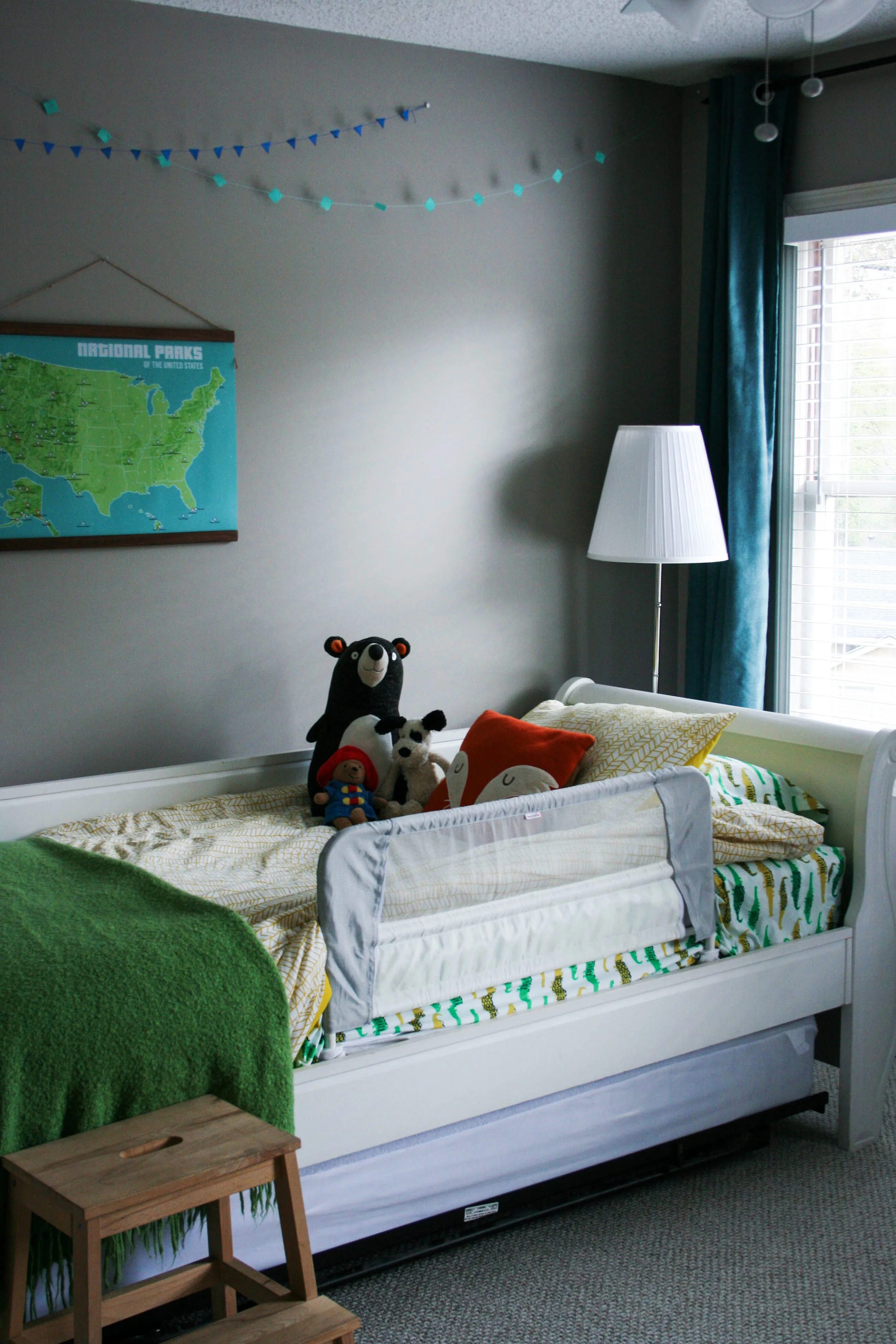 /Oh, this is a fun one. I shared a few weeks ago that we have been slowly putting together my 2-year-old's "Big Boy" bedroom. He has been so excited with anticipation during the entire process. Before we even moved him over into the room, he would come into the room and play with his toys on the floor while I worked on hanging curtains and folding laundry. We talked in depth about how he was trading in his crib for a big boy bed, and how his crib would be going to the new baby in the family. I really wanted him to feel like he was being promoted into his new room, not kicked out of his old one. So we worked on making the space intentional and special, and a little more grown up for this seriously fast growing toddler of mine :)