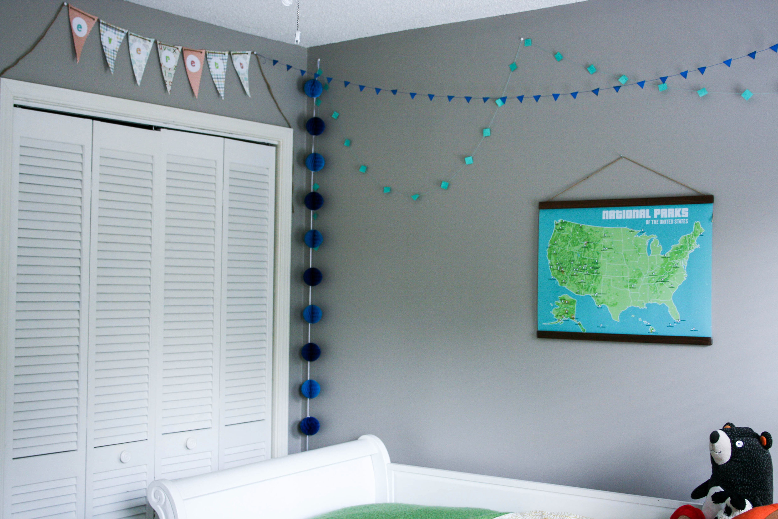 - His "shapes" (garland - picked out in the Target party section!) that hangs above his bed.