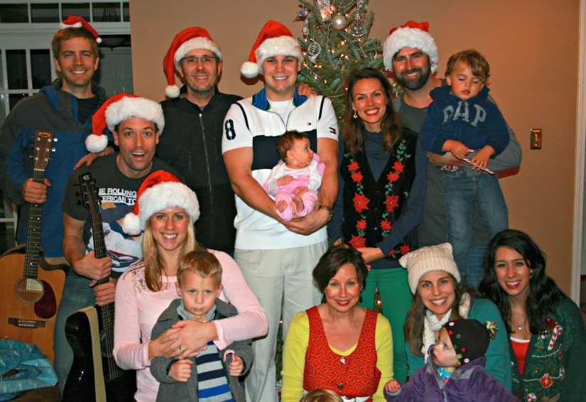 /Christmas Eve at home in Georgia means Christmas caroling, dorky sweaters and delicious spiked beverages. Oh, and fantastic food that takes an unnecessary amount of time to prepare with my hilariously warm family. Yes, I bake all day with my mom and sisters (in our pjs), invite tons of friends and family over to dinner and then bundle up and walk door-to-door singing carols for people. We seriously do this. My dad prints sheet music and we have guitars. It's not even funny to joke about being a family band, because that is essentially what we are. The von Trapp family has nothing on us. Stevie's favorite Christmas quote is from Buddy the Elf, "The best way to spread Christmas cheer is to sing loud for all to hear." Well, this year our caroling troupe was equipped with 4 toddlers and a newborn along with the normal crowd of goofballs so our cheer was off the charts. Off the charts. We crooned for the neighborhood and didn't get any tomatoes thrown our way. Success.