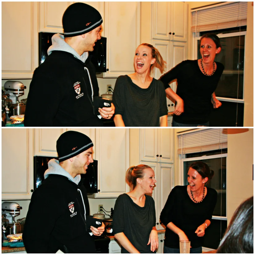 We got a little visit from some hungry boys. They simply couldn't stay away at the thought of yummy appetizers and cookies being consumed. See how my husband tries to talk his way in the door? Emily and Carrie got a kick out of it. Why don't guys get it? Sometimes, boys just aren't allowed!