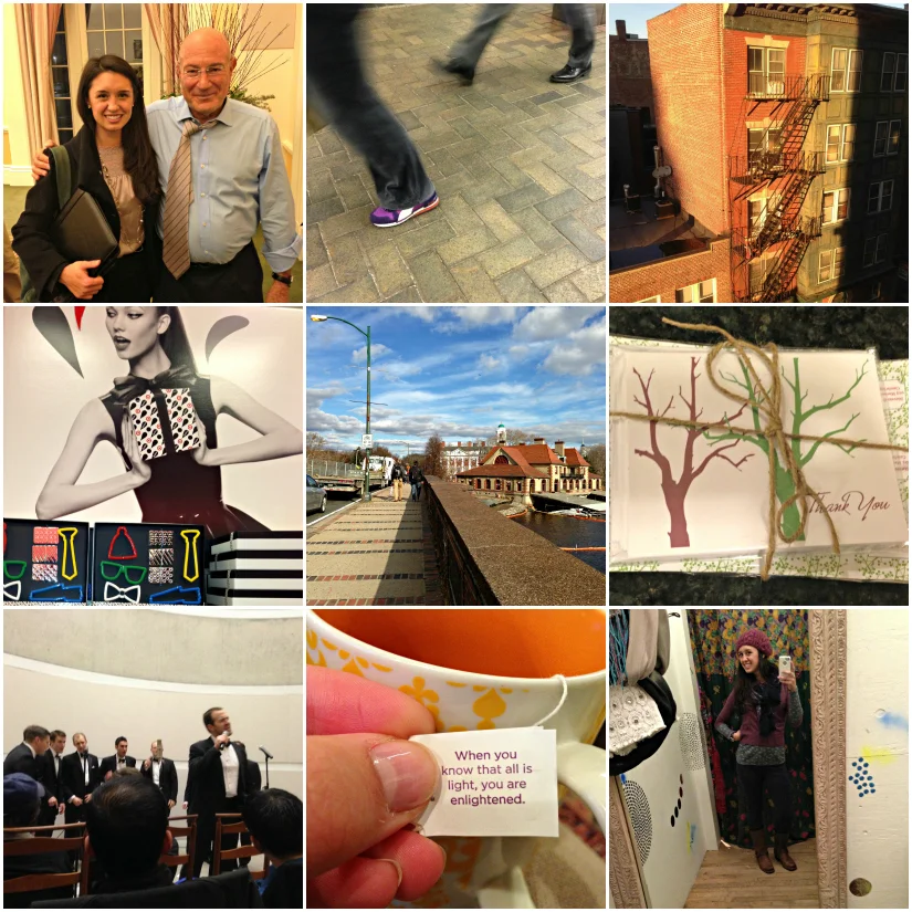 /It's important to take time to reflect on the week's happenings. So often on Mondays, I feel like people ask me, "What did you do this weekend?" and my mind is a total blank. What in the world happened during the last week? I live a busy lifestyle right now, but that doesn't mean I shouldn't enjoy the hustle and bustle and the peaceful breaths of air in between. I realize that I need a better way to reflect on the week's happenings; not just the major events, but the little moments, too. That great cup of coffee on Tuesday morning. That nice old man on the subway. That really pretty sunrise over Boston's north end as I walked to work. These are special days, and they are passing by so quickly! I won't be living in Boston much longer and I really want to savor each day that I live here. Who knows where life's journey shall take me? So here it goes; my week in pictures: