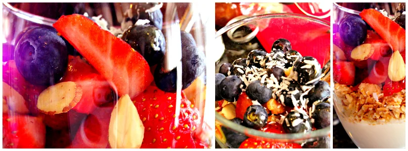 I have news for you. I have finally discovered the perfect snack. Or breakfast. Or anything. It's just the tastiest treat. (Okay, I didn't discover it, but I discovered it for myself, you know what I mean.) It's even better than dessert at Max Brenner's, no joke. I've been treating myself to this since I started loading up on extra berries at the Haymarket. Having an abundance of berries around the house makes me feel like the Queen of England. This snack is truly magnificent. Live it up and treat yourself.