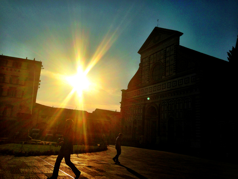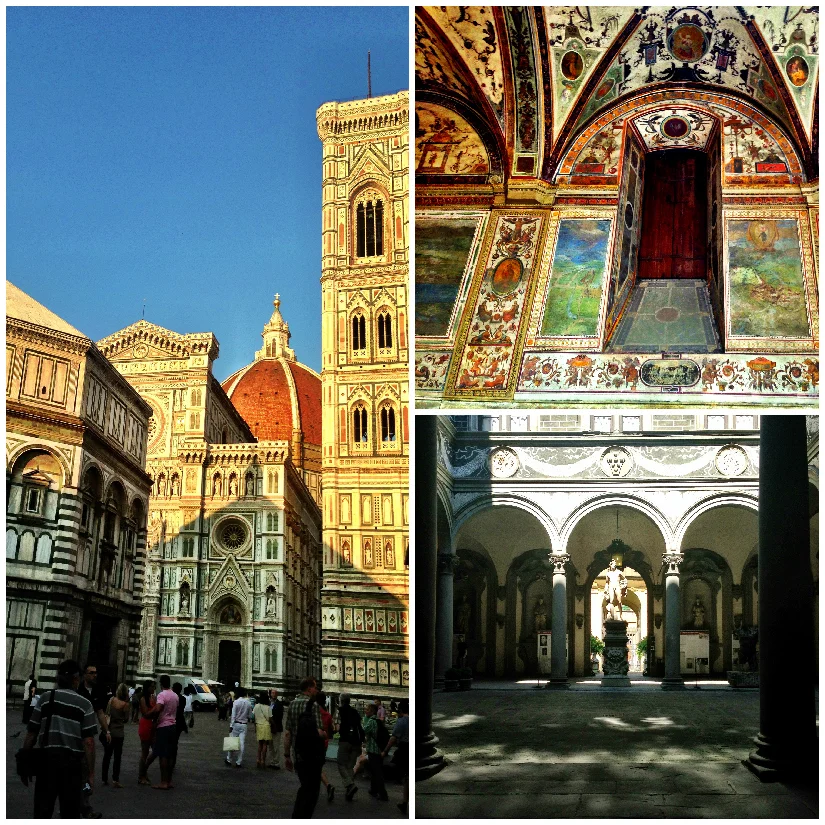 We only had about 24 hours in Florence. We had to make the most of it (and I had to push through the lag in my energy.) But we thoroughly enjoyed this special city! We pranced along the Arno River and pretended that we were members of the Medici family as we took their route to work, from the Ponte Vecchio to the Uffizi. We marveled at the olive and peach Duomo (per the gorgeous design of Brunelleschi), meandered along the fabulous Via dei Calzaiuoli and gawked at the Orsanmichele. We surveyed Donatello's St. Mark sculpture, excessively loitered in the Uffizi courtyard (which is a museum in itself – so many famous sculptures displayed outdoors!) and, per Mary's fantastic request, payed homage to Dante by visiting Chiesa di Dante. Probably most important of all, we rocked some severe cappuccino. And croissants. Pizza. Bruschetta. Caprese. Wine. Ooh and gelato. Geez I love Italy SO MUCH.