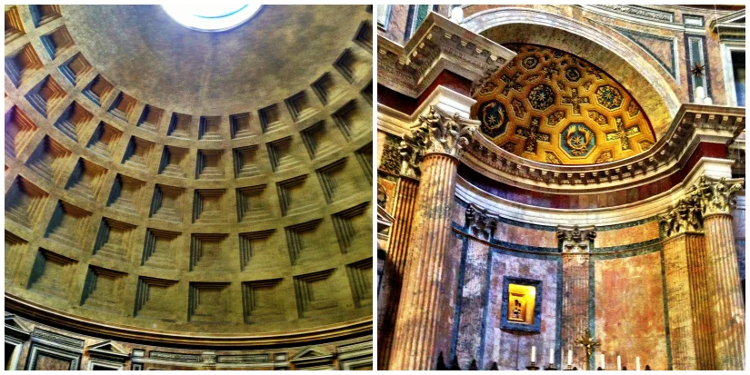 Okay, now this is really interesting. Remember how I gushed over Michelangelo in Florence? Well, the Pantheon is an ancient structure that inspired young Michel, so much in fact, that it inspired his dome design for St. Peter's Basilica. He used to sit in the Pantheon, staring up at the freakishly cool ceiling and sketch it. Sheesh. It is just SO COOL to see what inspired the glory out of that man. He was so incredibly talented... I am majorly crushing on him. I am about 600 years too late to profess my love directly to him, so you folks will probably get to keep hearing about it. Over and over. My husband is already over it. Anyways, back to the Pantheon. It's this mystical structure and no one has ever been able to figure out exactly how it was constructed. It began as an interfaith spiritual hub where anyone could come and worship anything, since the Romans served around 30,000 gods. Once Constantine legalized Christianity as the national religion, the Pantheon fell into disrepair. A few hundred years later, it was officially converted into a Roman Catholic church. Out with the statues of gods and in with the statues of Mary. It is still used today for mass, weddings and, ya know, tours.
