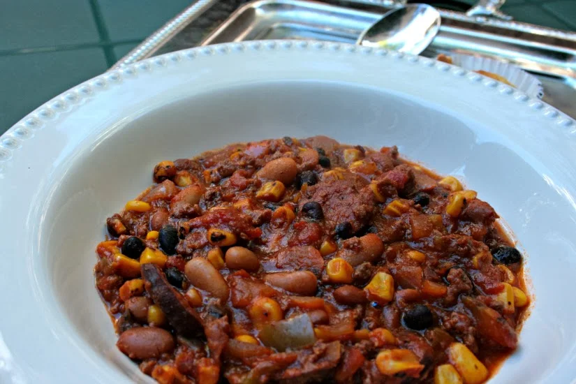 4. Add the chicken broth, kidney beans (drained), black beans (drained) and corn to the mixture. Stir well. Cover the mixture and lower the heat to medium-low. Cook for about 20-30 minutes.