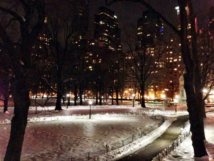 // A chilly walk home along the park. //
