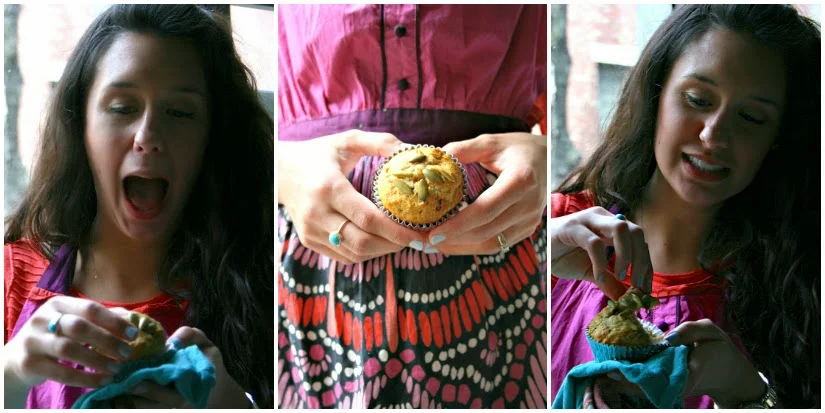 I promise, you will love these deceivingly decadent muffins. The pumpkin seeds add a bit of salty crunch and the dates add a hit of soppy, southern mapley-ness. The hardest part is only eating one at a time!