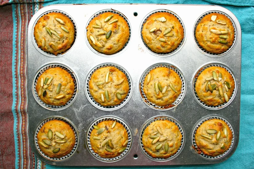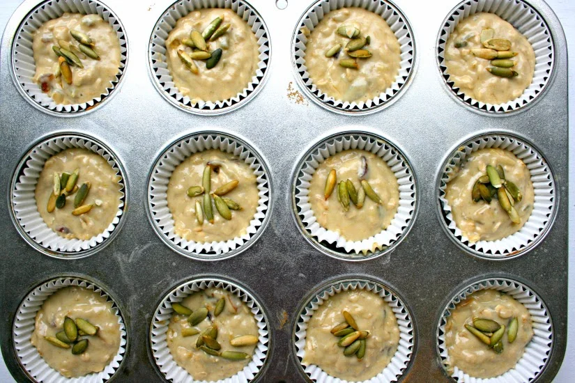 - 1/4 pumpkin seeds, roughly chopped, plus more for topping each muffin