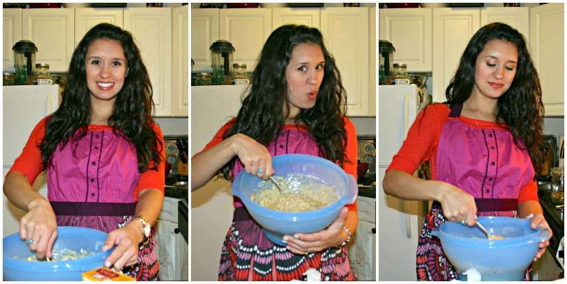 4. Combine the wet ingredients into the dry ingredients, mixing together.