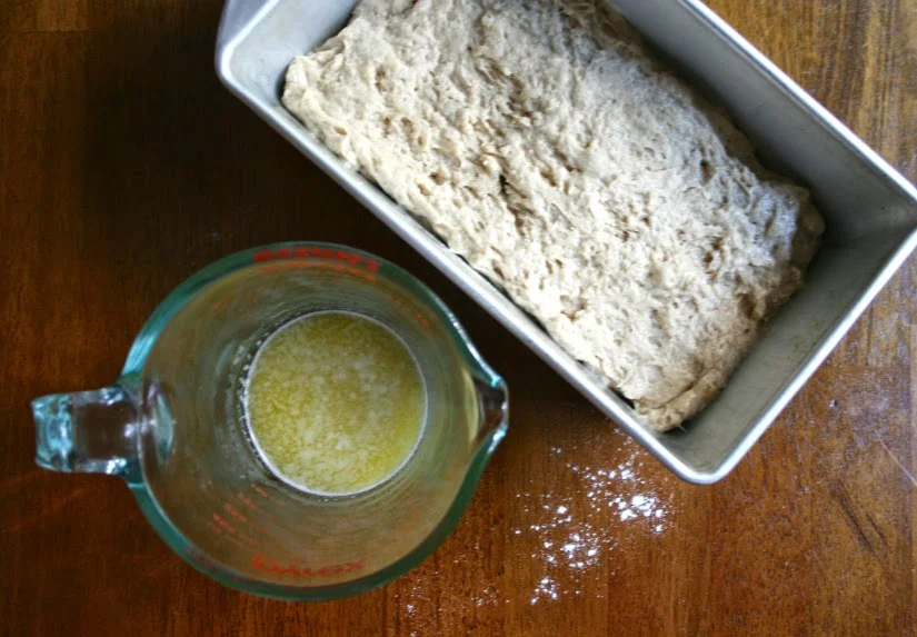 4. Melt butter in a small bowl (I did this in the microwave). Drizzle butter over top of the dough.