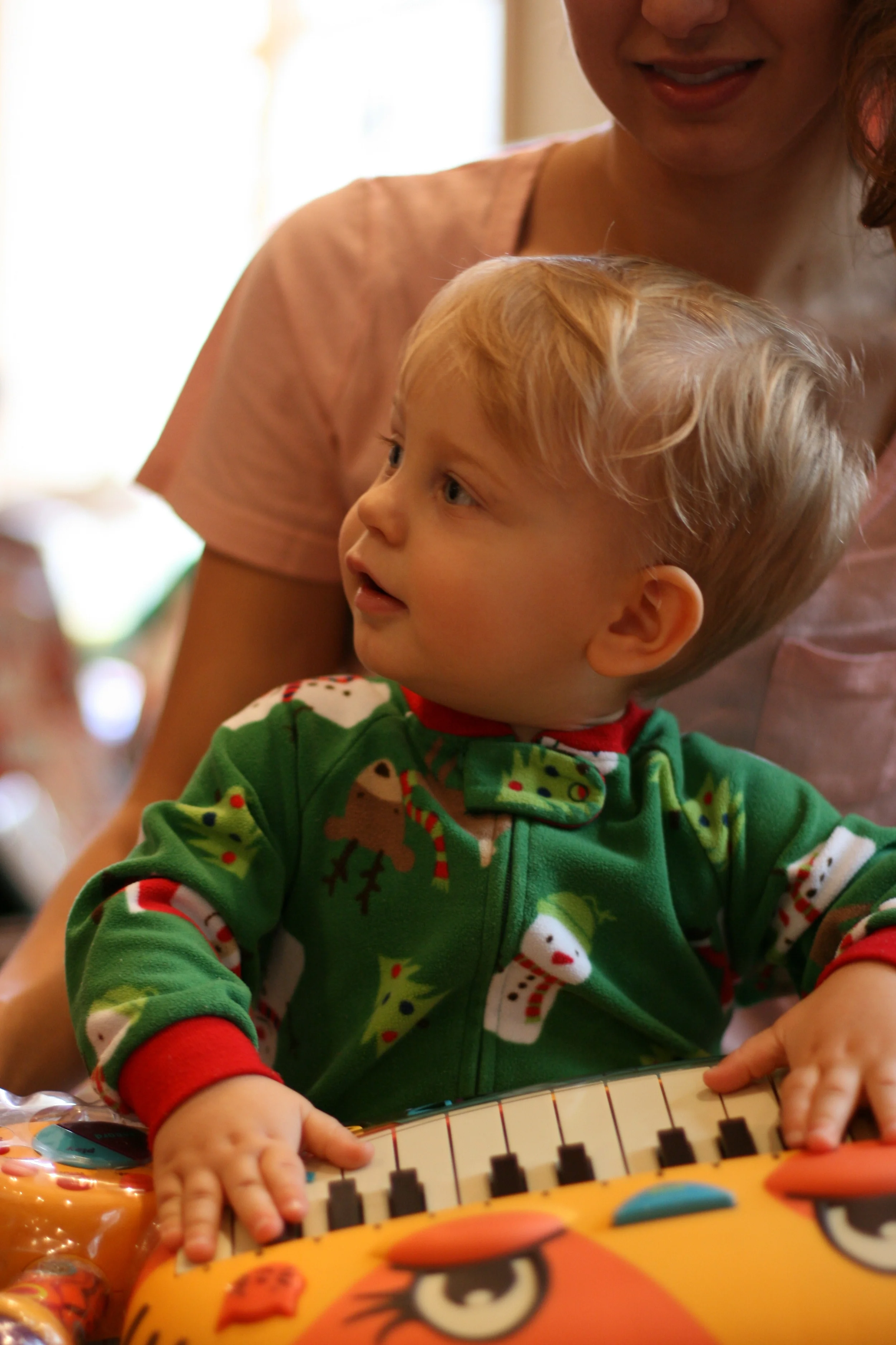 We had an new set of experiences for Christmas this year, because we celebrated on our own in our new home! It was wonderful. However, in the week leading up to Christmas, Everett got a wicked case of pink eye (in both eyes!) and a virus that kept spiking his temperature super high. We were working around the clock to get him healthy, trying every remedy in the book (on top of antibiotics and fever-reducer) including lukewarm baths and tons of water with a little bit of juice thrown in for good taste and lotttttts of snuggles. And Elmo in pretty much every form - on TV, in books, in stuffed animal form, wherever we could find him, we would take him. Everett is in a hardcore Elmo phase right now. It's pretty cute. Anyways, we kept calling the doc (and went in twice - we are such first-time parents) and asking what else we could do for him, and they just said it had to run its course.