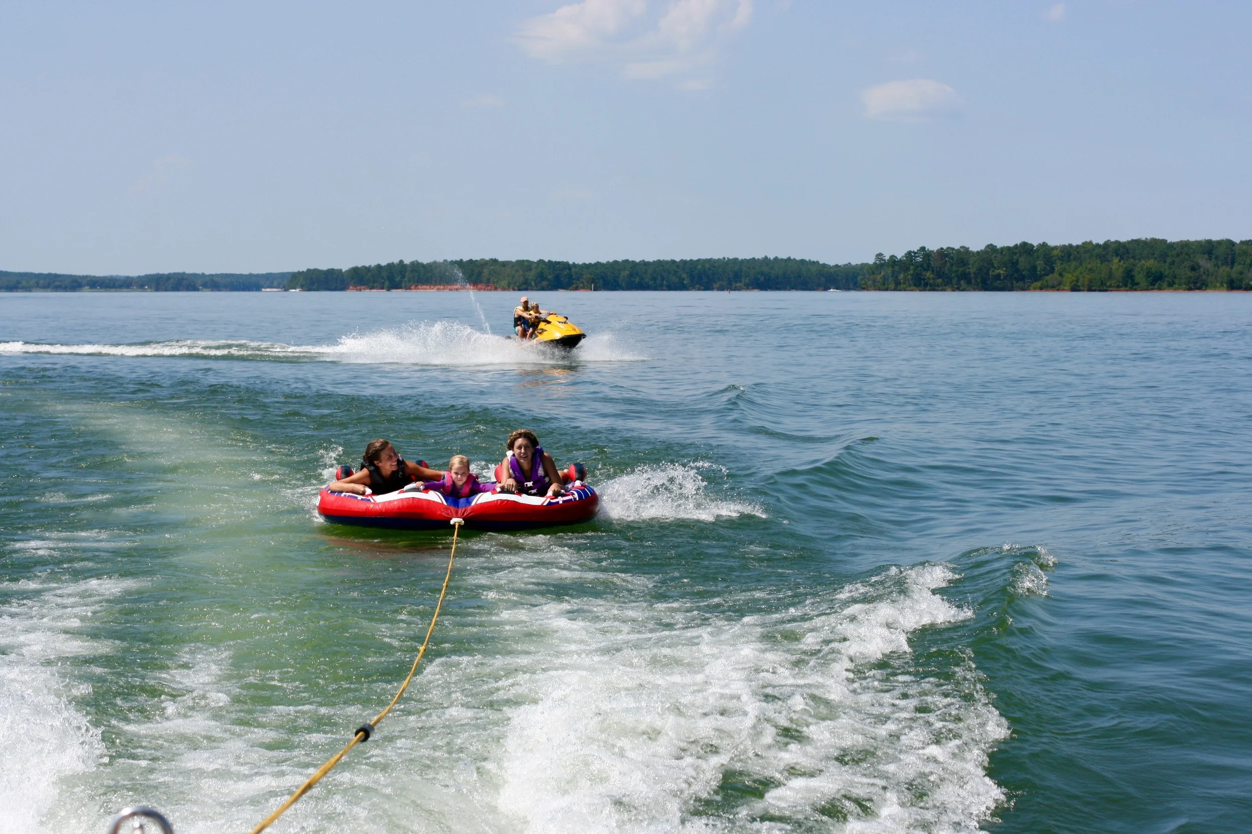 We swam, tubed, jet skied, ate a ridiculously perfect lunch, boated over to the dock where there is an ice cream stand (and devoured some ice cream sandwiches!), and cruised like only the maritime crowd do. It was wonderful. It was snazzy. Now I'm all, "Let's just return our house and buy a LAKE HOUSE!!!"