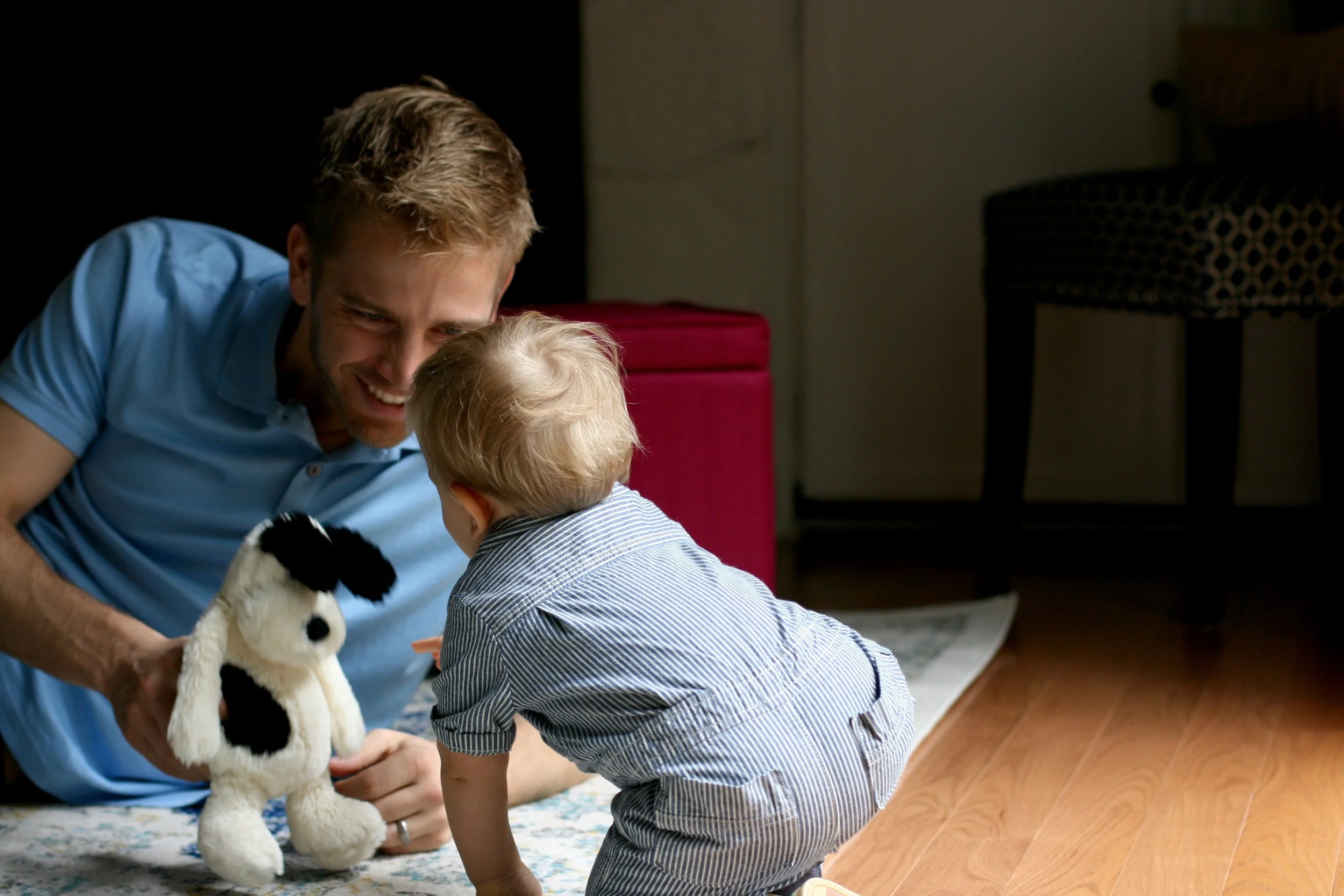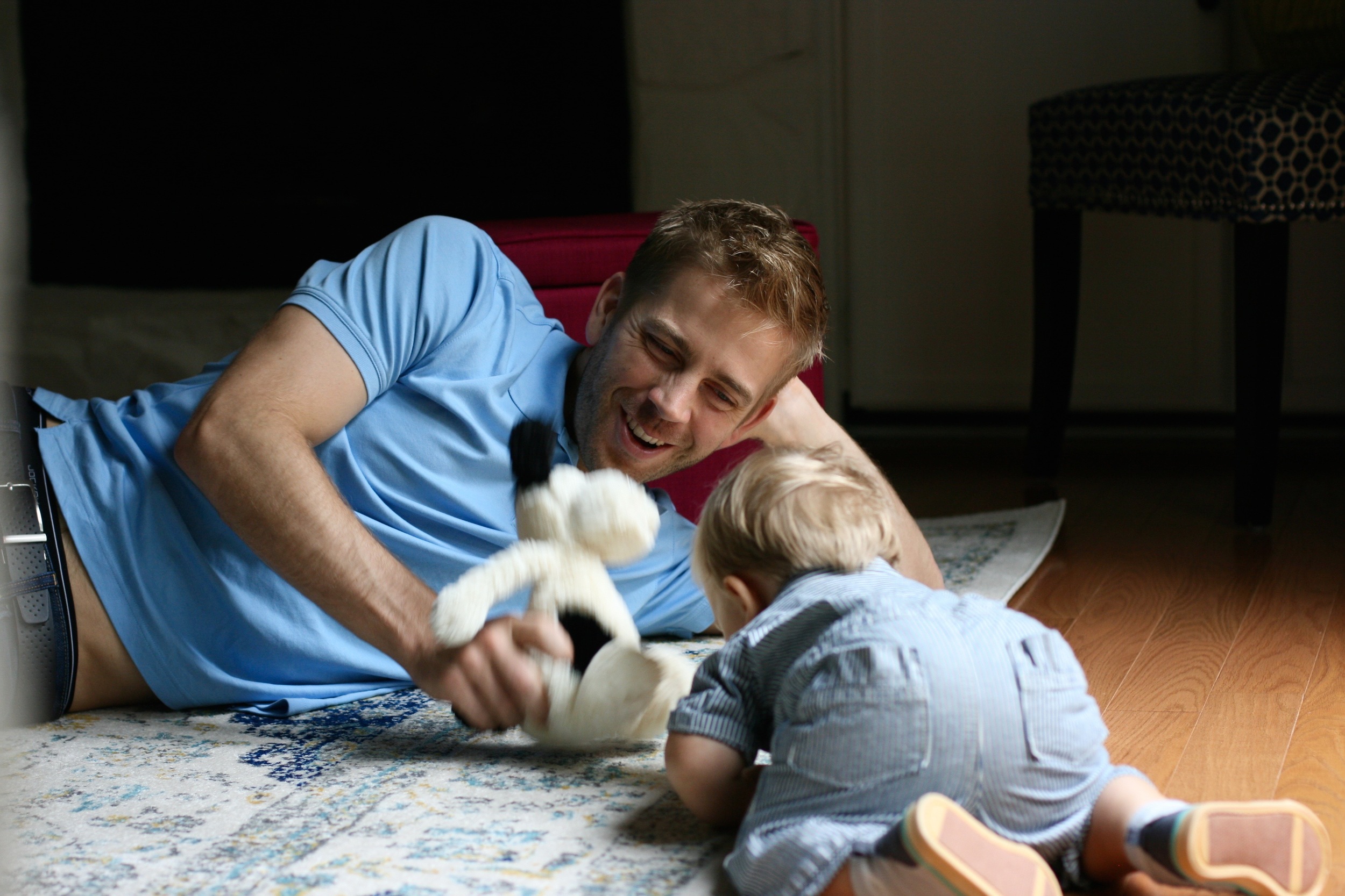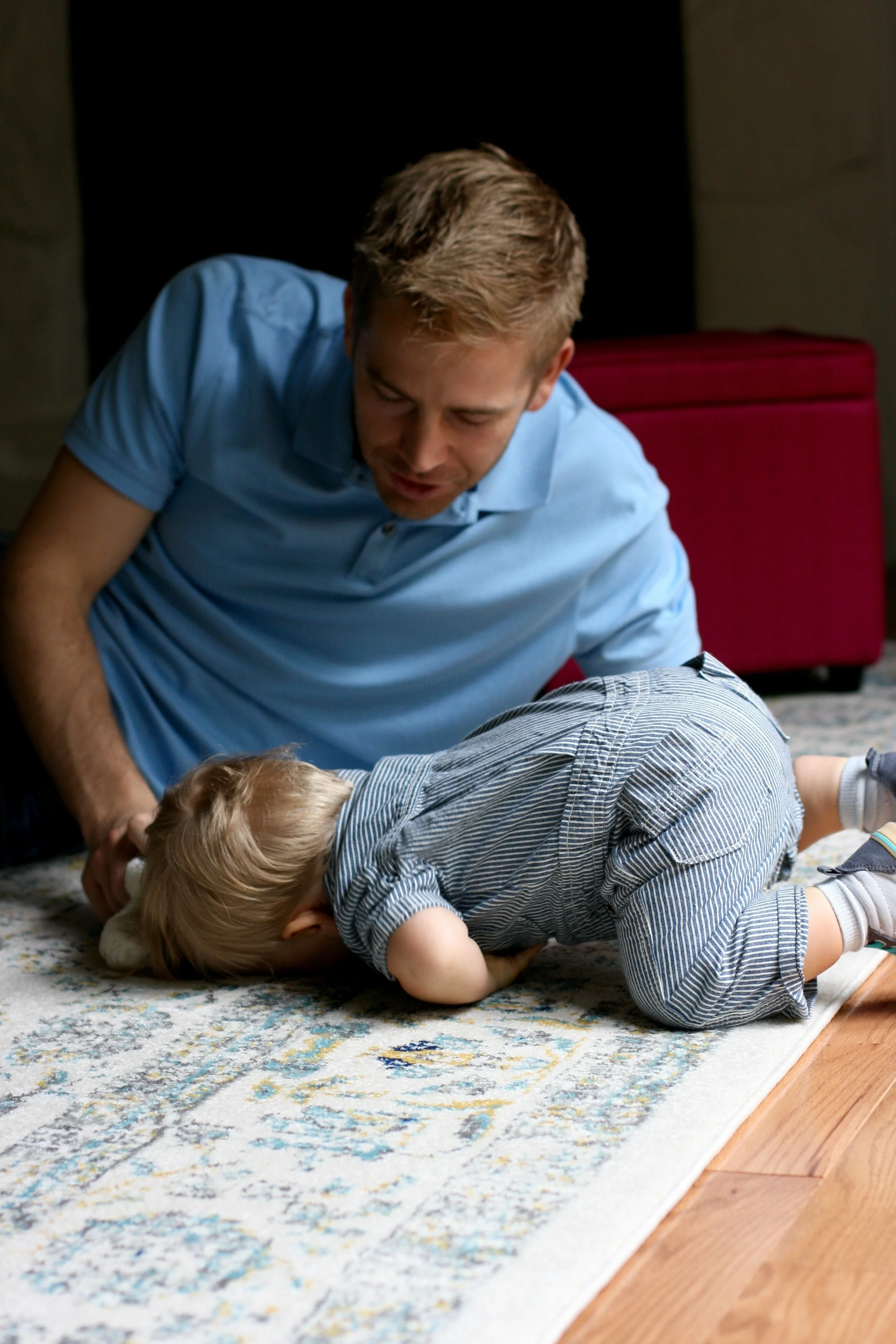 I just wanted to share a few of these photos because they make me feel happy and content. And lately I haven't been either of those things. I just want to keep it real. Sometimes life isn't overly hard or too easy, but it's unfun. However, even in seasons of strangeness and moving and feeling unsettled and as if you've misplacing your purpose (perhaps it's in that box over there), there is still a chance. An opportunity to find the joy in something really small. Like watching your baby son stare out the glass door in the first home you've ever bought. Like watching your big tall husband play with the itty bitty fluffy stuffed animal on the living room floor. Like feeling the arms of my boy wrap all the way around my neck while I smother him in kisses. These things are so precious. These are my sweet moments of true fun, real joy.