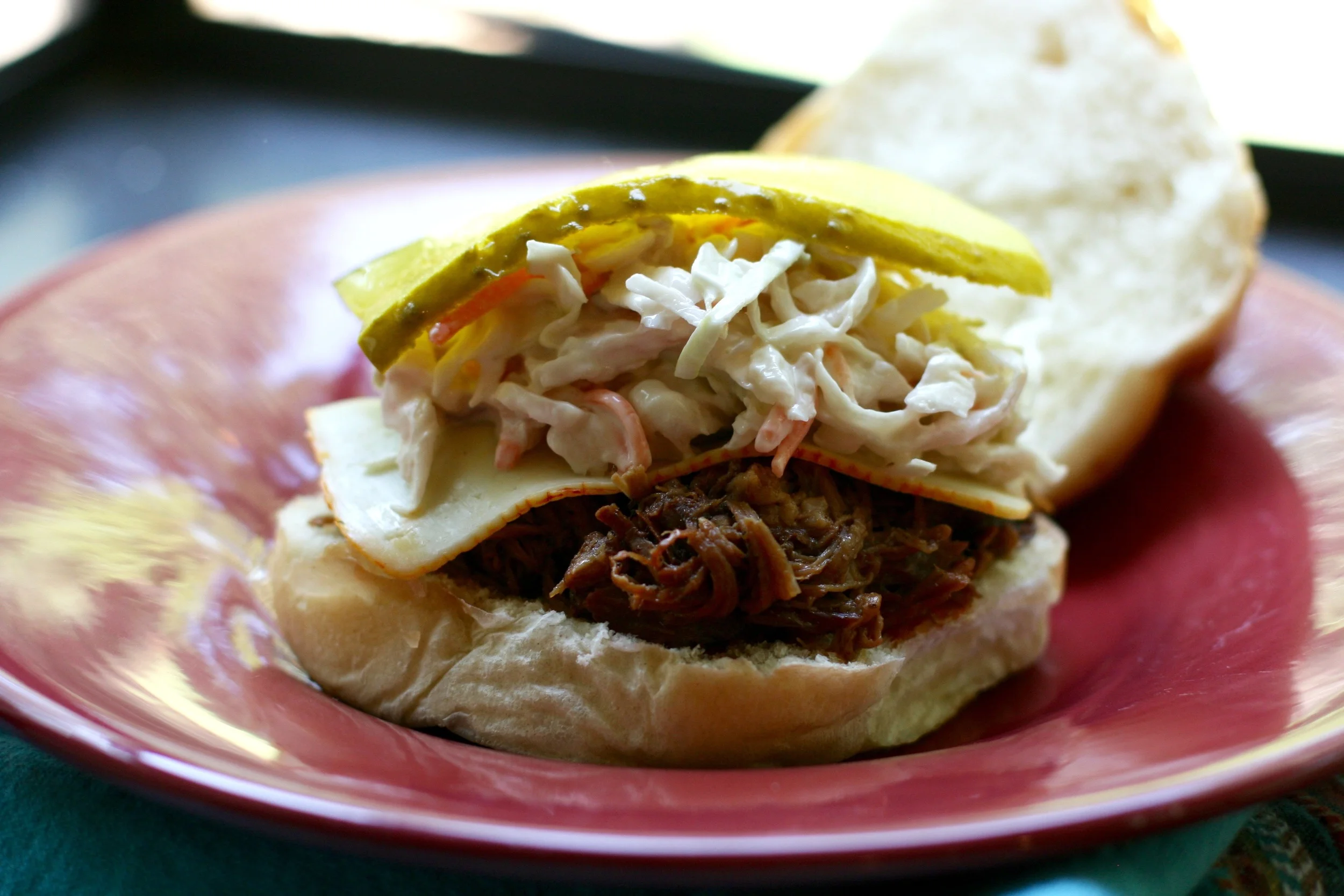 I personally like to use this pulled pork to make sandwiches, which I dress with muenster cheese, coleslaw and a pickle. Sweet or dill, I don't discriminate. However, you can also serve this on soft tortillas with some diced tomatoes, shredded cheese and coleslaw. It's all pretty ridiculously delicious. But make sure to invite some pals over - this meal makes a zillion servings. Bon Appetit, friends!