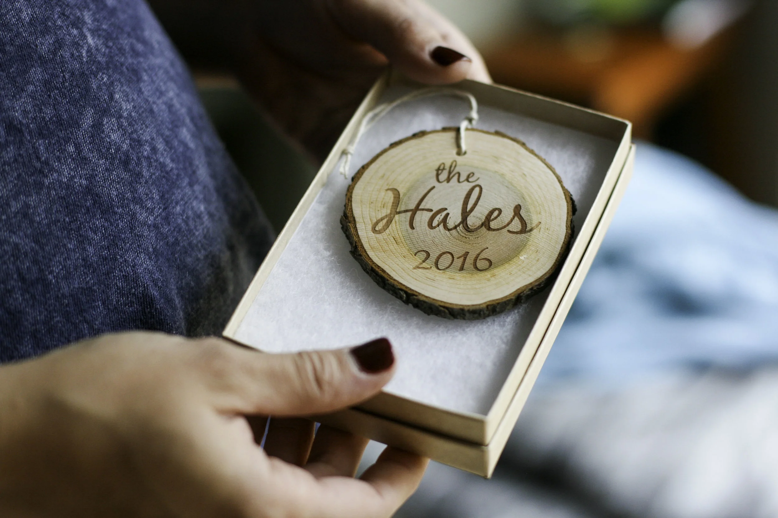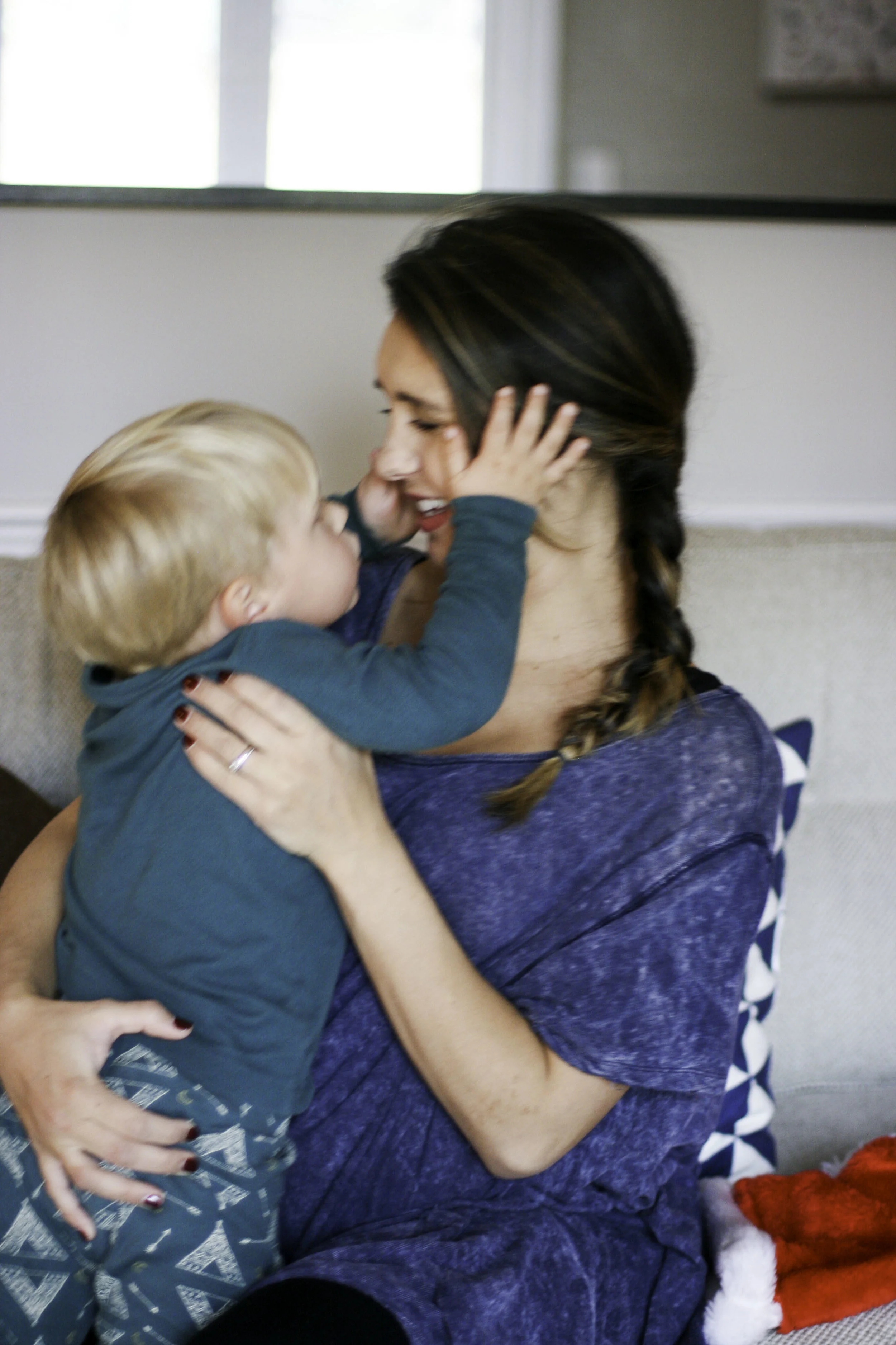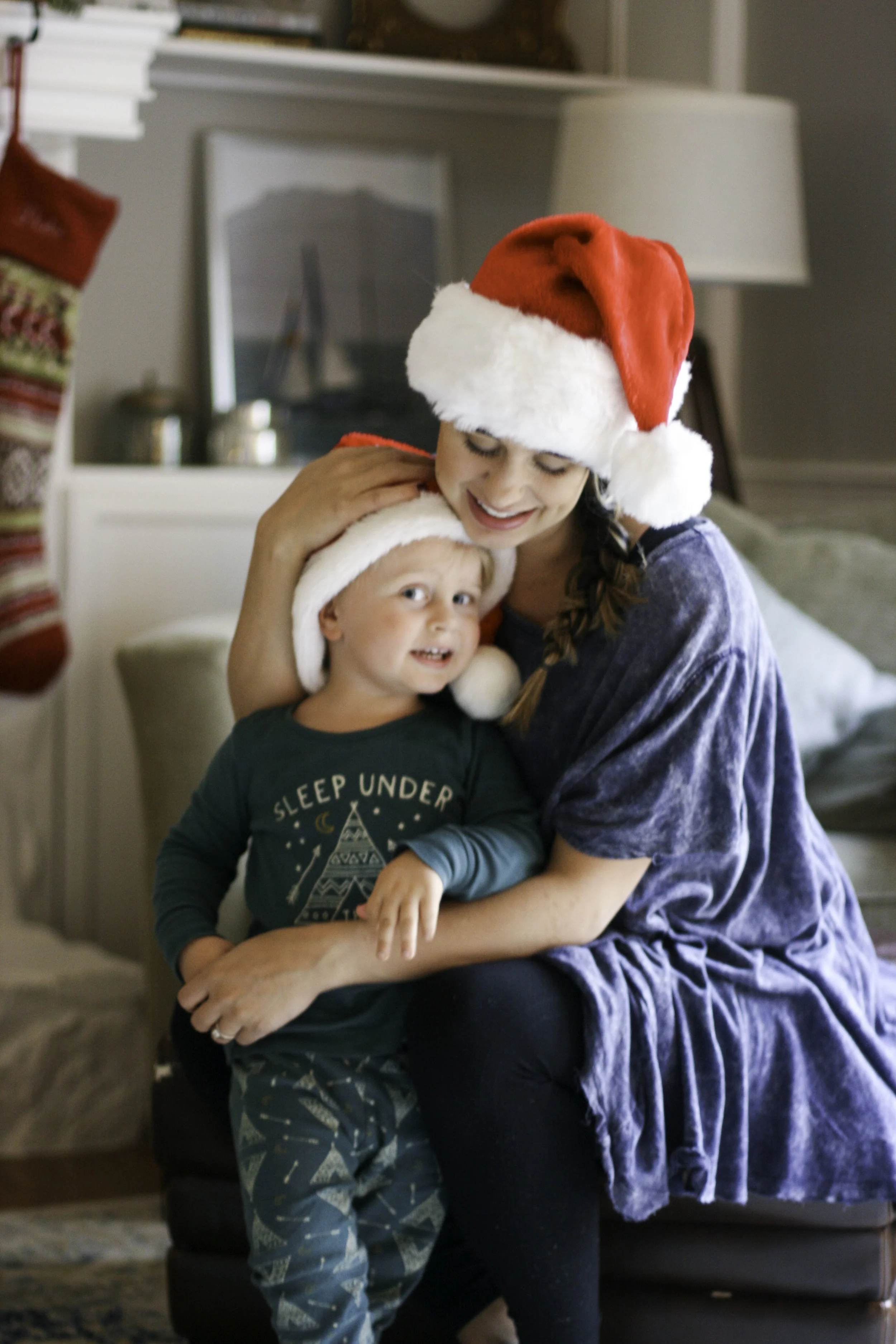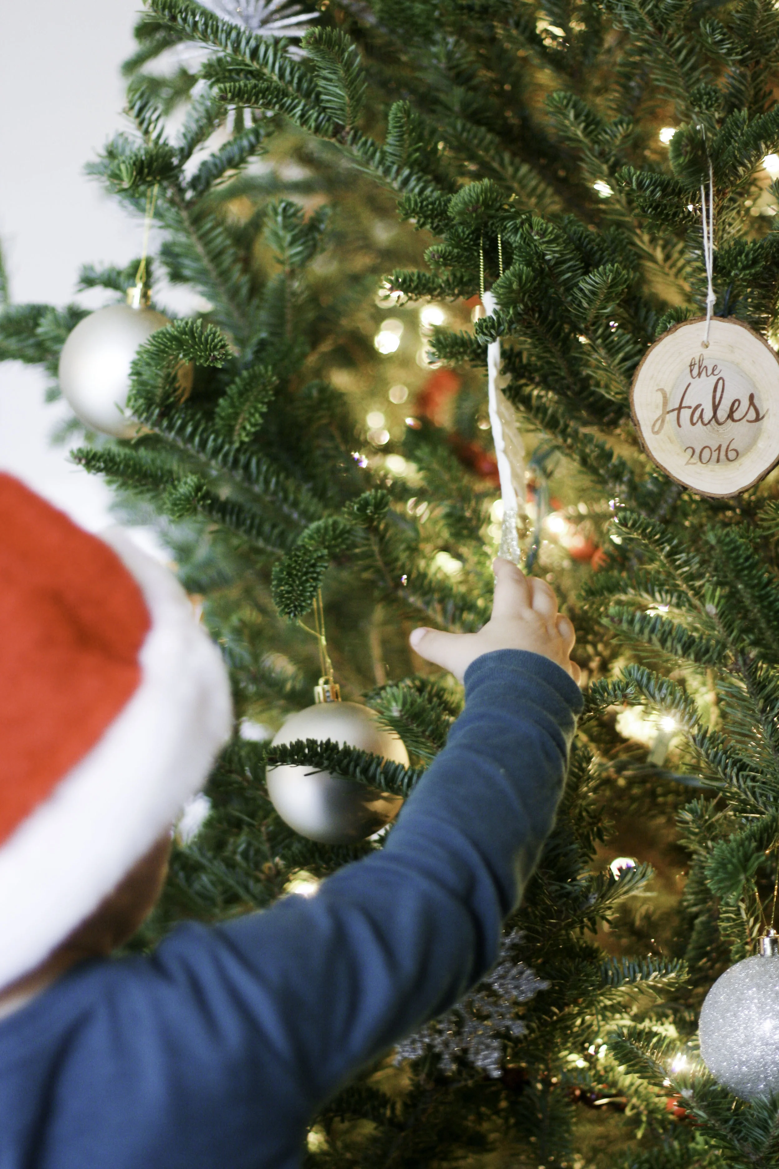 Stevie practically did everything to make Christmas happen this year, in terms of decorating. He put up the largest (and best!) tree we've ever had, smattered some extra branches on the mantle and draped the lights, but Everett helped me hang some of the ornaments lower on the tree and he was absolutely giddy. Just like he should be. I was so touched when Marked Moments Keepsakes reached out, wanting to send along a personalized ornament for us to hang on our tree this year. This wooded design is the perfect memory marker for what feels like another nostalgic year - this slice of life with my little family of three just moments before we balloon into a bustling crew of four. I am so smitten with these Christmas moments and I just want to simmer here for a while. And watch my little son hop like a frog in the glow of the lights while listening to Stevie strum the chords to a Johnnyswim song on his own acoustic.