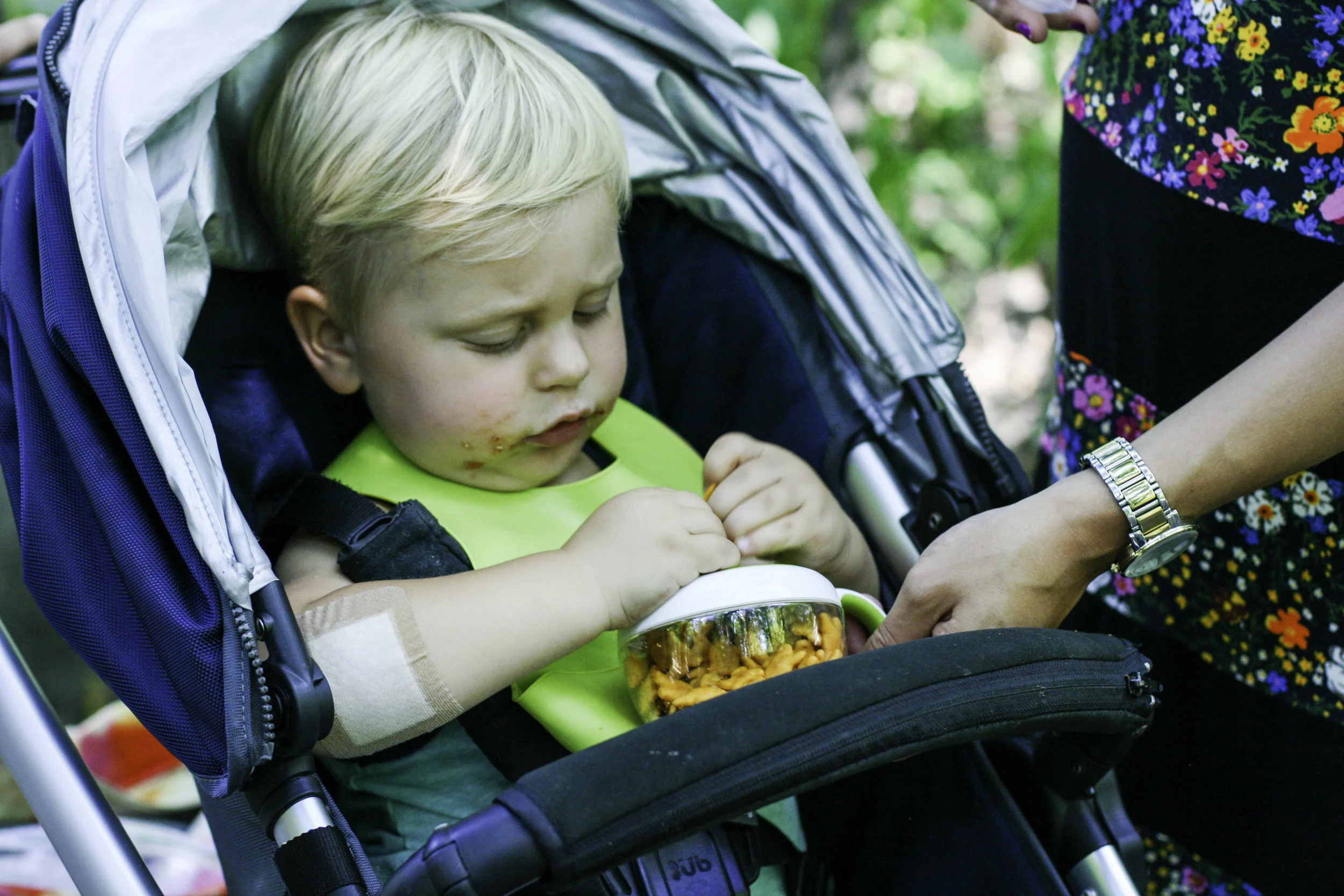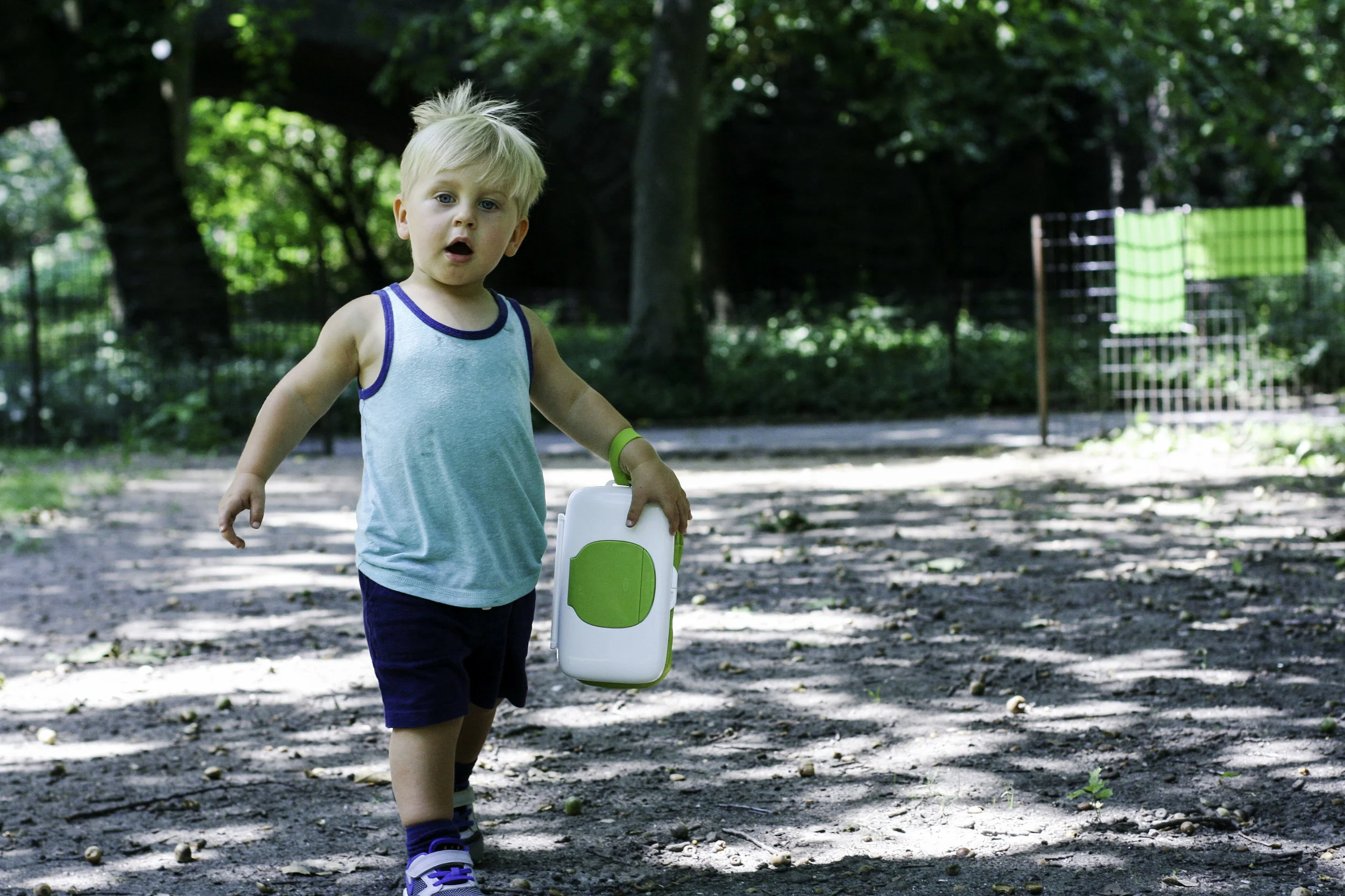 This one cracks me up, because Everett literally carried it around with him the whole time he was out of the stroller, calling it his present. "See Mom, see? My present!" He loved it. And you know what? I've tried out several of these diaper pouch contraptions over the years, and this one is by far the most compact and easy to use. No lie. Which means it's kind of like a present to me, too. We kept pulling out wipes on this particular day, obviously to change diapers, but to wipe off dirty hands (Everett touches everythingggggg) and it was super convenient to be able to hang it from the stroller and easily access those wipes whenever we needed.