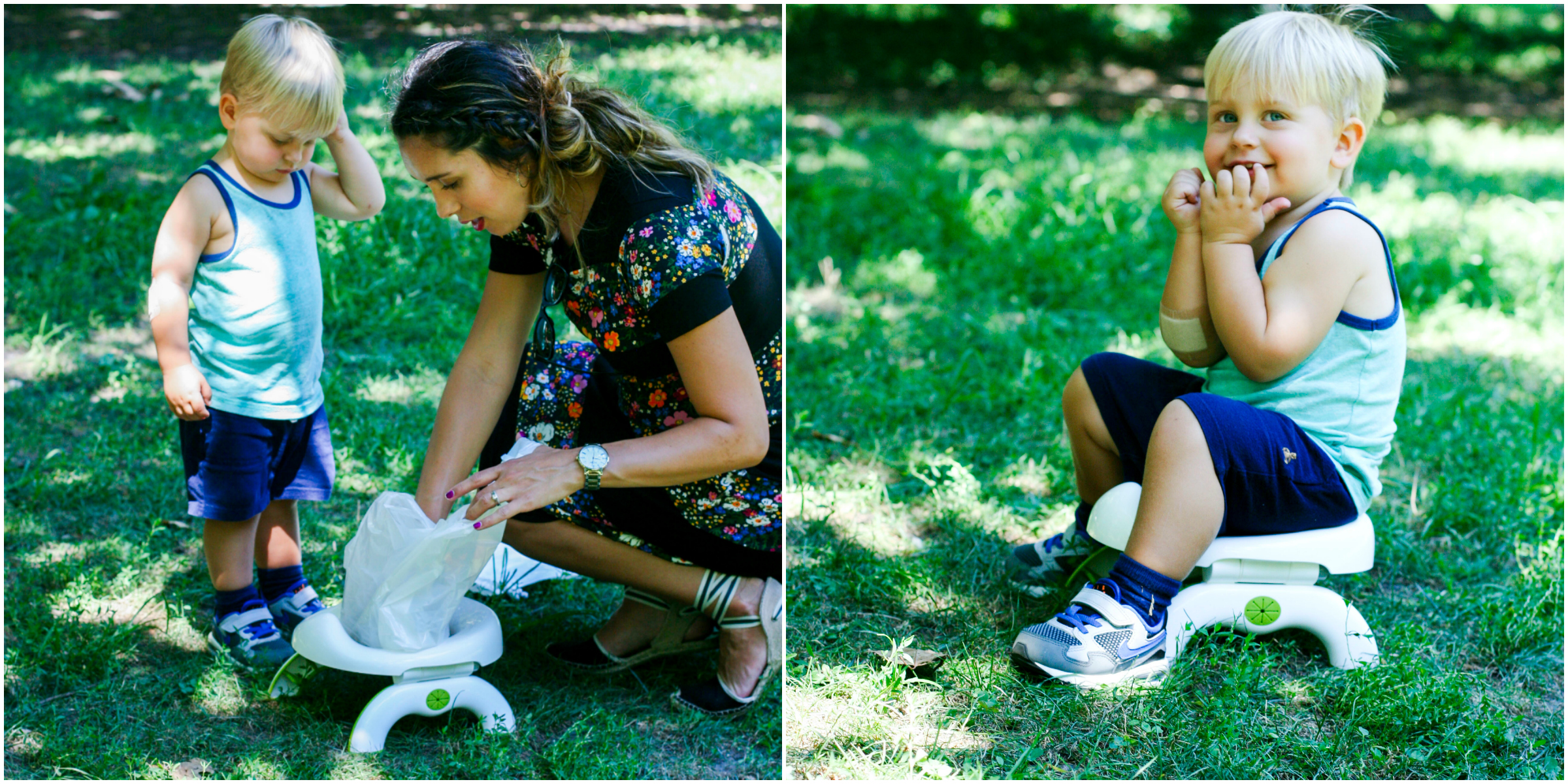 A word on potty training. We aren't actually pushing it yet. But - my kid is SO INTERESTED. And perhaps this is TMI but he wants to flush the toilet for me like, every time I go, and he sits on the potty and home and pretends to wipe and flushes for himself. It's the cutest. So I think we might be getting close to that time where we actually try to train him. I just want to be sensitive to the fact that he's a boy and they usually train a little later. But when we pulled out this on-the-go potty, he flipped. He loved it so so much. Please imagine my child in Central Park yelling "I did it!!!" as he pretended to go on this potty. Well, you don't have to imagine it, because we photographed the whole hilarious scenario. I know this potty will come in handy in the coming months as we begin to train him to use it on the go :) P.S. it includes some really cool liners, so it never feels like you're touching something gross. Just a little extra bonus for those of us moms who get grossed out easily (anyone else raising their hands here?)