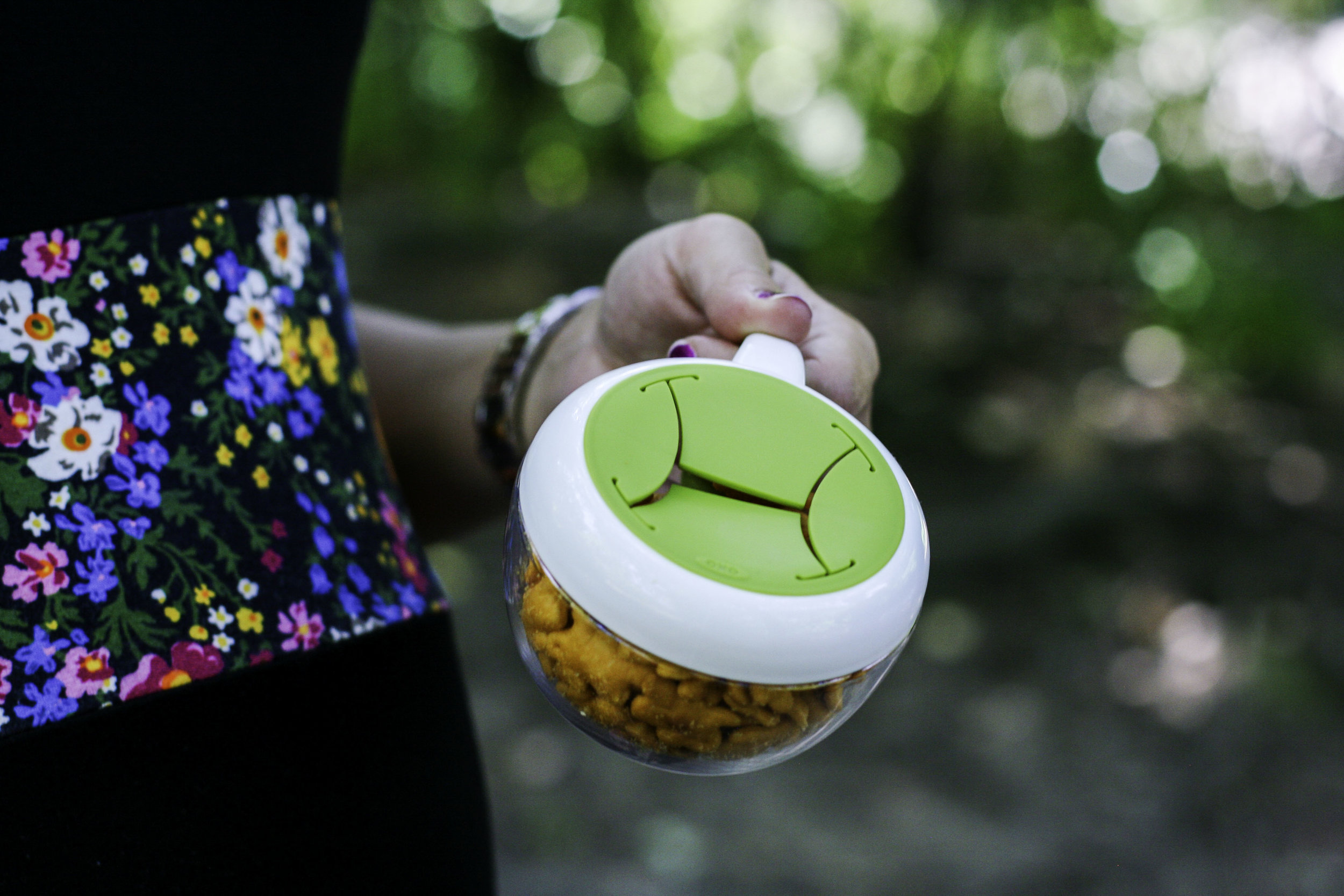 Everett's most-asked for snack is bunnies (Annie's Cheddar Bunnies, for those of you who know what I'm talking about). This little snack cup is perfect for his bunnies because he can reach in and grab some, but not too many at a time. And there's a plastic cap included, which keeps the germs at bay (and my peace of mind intact!)