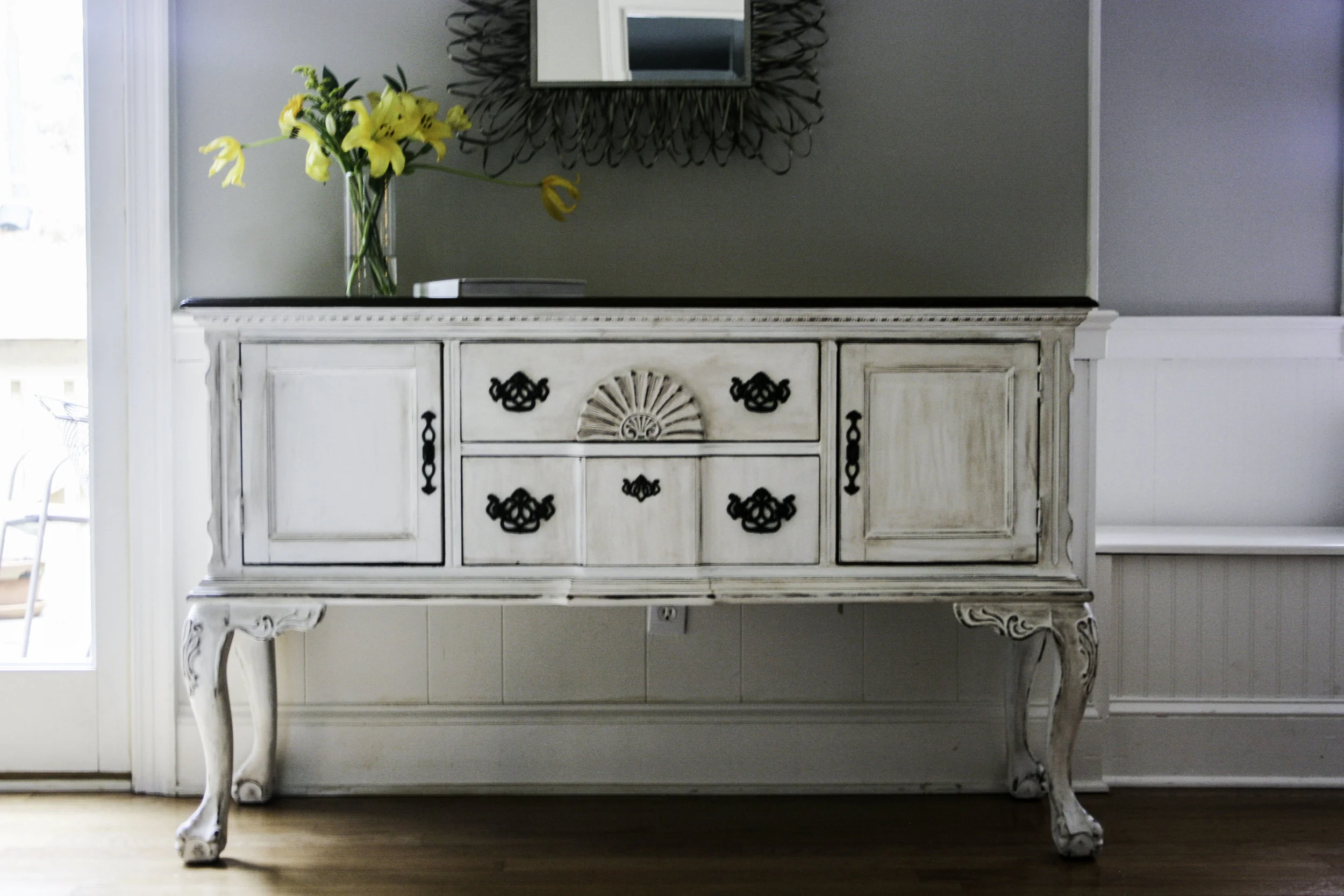 I finished the buffet with another coat of clear wax over the entire piece, to seal everything. Then I spray painted the hardware with Rust-Oleum Metallic spray paint in Oil Rubbed Bronze. Overall, I am super pleased with the buffet and I feel like achieved that french provincial look I was going for.