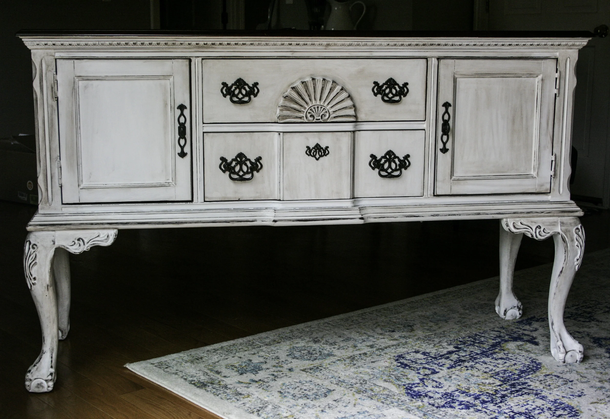 I would like to say there's a happy ending to this story, but I'm still mid-story. I managed to finish re-doing the dining room buffet before this little guy arrived, and I am so thrilled with how it turned out. However, I still have a gigantic china cabinet and dining room table to finish... so I'm about 1/3 done with the set. But still! Progress!