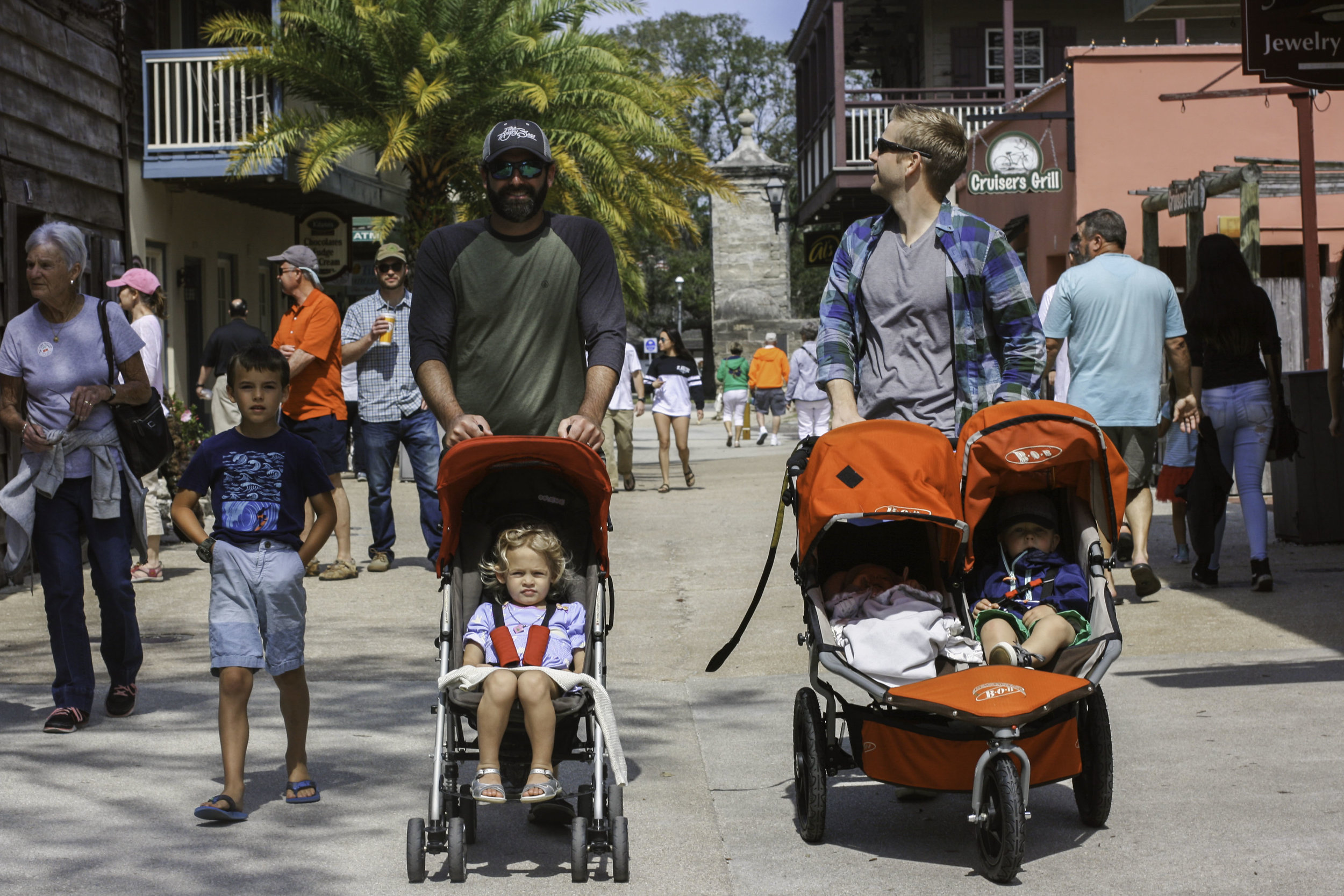 We did all the things on this trip - walked the downtown (favorite shops are Red Pineapple and Sea Glass), ate the best popsicles (the Hyppo Pop!) and did what most parents of a oodles of children do - eat at home. There are sooo many awesome restaurants in St. Augustine, but in this stage of life, we didn't dare try to take ours out to dinner with us :) My bro-in-law Brad took us out on his boat to a deserted island, where we had a lunch of barbeque sandwiches and mac n cheese. I'll be honest - I felt like quite the fish out of water. I've been on boats a lot before, but it made me realize that we aren't native boating types - the first moment Brad started driving the boat, both of my boys started howling and Everett literally threw his body on the ground of the boat shrieking. Me and Stevie just looked at each other like, "Ummm this is bad." Thankfully we got both of them to calm down, but it just made me feel like our family is so suburban. Haha oh well. We are.