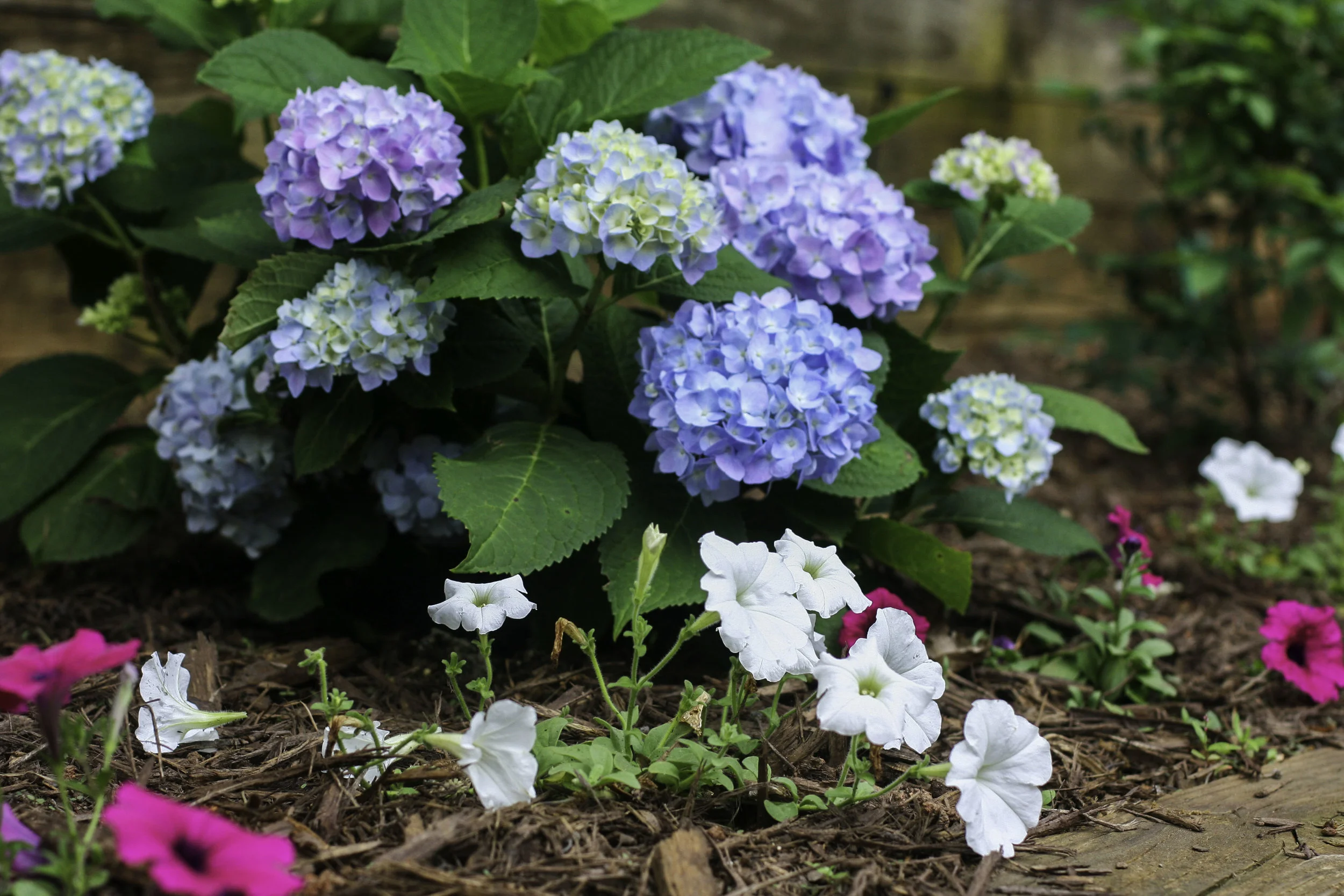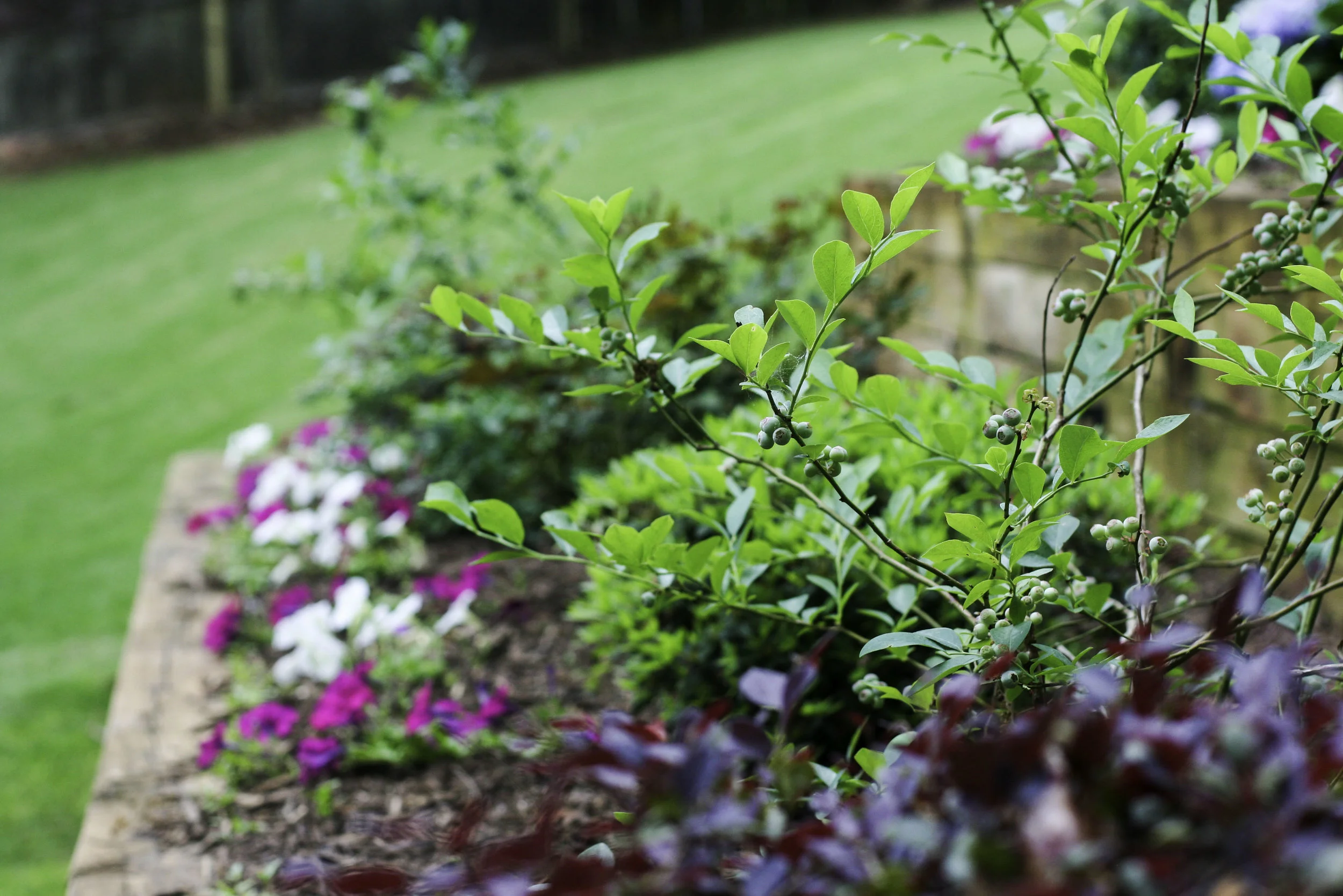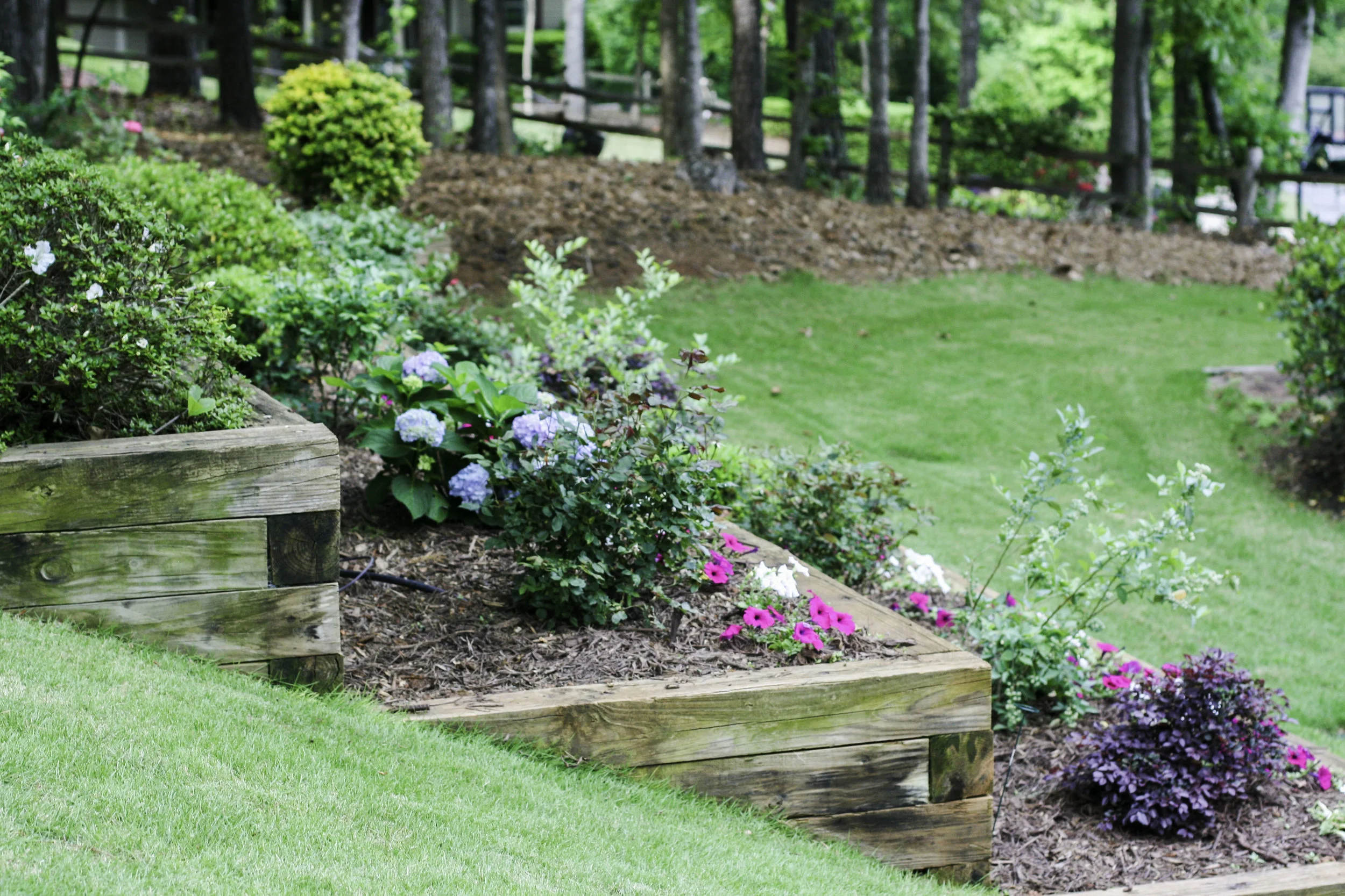 We added a pink dogwood tree, a white dogwood tree, a Japanese maple tree and a smattering of blueberry bushes and encore azaleas and knockout roses. We threw in some hydrangeas for good measure and camelias because why not and lorapetalum because we NEEDED them and some geraniums because yeah. Stevie rebuilt part of our fence that was falling over and added a stone walkway because he's my hero. We topped everything off with dark mulch and lined the entire yard with flagstones and oh yeah, we threw in a couple of pallets of pansies because he just had to have them. And like I said, it was so much fun agreeing that I couldn't say no to such things.