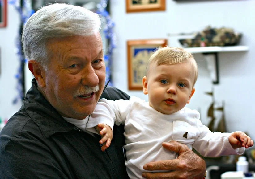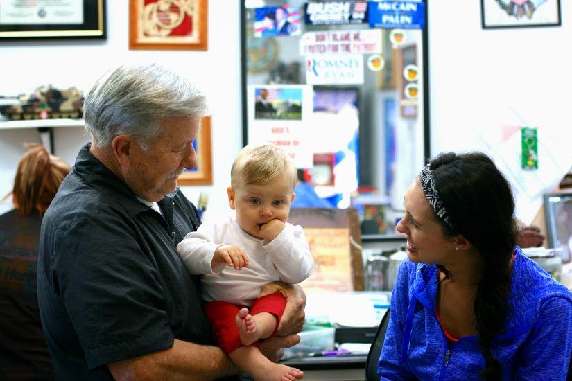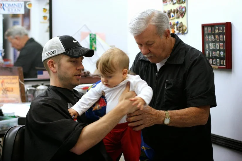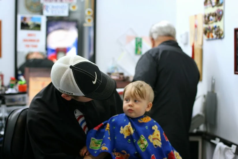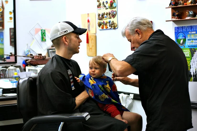 He won the argument. We went to his barber shop, a laid-back, no-frills place here in our town. We entered, and the glossy black and white checked floor immediately grabbed Everett's attention. Mesmerized, we sat and waited. He had no idea what he was in for.