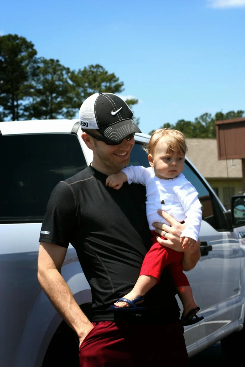 He's thinking it's just a regular Saturday, pal-ing around with the rents.
