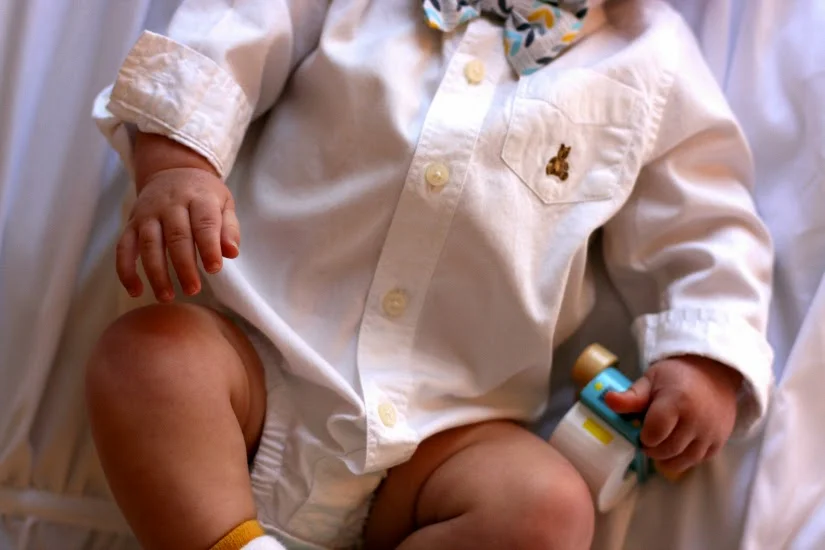// His big day outfit: Turbans for Tots Bow Tie, Baby Gap Oxford, Freshly Picked Moccasins, Baby Gap Socks (similar) (Not pictured: Polo Baby Blazer (a few seasons old, a gift!), Baby Gap Jeans (similar)) //