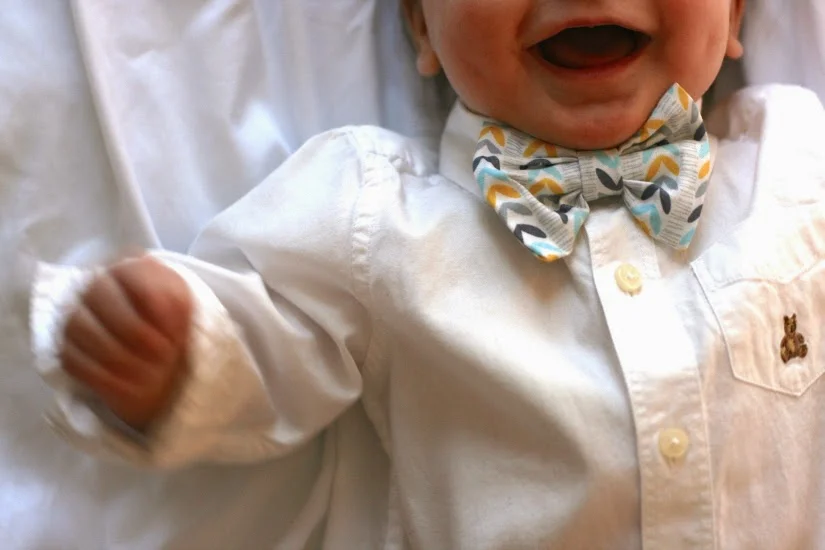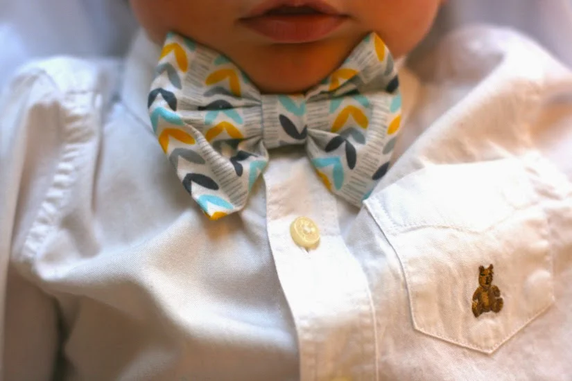When I was thinking about what Everett should wear for his big day, I knew the centerpiece of his OOTD would have to be a swanky new Turbans for Tots bow tie. If you aren't familiar with Turbans for Tots, you should be! My friend Jenna makes the most adorable baby & toddler accessories, and when I was pregnant I would find myself pining away as I flipped through her Etsy shop of little girl hair accessories. When I found out I was pregnant with a boy, I knew I would have to put my Turbans for Tots obsession on hold, since her shop didn't offer any boy items. Sigh. But oh, the world has come into alignment, and recently they launched BOW TIES FOR BOYS. (Insert hallelujah hands emoji here).