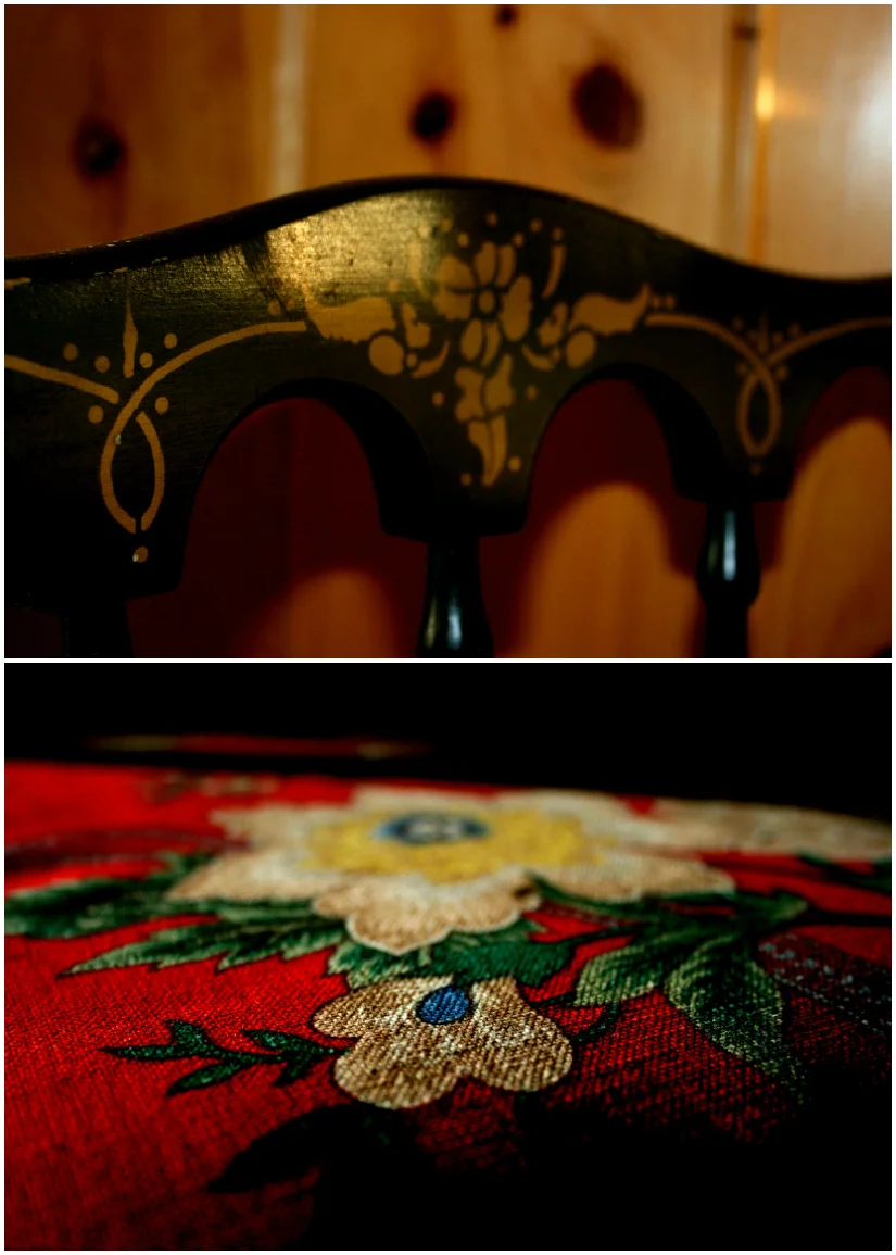 The detailing of the house was impeccable. The upholstery was deeply textured and antiquated. The furniture displayed carefully hand-painted fleur de lis. I wanted to photograph everything, from the books to pictures to the bowls we ate out of. It was all just so beautiful and unique, but different than my style. It wasn't feminine and anthropologie-esque, but it was more earthy and hearty. Strong stone, weathered cedar. Lived-in furniture. Yes, that chair has been sat in. A lot.
