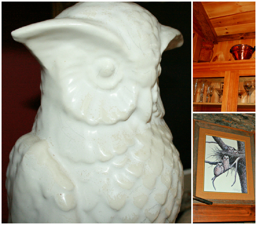 There was a common theme in the cabin: owls. In every room of the house, there were little owl eyes peeking out, watching. Okay, that sounds a bit creepy, but since I LOVE Owls (shout out to my Alma Mater, KSU!) I found their presence really fun. It was like a tiny little surprise in each corner. Here are just a few of the cuties I found around the house. It was like a scavenger hunt, trying to capture them all on camera.