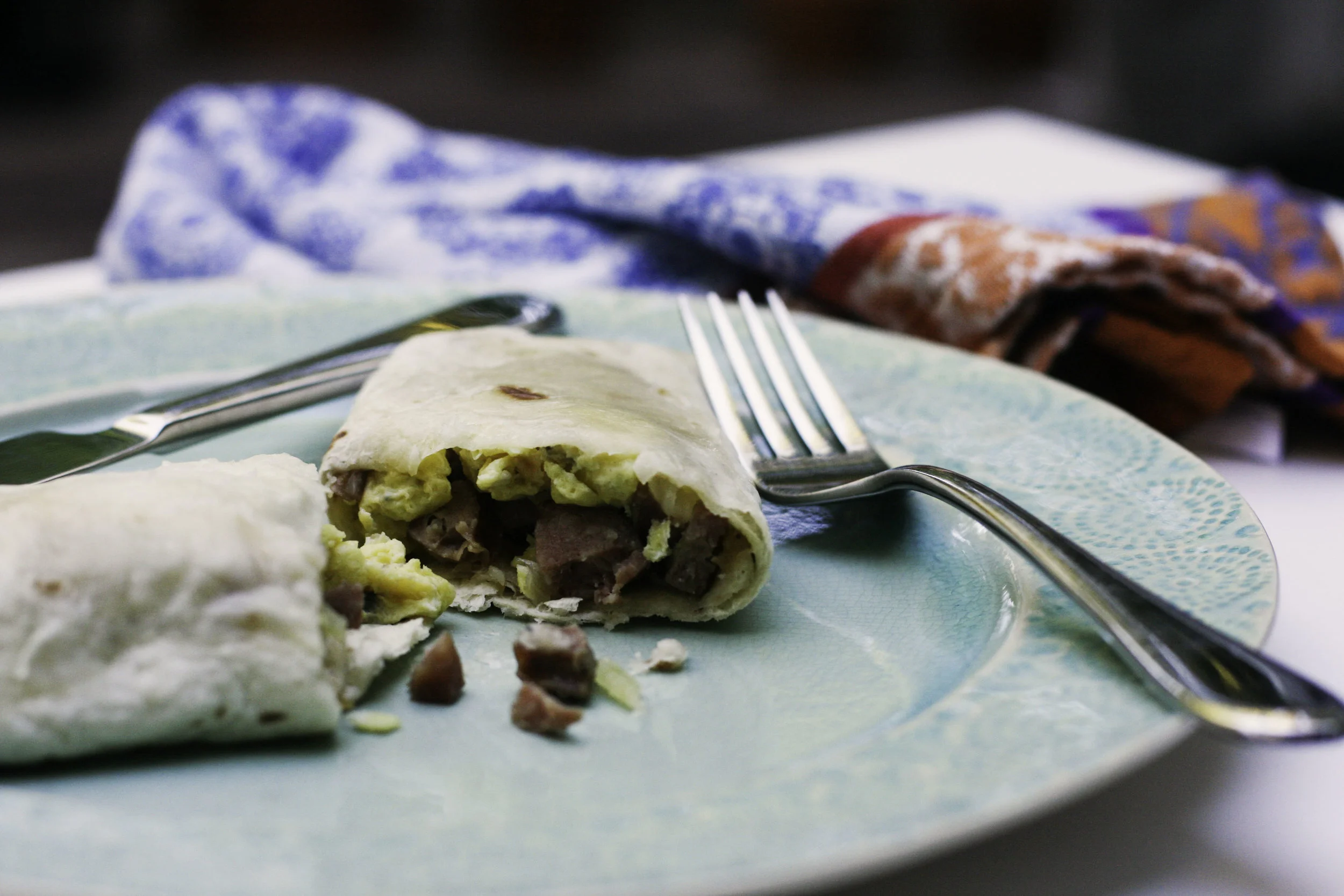 7. Place the wrapped burritos in large, freezer-safe zip-top bags. Store in the freezer and remove as needed. This recipe should make you about 12 burritos.