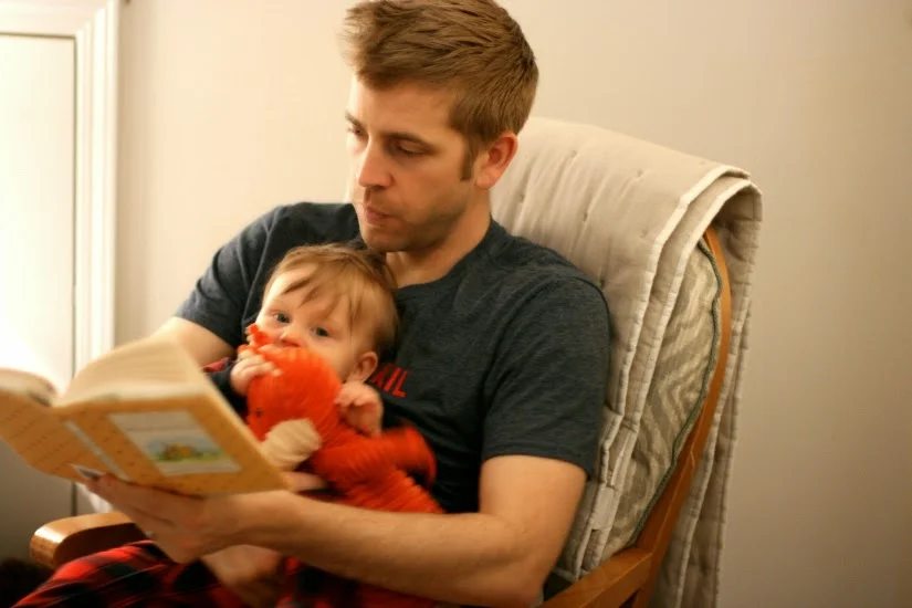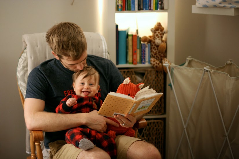 I will often read board books to Everett during the daytime, but when bedtime rolls around, we pull out the lengthier storybooks. Stevie and I take turns doing "voices" for the different characters and I think we might enjoy each other's goofiness more than our child even comprehends. But he laughs (sometimes) and we are all having a good time with it, so you know, there's that.