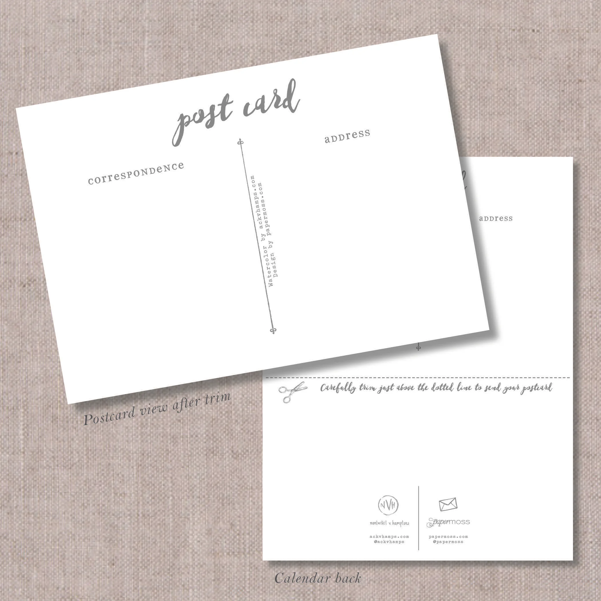 Printed on luxe 130lb paper with an eggshell finish, each 5x6.5” month features a one-of-a-kind watercolor that when trimmed turns into a 3.5x5" postcard. Mini magnet included to display each month.