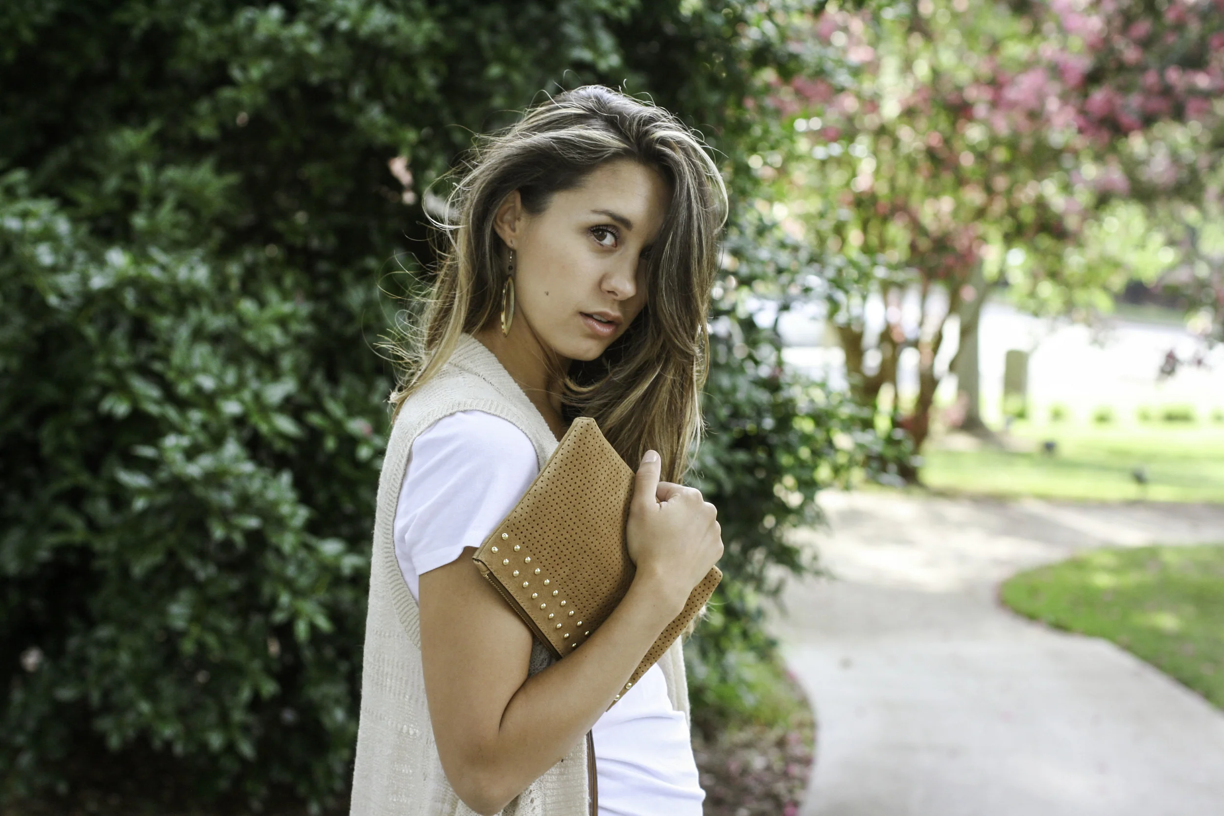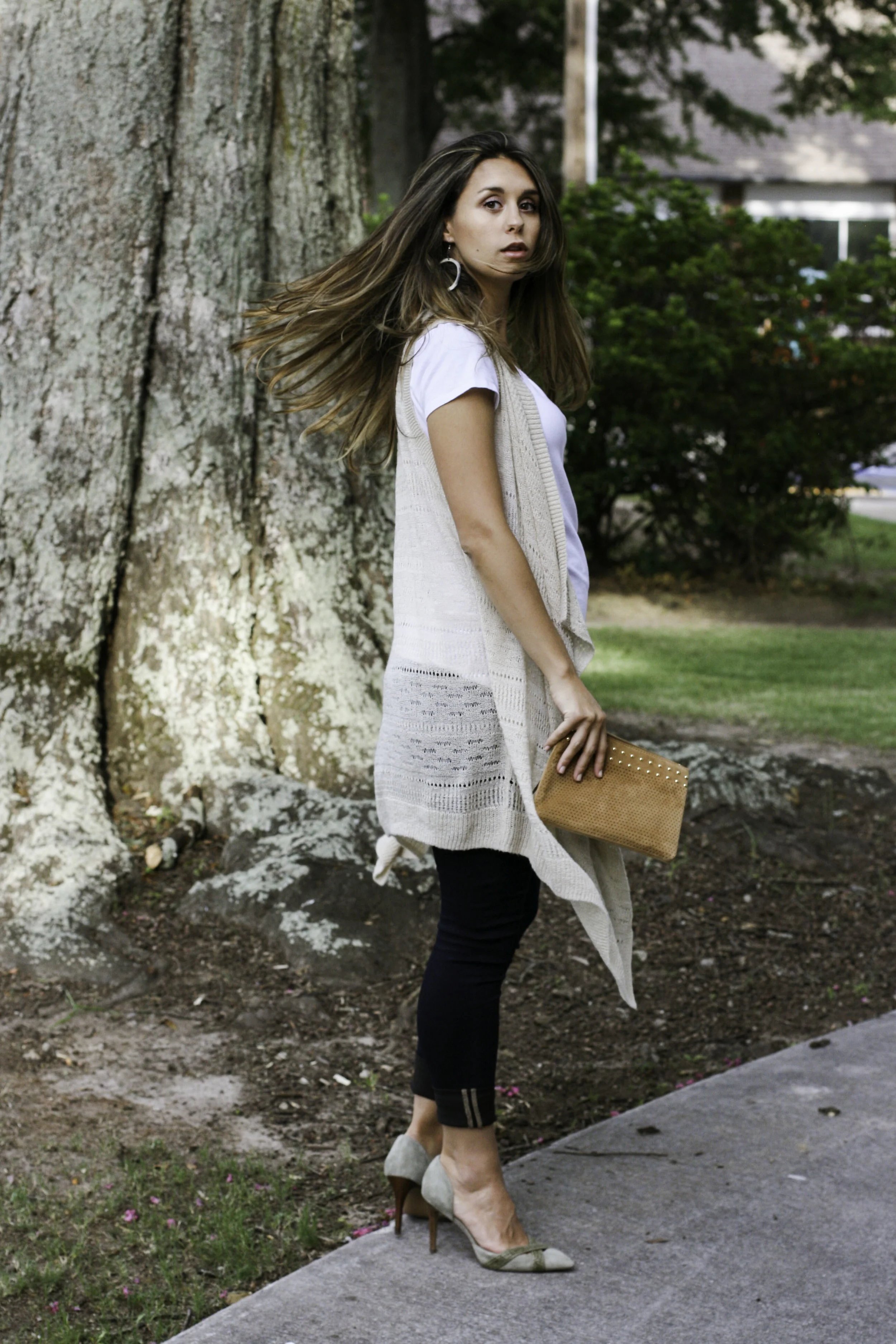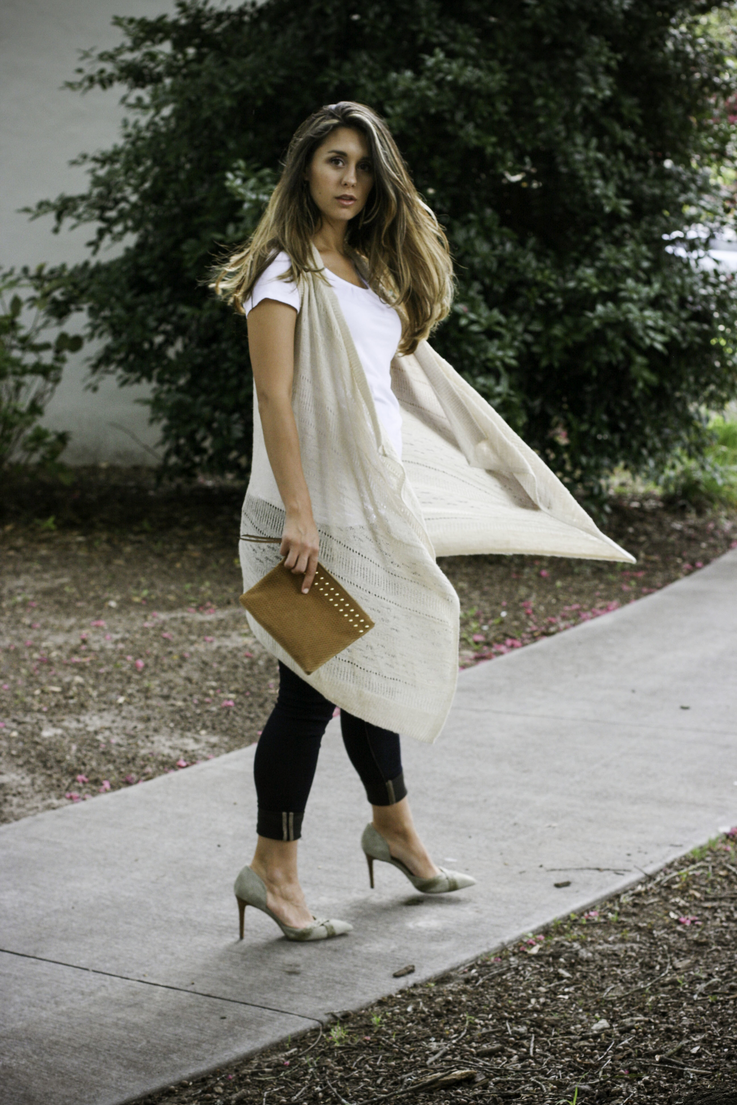 I assembled this airy outfit of denim, white and cream for our date night last week. I love this combination of neutral shades and textured accents - adding this Banana Republic small stud-suede zip pouch and Delise Woven-Strap D'Orsay Pumps were the perfect sassy "pop" for this otherwise simple look. The zip-pouch is great because it's not too fancy but it's really sleek with those studs. And it smells like that yummy Italian leather - you know that scent that makes you want to eat a bag or shoes? Yep, this has that going on. And of course, need I say anything about those shoes? I mean seriously. Banana, I wish you would make cuter clothes. #kidding #iwantmore #clothesnotcandy