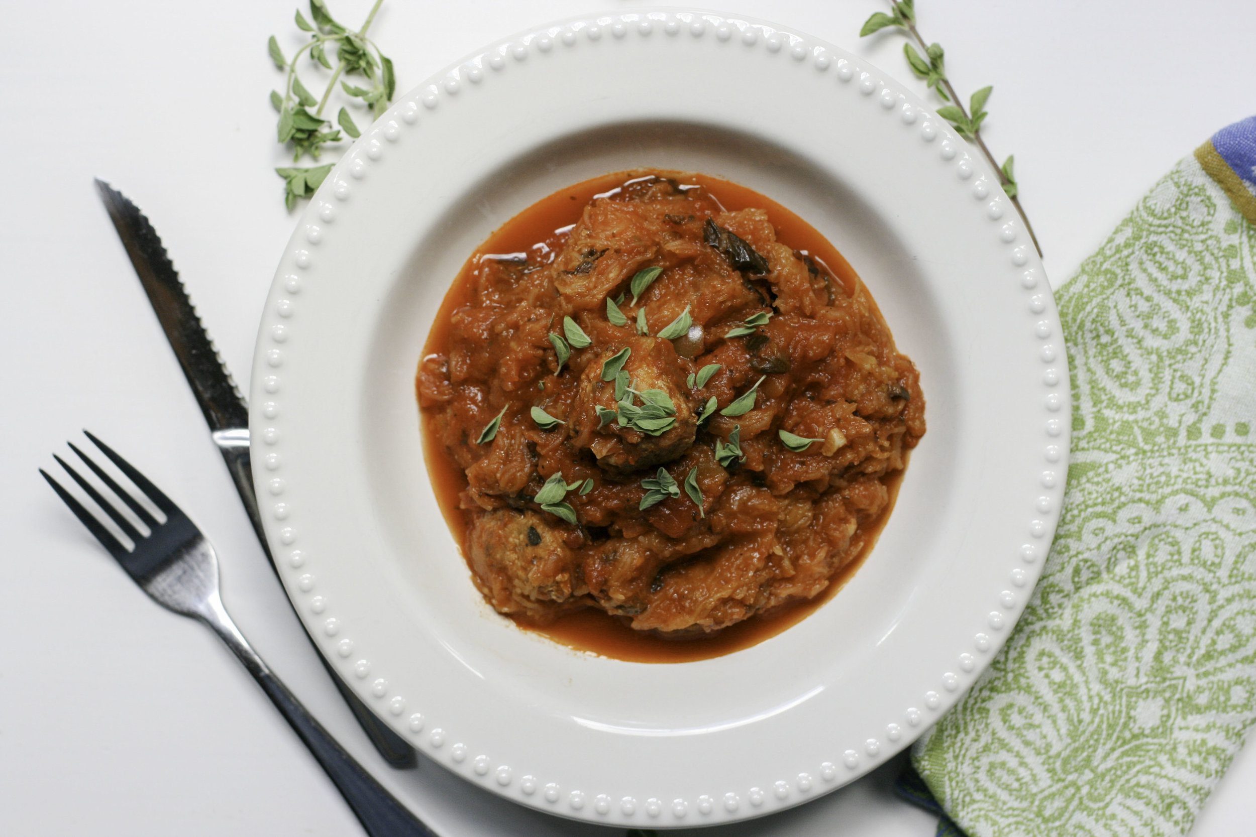 Top noodles with your favorite spaghetti sauce (after doing the homemade work for the noodles and meatballs, I don't dare prepare my own spaghetti sauce, too. I like to use the Costco or Whole Foods brands because they are Whole30-compliant and delicious.) Top with meatballs and fresh oregano or parsley. Bon Appetit!