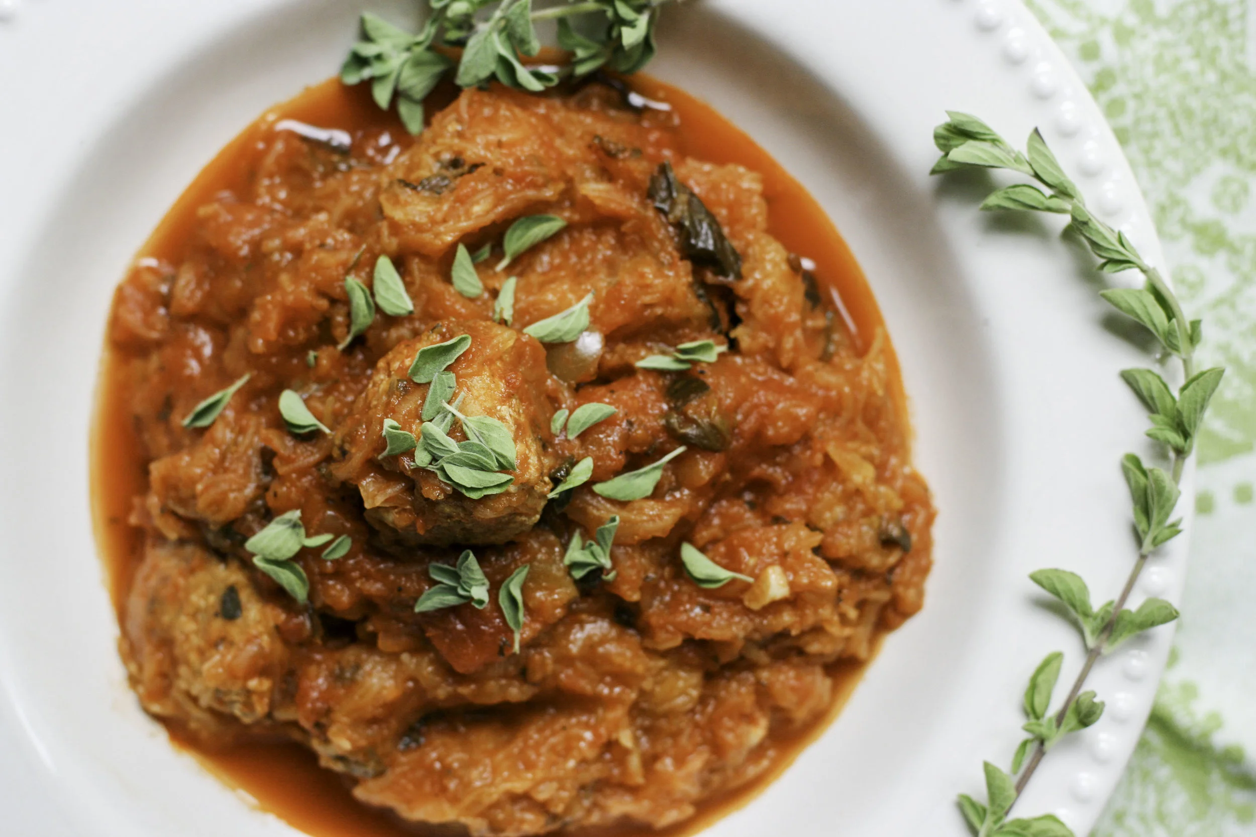 Spaghetti Squash Spaghetti with Chicken-Herb Meatballs (Whole30 Compliant!)