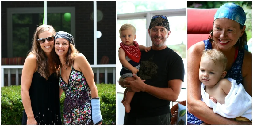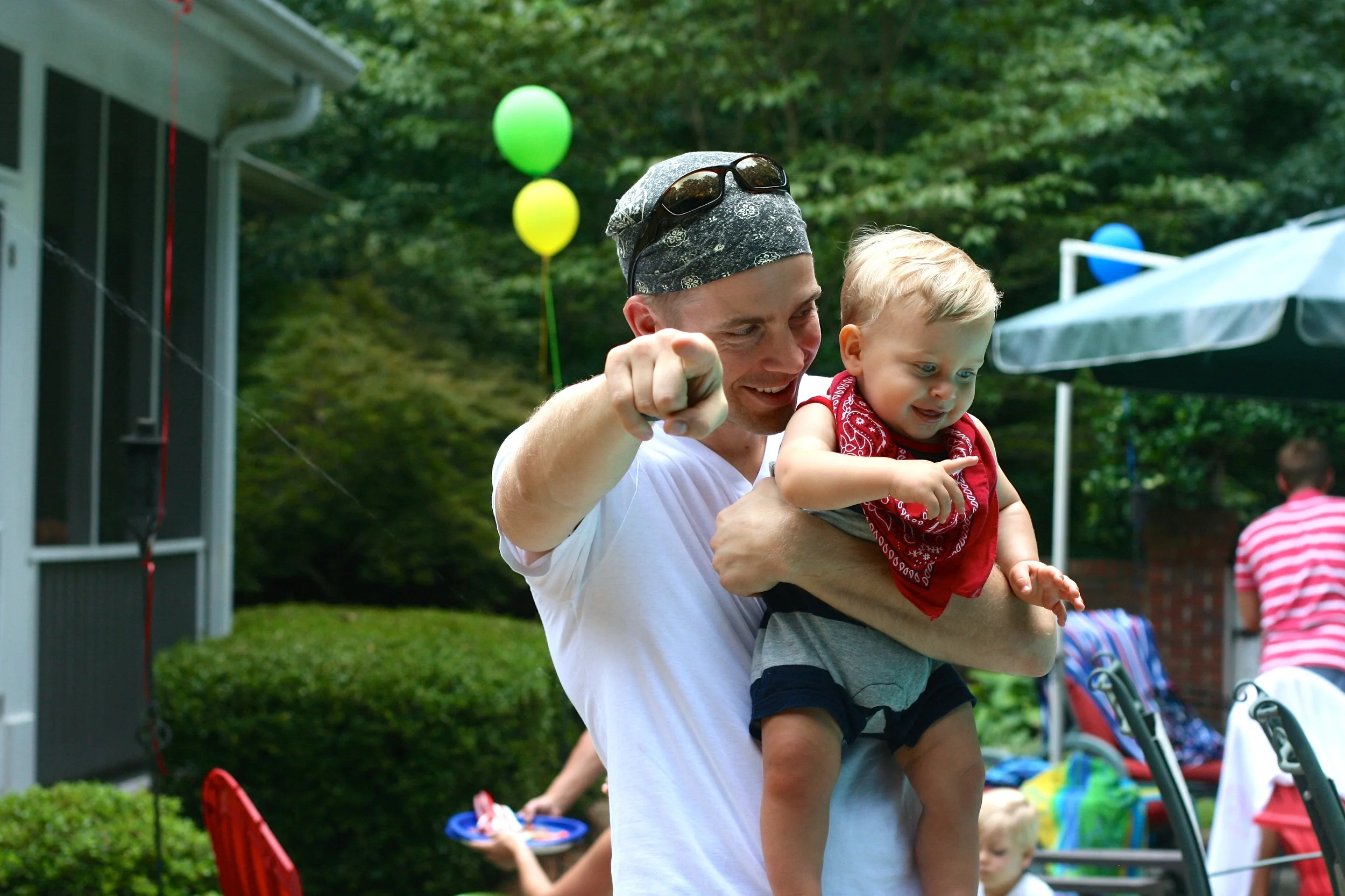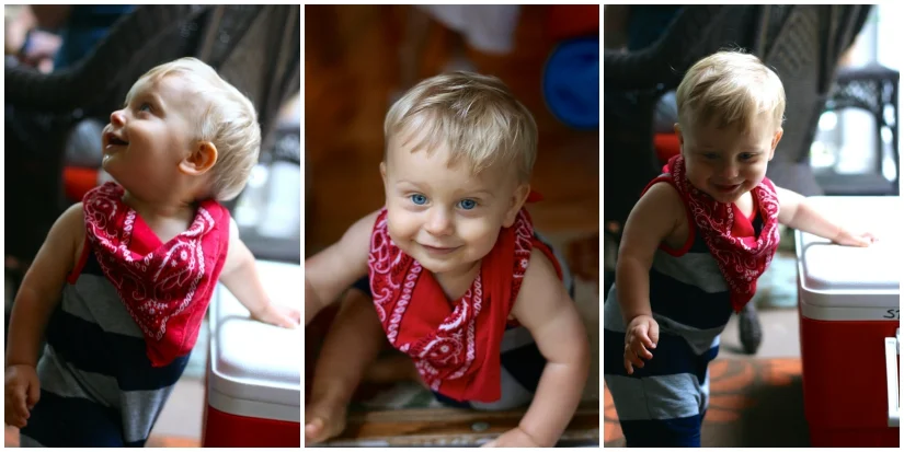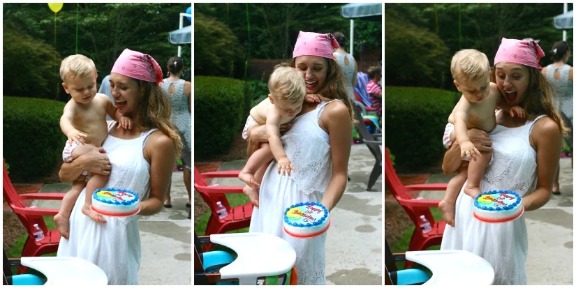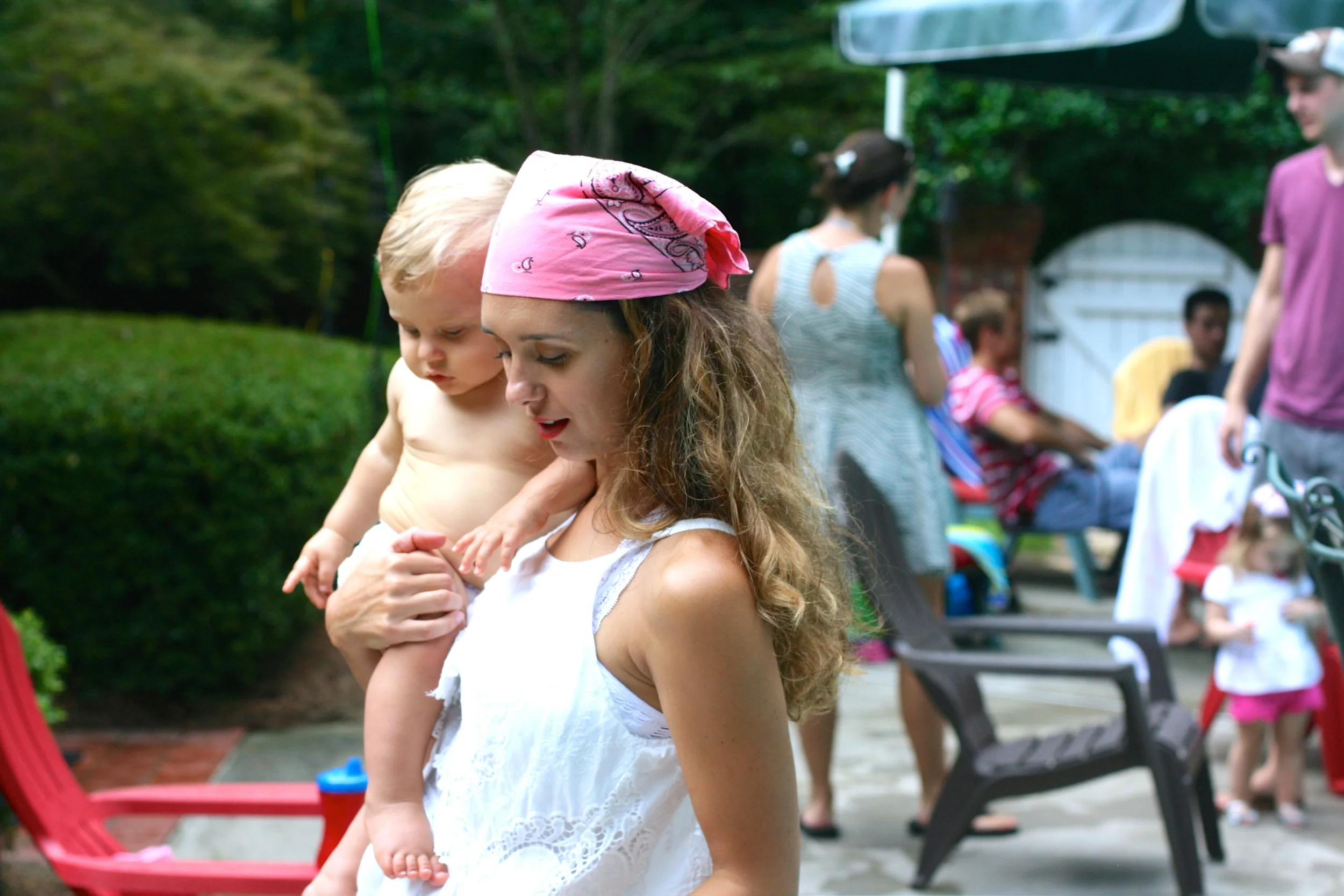 We threw him a pirate pool party with 45 of his closest friends. You can spot my immediate family members because we all wore pirate bandanas. You can spot me because my hair increasingly swelled with humidity every moment of the party. And you can spot my babe because he wouldn't let me put a bandana on his head; instead we had to settle for him wearing it around his neck like a bib. So he looks kind of like a cowboy while the rest of us experienced some rather excruciating head sweat, all in the name of committing to the theme. Honorable mentions go to my mom, who drew a mustache on with eyeliner.
