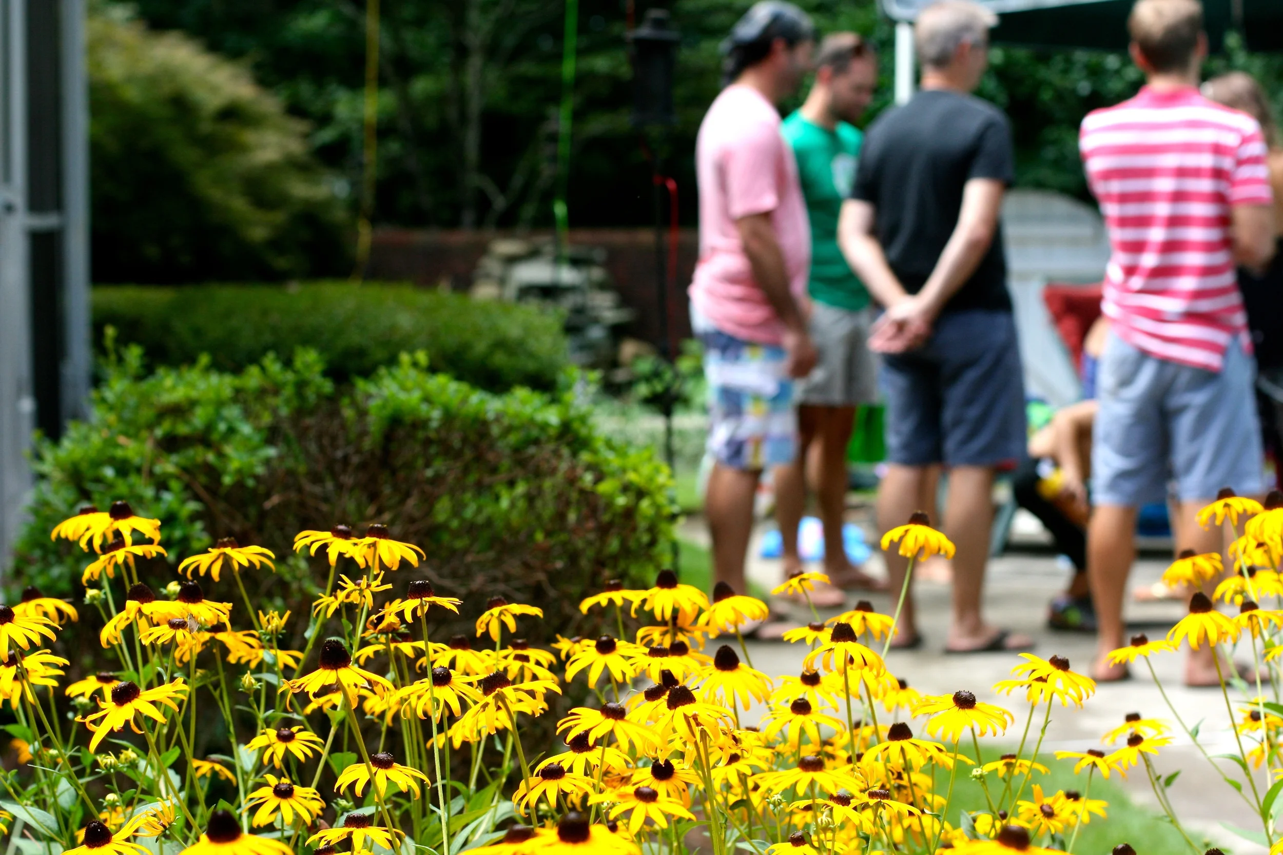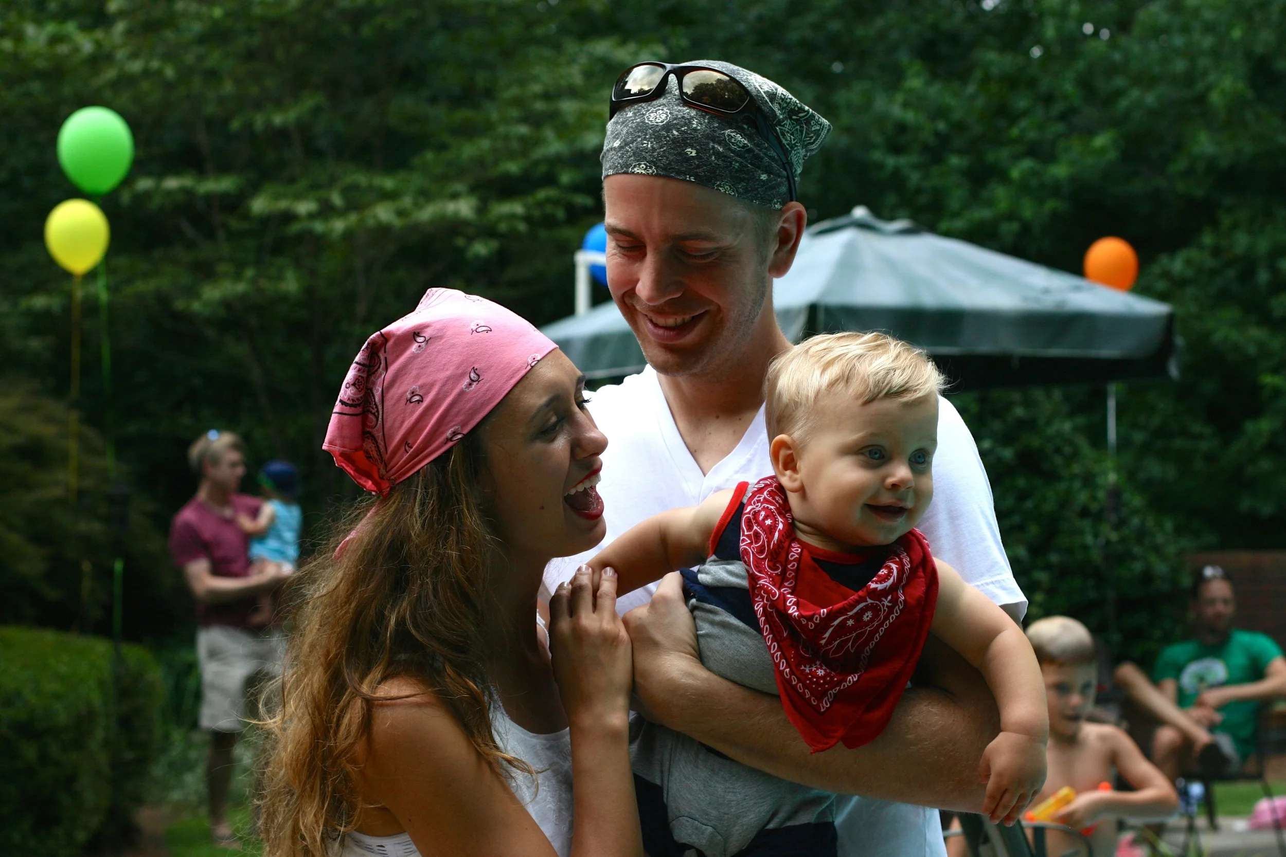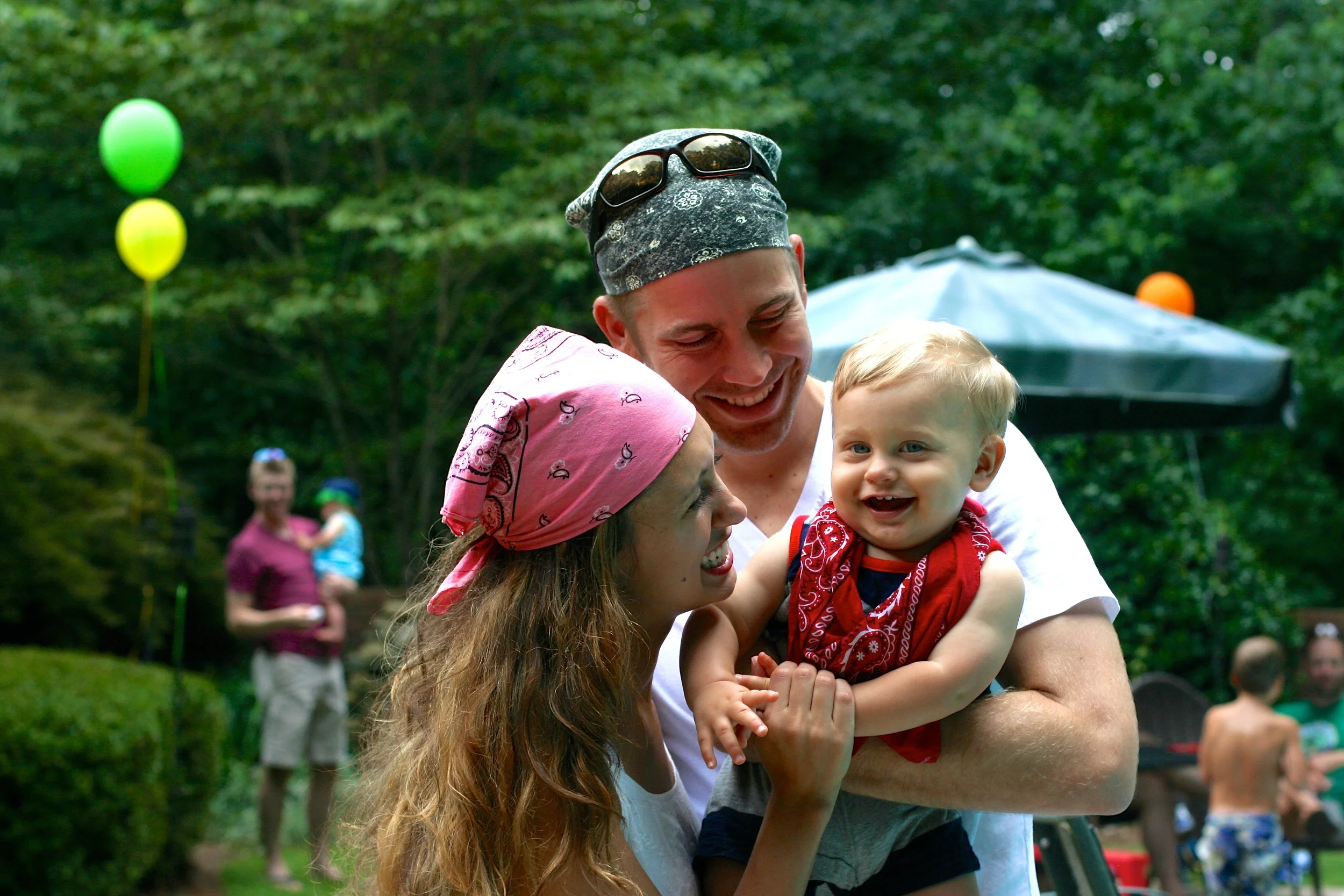 We threw him a pirate pool party with 45 of his closest friends. You can spot my immediate family members because we all wore pirate bandanas. You can spot me because my hair increasingly swelled with humidity every moment of the party. And you can spot my babe because he wouldn't let me put a bandana on his head; instead we had to settle for him wearing it around his neck like a bib. So he looks kind of like a cowboy while the rest of us experienced some rather excruciating head sweat, all in the name of committing to the theme. Honorable mentions go to my mom, who drew a mustache on with eyeliner.