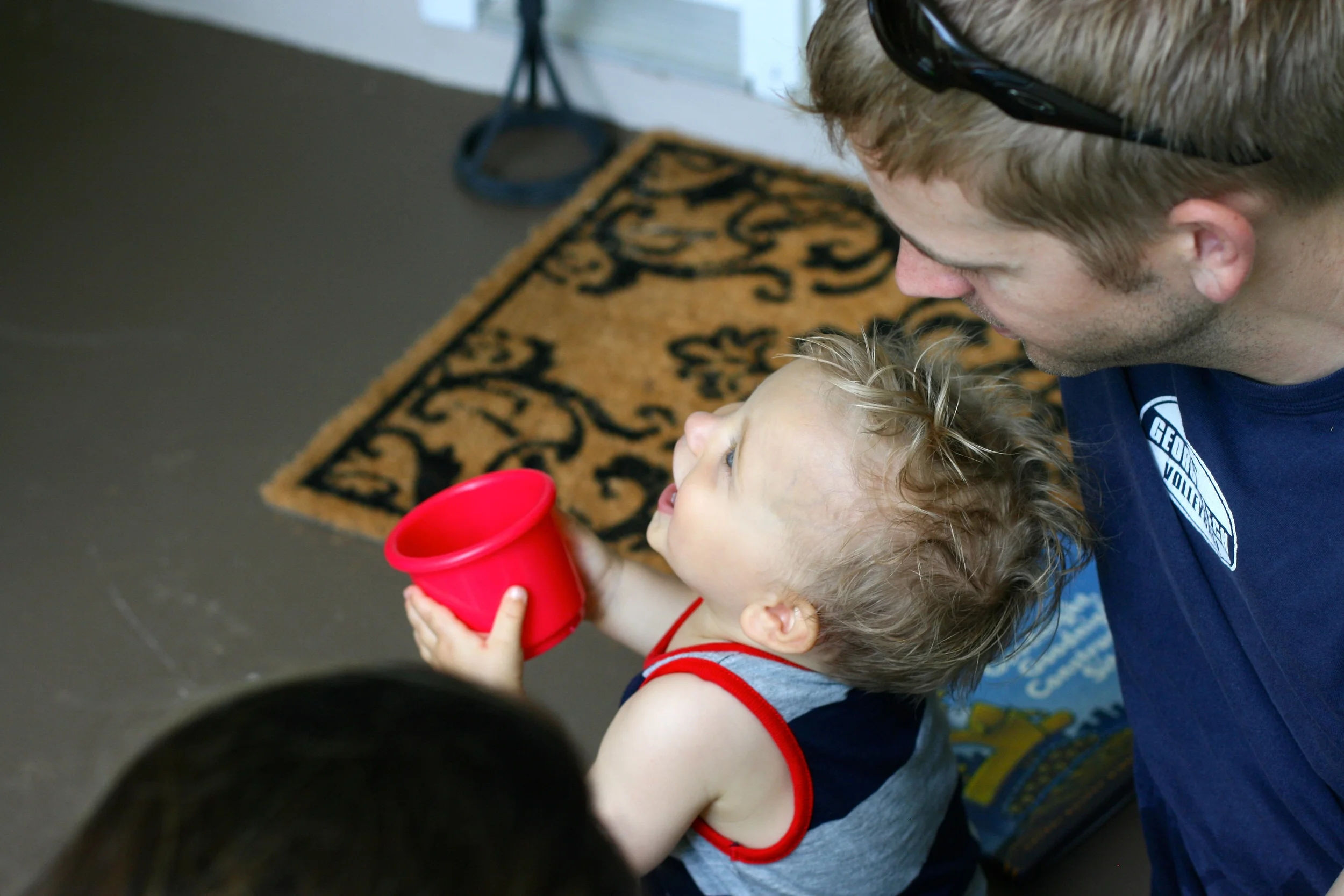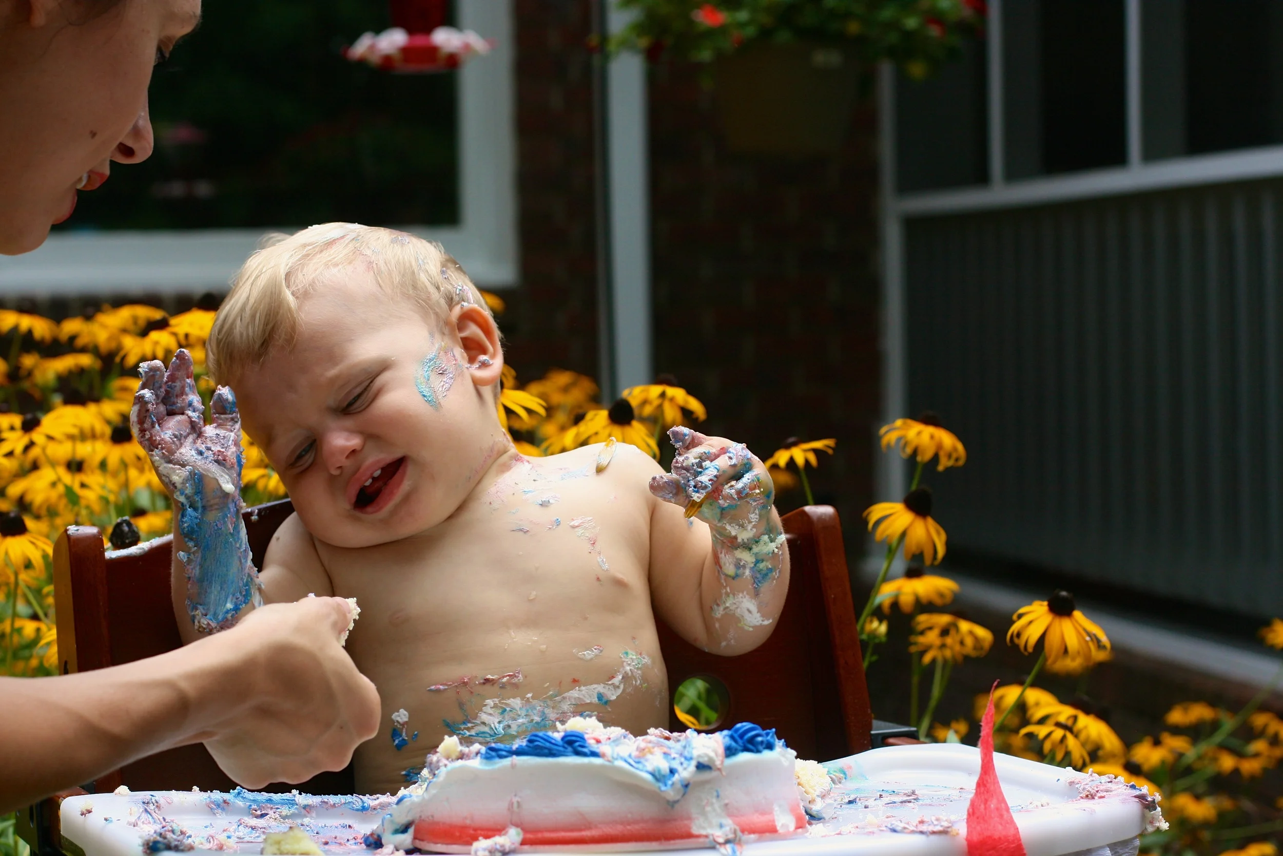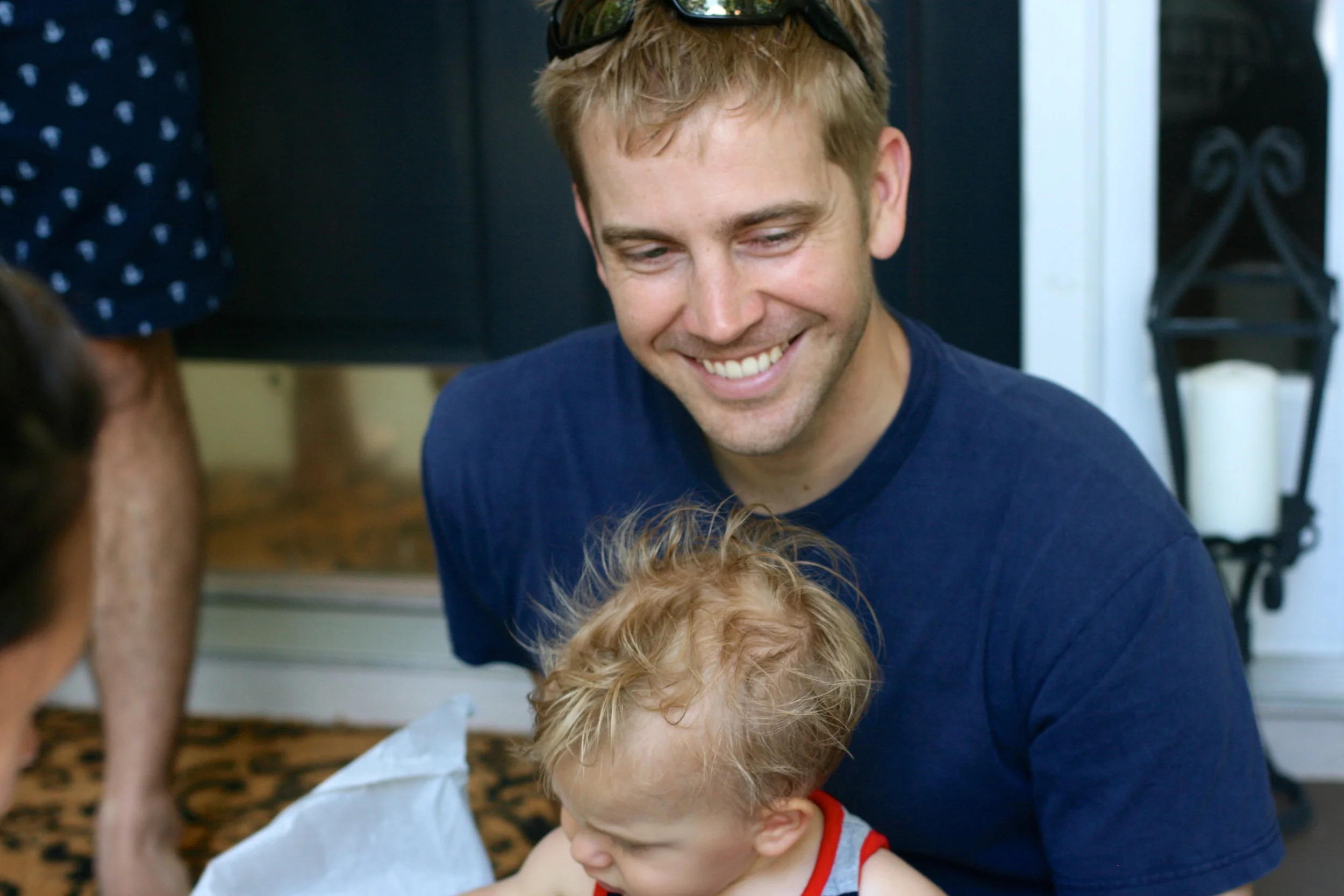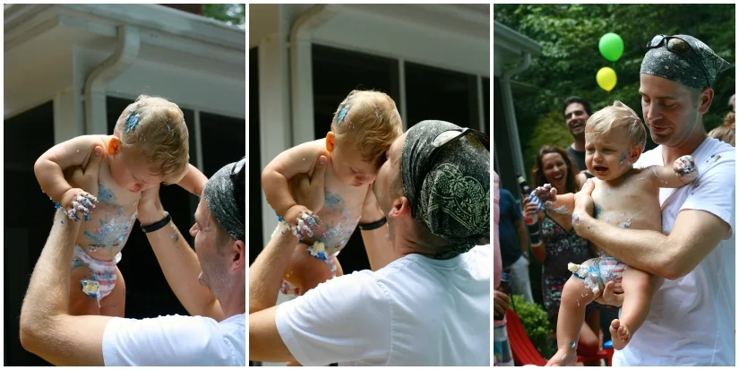 Sometimes a boy just needs his dad. Especially when everyone is staring at the icing on your face.