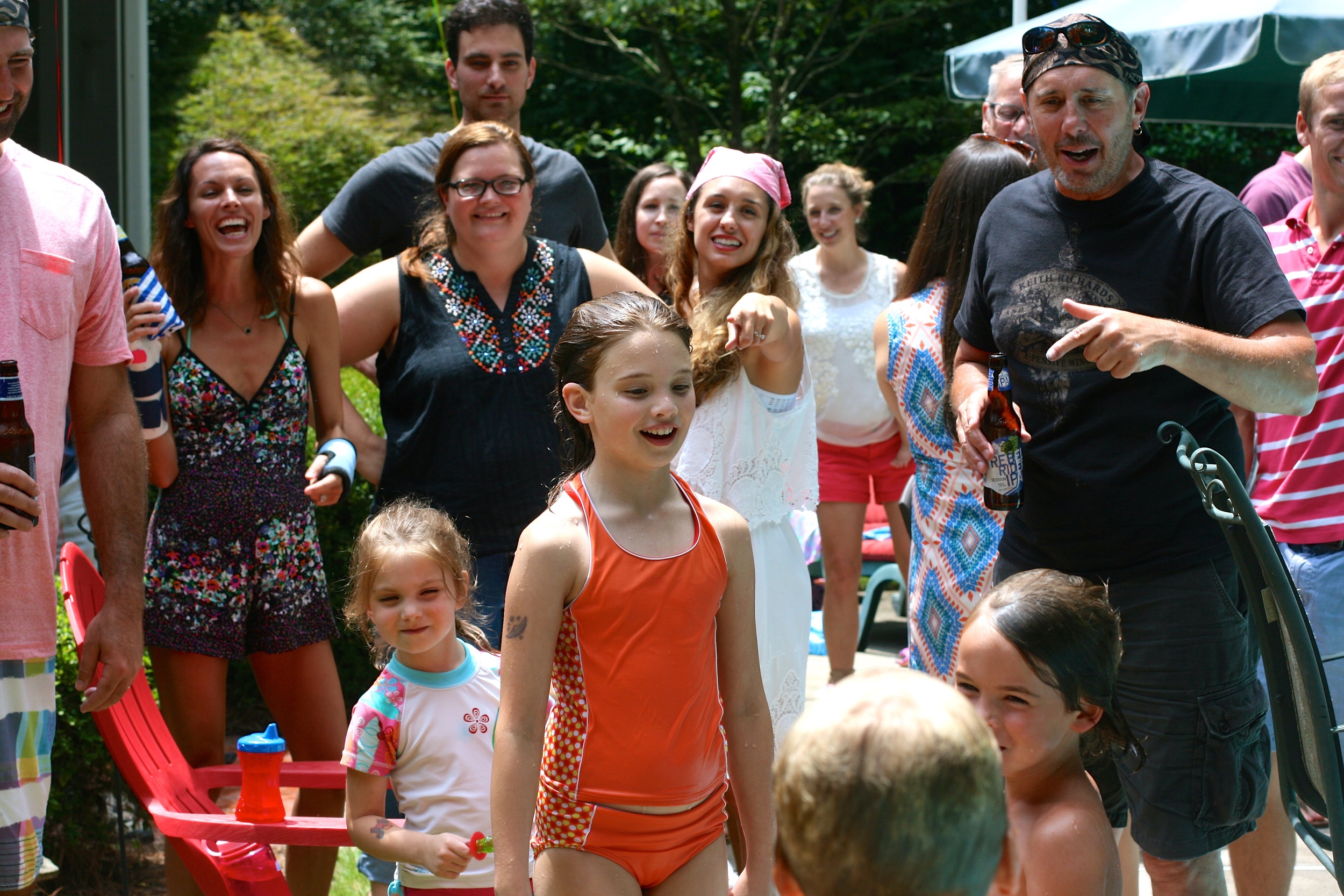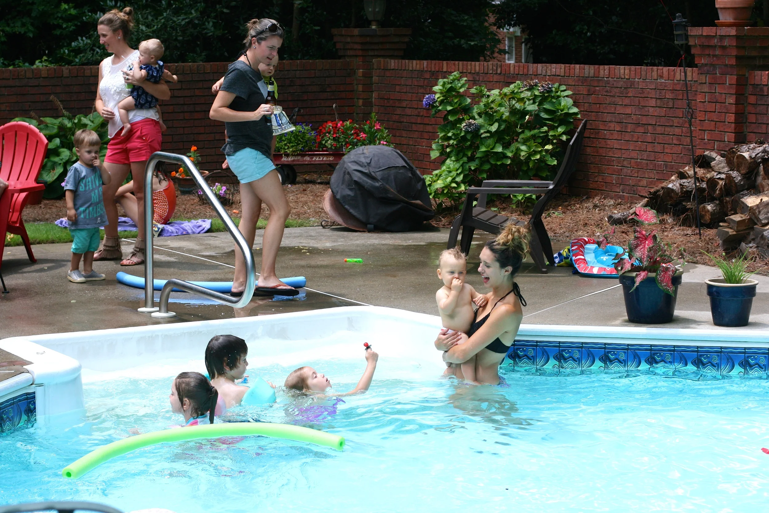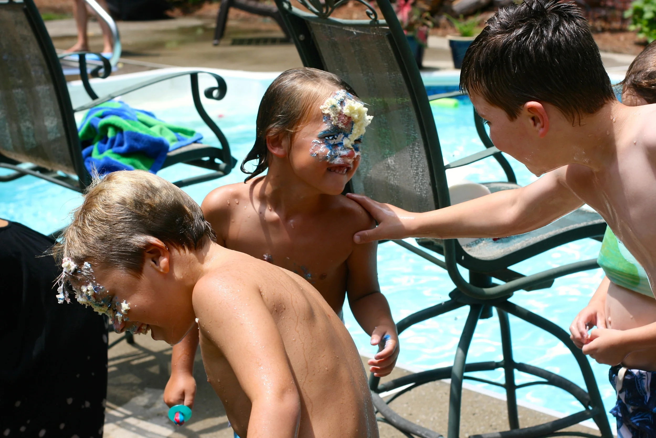 A dip in the pool, to wash away the crazed cake memory. And that stubborn red frosting...