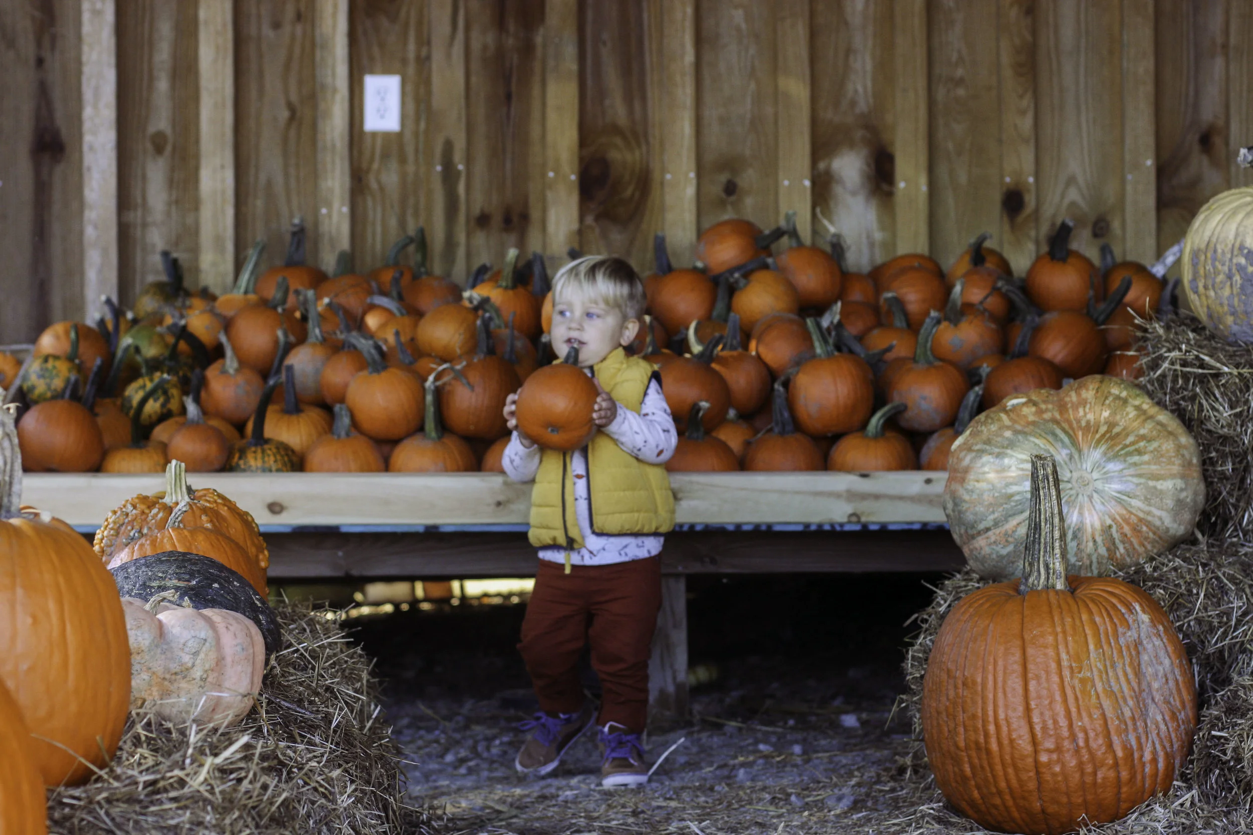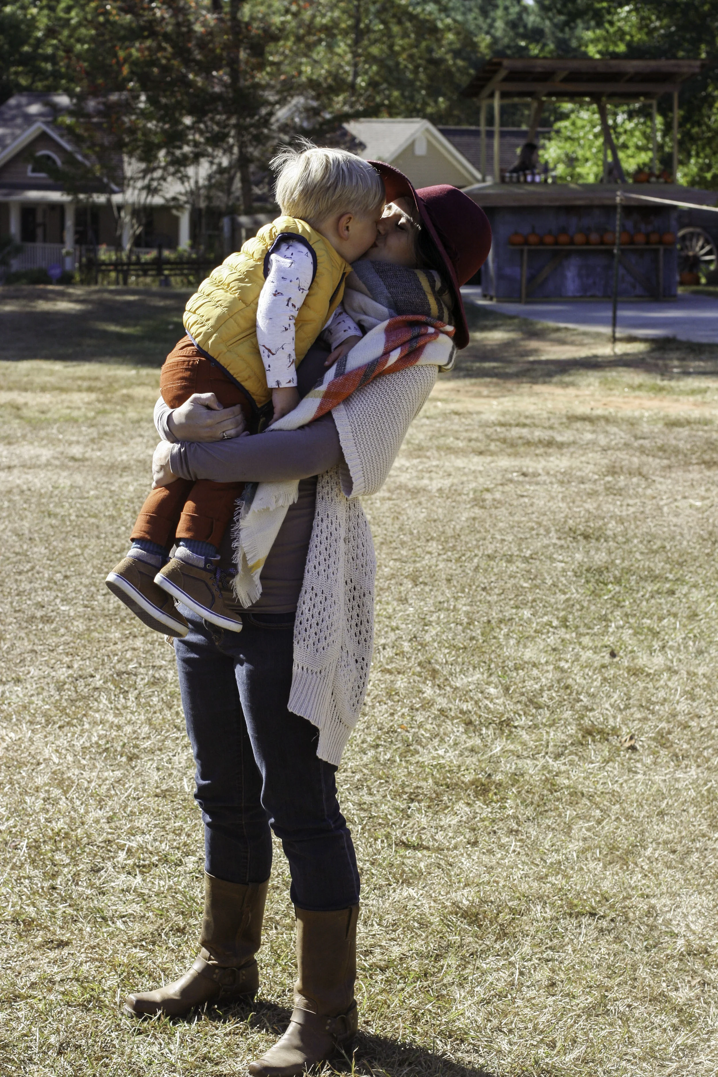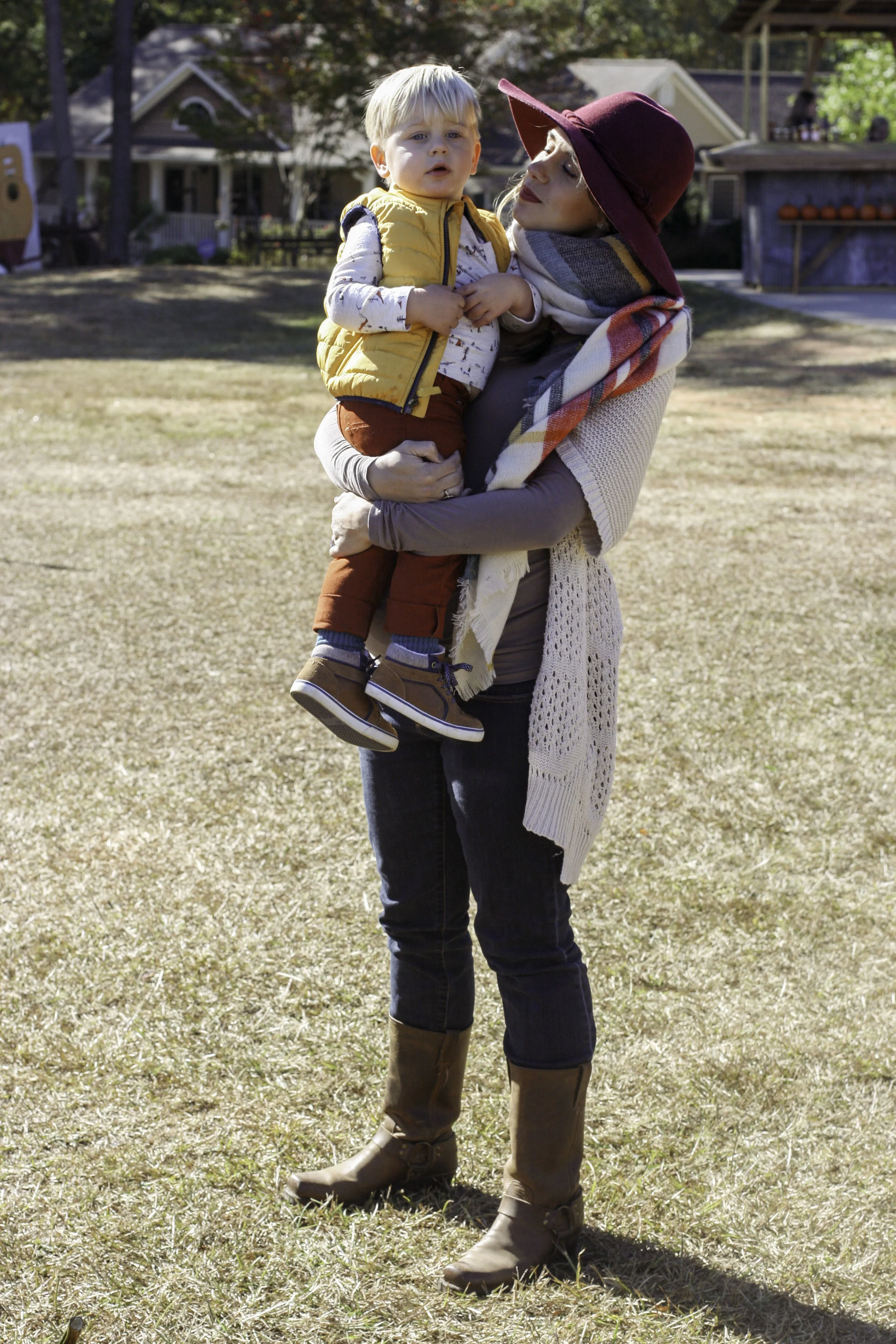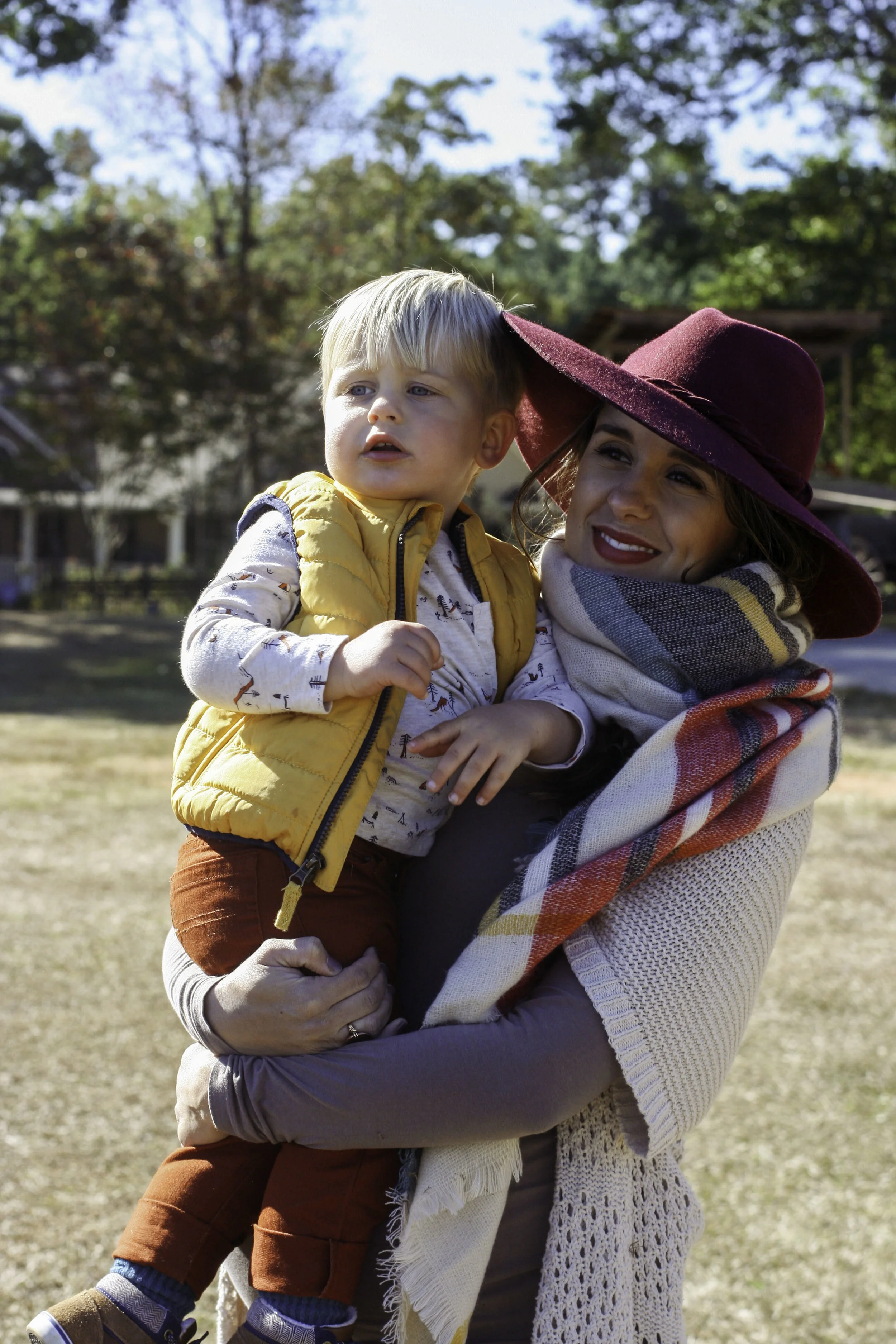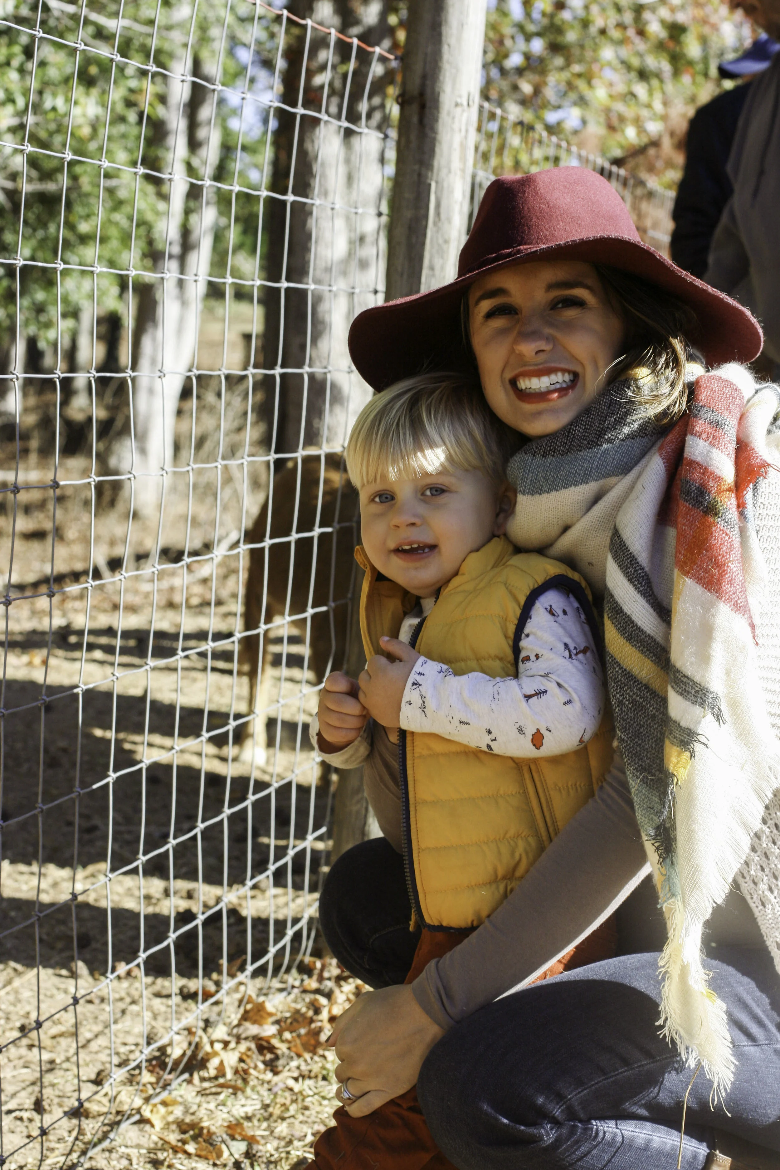 To be honest, just a little over a month ago, I didn't think our little family would make it to the pumpkin patch this year. I was having trouble at the end of our New York stint, and with all the contractions and pressure I was feeling, just walking was a real challenge. And I remember thinking, "I won't even be able to accompany my son to do something special like the pumpkin patch!" I know that sounds a little pathetic and morbid, but I've really been making it my mission to do special things with Everett and Stevie while we are still a family of 3. And the thought of not being able to do something like this just seemed so sad and ridiculous, because I am a healthy person! I shouldn't be having so much trouble just being pregnant! Anyway thankfully, I am feeling much more rested and, you know, able to walk (ha!), so making it to the pumpkin patch actually felt like a real victory for me. And for us. And for fall.