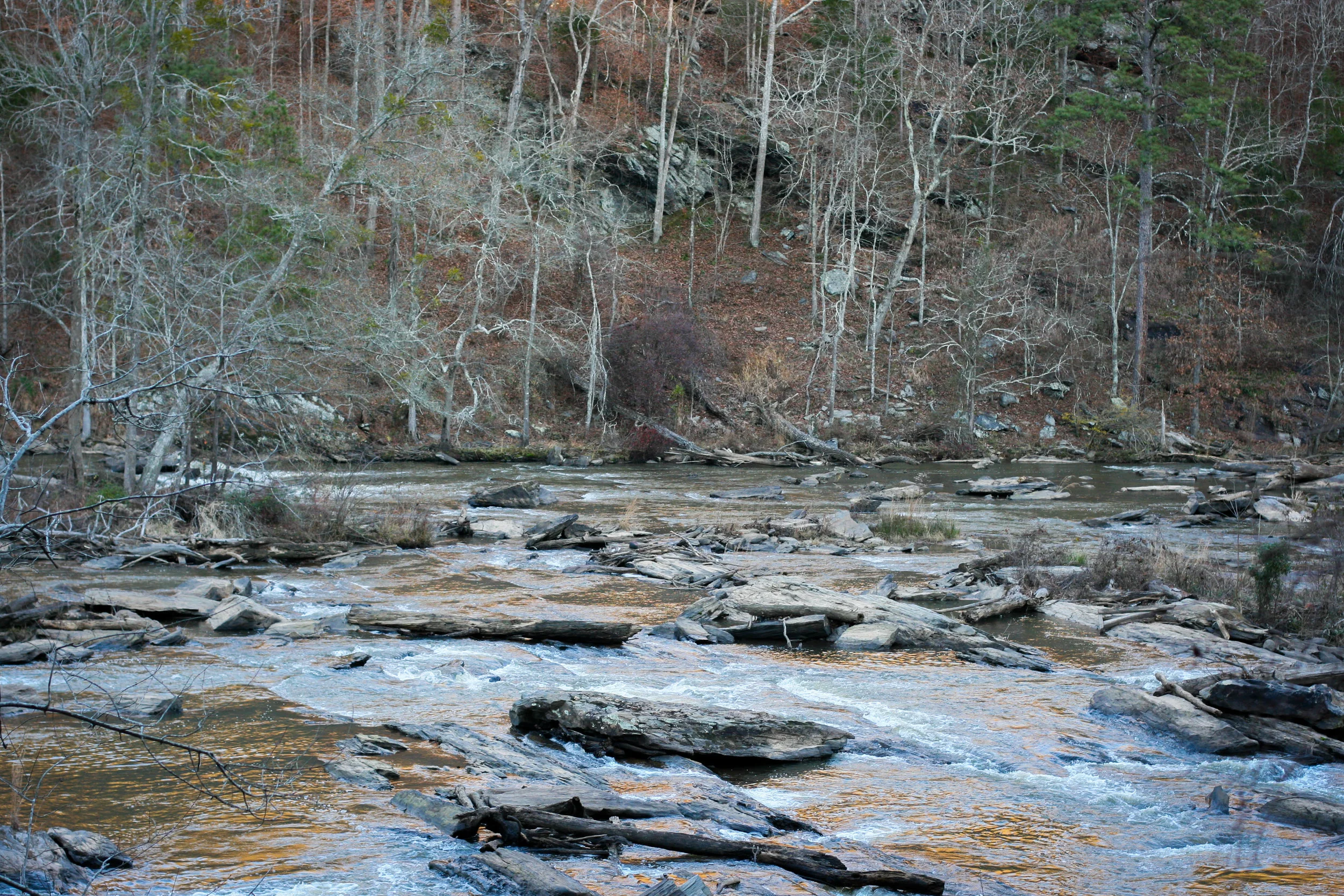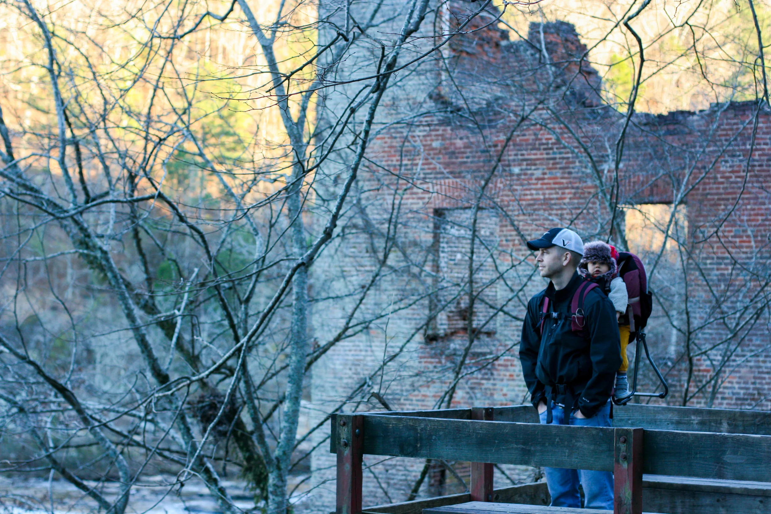 We spent the morning eating oatmeal, enjoying the views from our deck, and drinking our happy concoction of half coffee, half hot chocolate :) This is when Everett was his usual fun self, so we had a good (redeeming!) morning with him. Then we spent our time out in the park exploring. Aside from Everett's shenanigans, everything was absolutely beautiful. There was a ton of hiking, and a beautiful creek that leads down to a historic Civil War-era textile mill (which was used and featured during the filming of The Hunger Games Mockingjay!) The stream turns into some level 4 rapids, which is apparently awesome for whitewater rafting during other seasons of the year. We just traipsed around, until Everett's war cry was enough for both of us, so we packed it up and hit the road. And vowed not to take him camping until he's at least another year older.