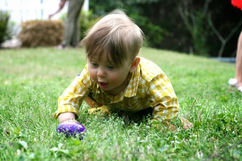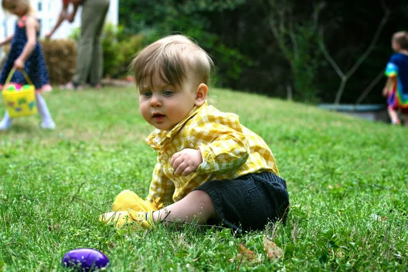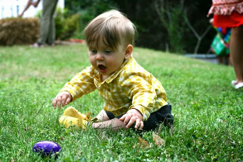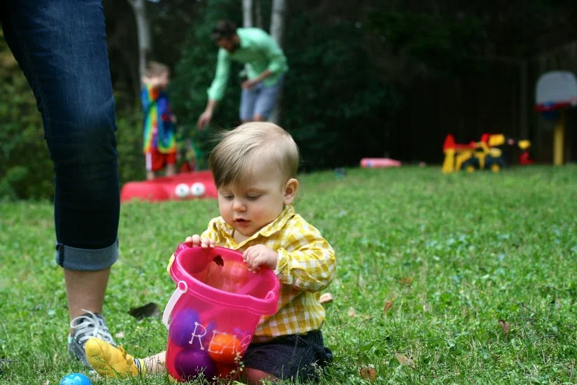 What a joy it was to celebrate Easter as a family of three. Observing the cornerstone event of my faith, the divine resurrection of Jesus Christ, and sharing that exciting truth with my son, well, that pretty much takes the cake. Stevie and I had so much fun putting together Everett's Easter basket, getting him dressed up for church, and playing with him throughout the day that we completely failed at taking a family photo. Who does that?? Well, us apparently. We just took endless pictures of our little man discovering Easter eggs and, you know, chewing on them. Oh well. I tend to over-photograph our life in general, so while we might not have a ton of family pics from his first Easter, we have plenty of them from the day before and the day after.