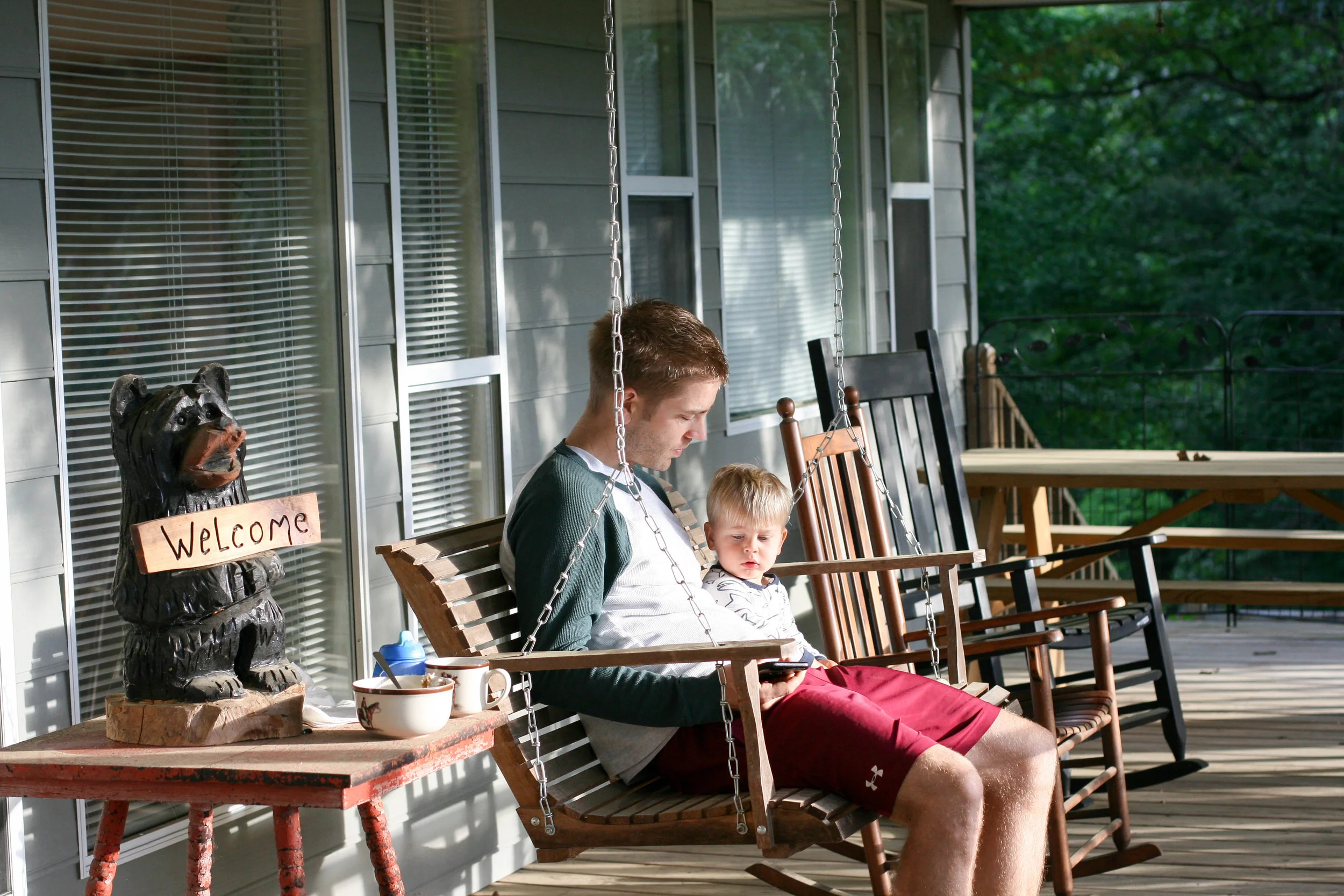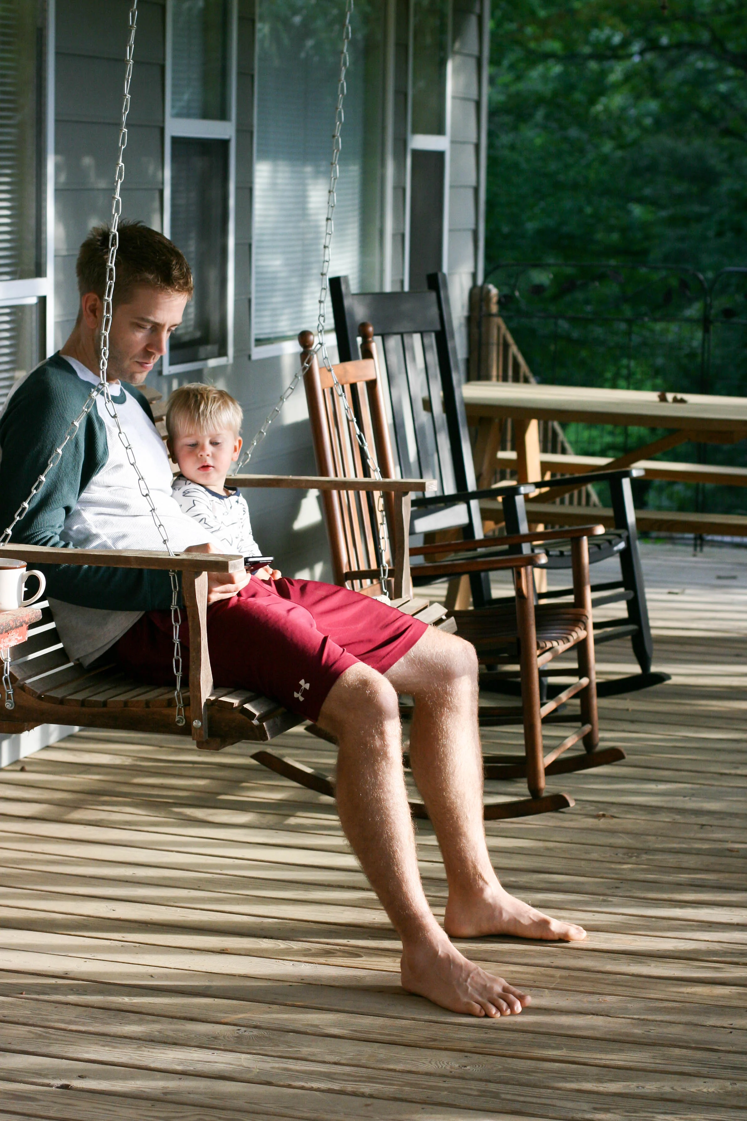 One of my favorite parts about the weekend were the lazy mornings we spent on the porch, overlooking the southern swells of the Appalachians. Stevie and I rocked in the chairs, sipped on English Breakfast tea and watched the sun bend around the skyline, which had a quick way of warming the day for us. Everett jumped, hopped, threw sticks and was the picture of boyhood, bored to death with our morning routine and begging to "go outside" (which we technically were) or go in "the white car" (which is his favorite). We finally gave in when the humidity arrived, and got on with the day. But those almost-silent moments one the porch are still sealed in my memory.