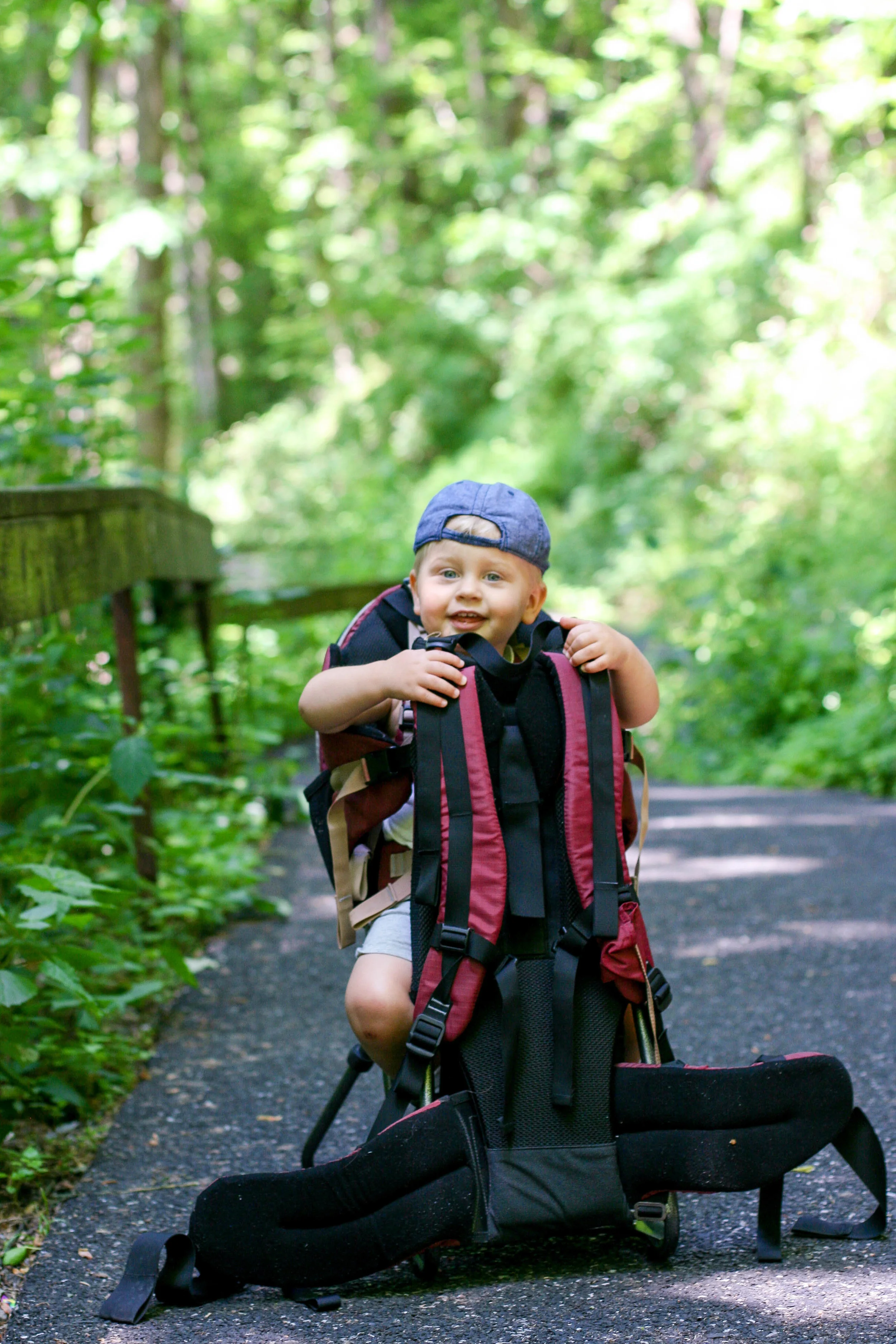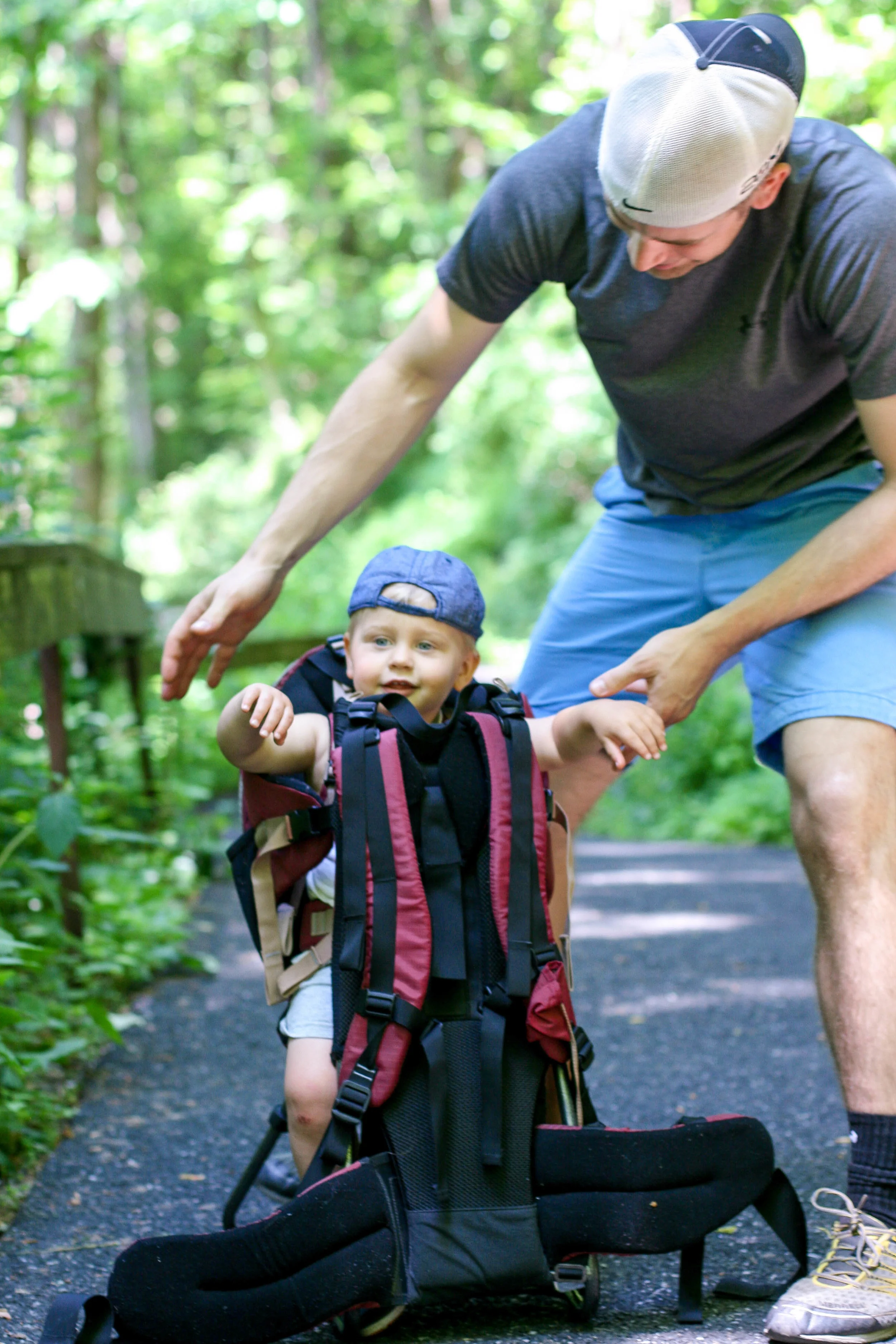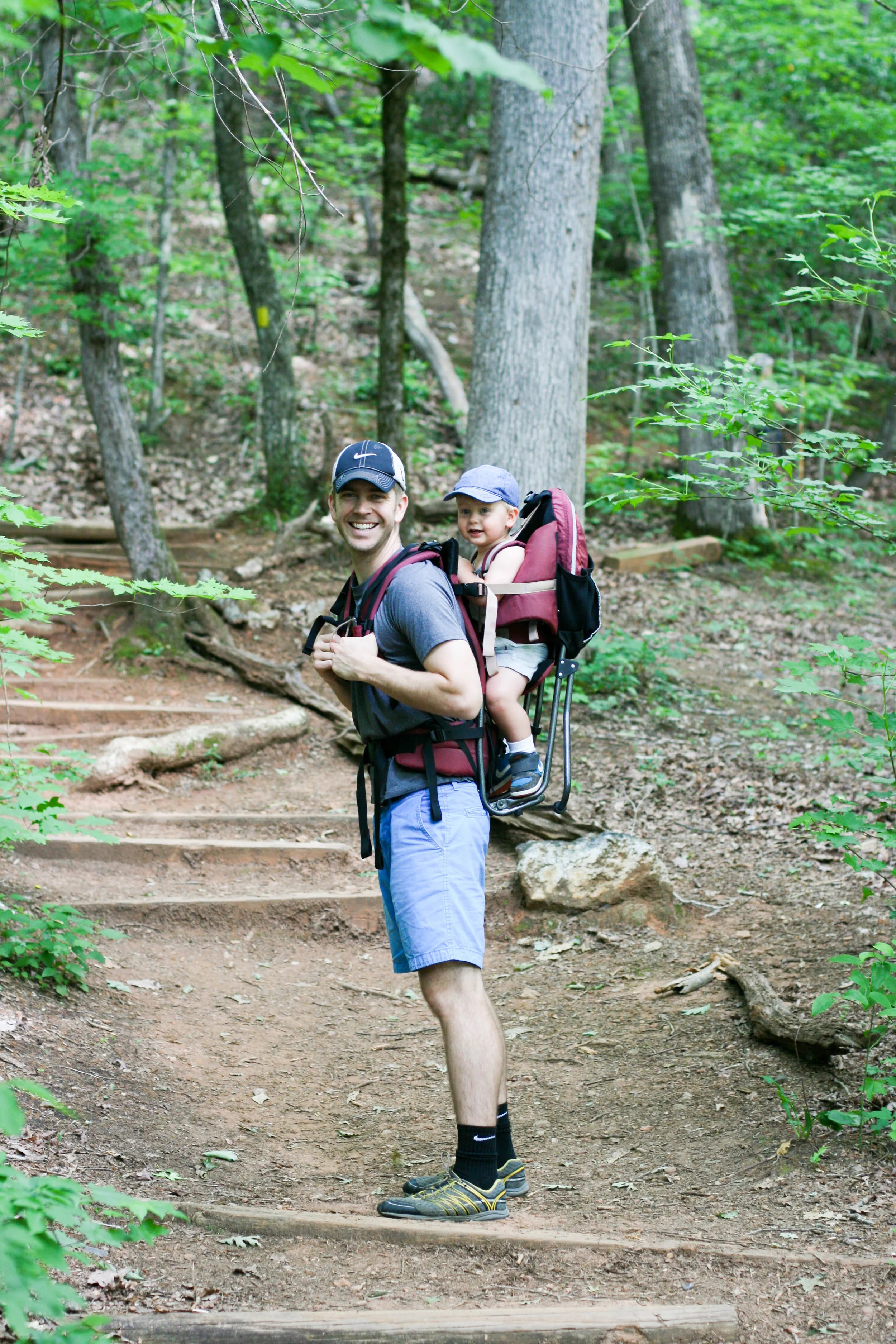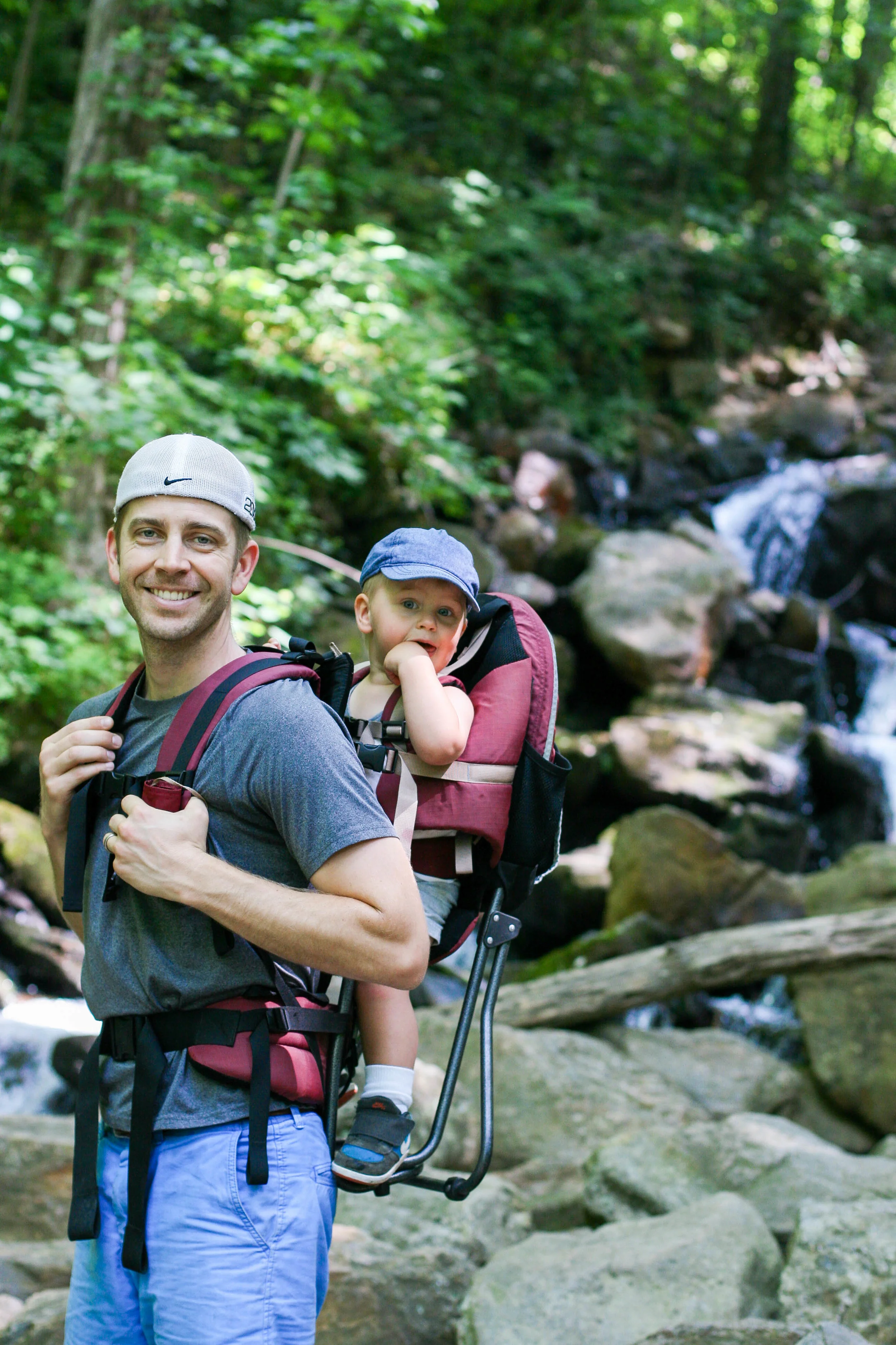 Stevie wore Everett in a hiking pack (ours is from REI and is no longer available but see similar here) and I wore a Camelbak (similar here) with all our snacks, water, and of course the camera, and we found ourselves seriously huffing and puffing to get to the top. The 2.1-mile trail begins like a normal hike and then turns into a series of steep, winding staircases that lead you to the top of the falls. I didn't do a great job of photographing the actual stairs (because those were the moments that the camera stayed put away, because well, I was wheezing for the life of me), but now I really wish I had a shot of those rickety stairs that looked like they were leading up to a forest of Heaven. It was quite an experience, climbing those 600-ish steps. Everett did a zillion times better than he did the last time we hiked (thank goodness!), so at least his kicking and screaming wasn't an issue this time around. But even though the trail was seriously challenging, my two boys were happily chattering, singing songs and making animal noises the whole time. Stevie asked Everett about the sounds that really obscure animals make, like giraffes and zebras. Who even knows? But Everett made up some really hideous screeches that he found thrillingly entertaining and proceeded to die laughing and then make more of the same sounds. These two are just peas in a pod these days.